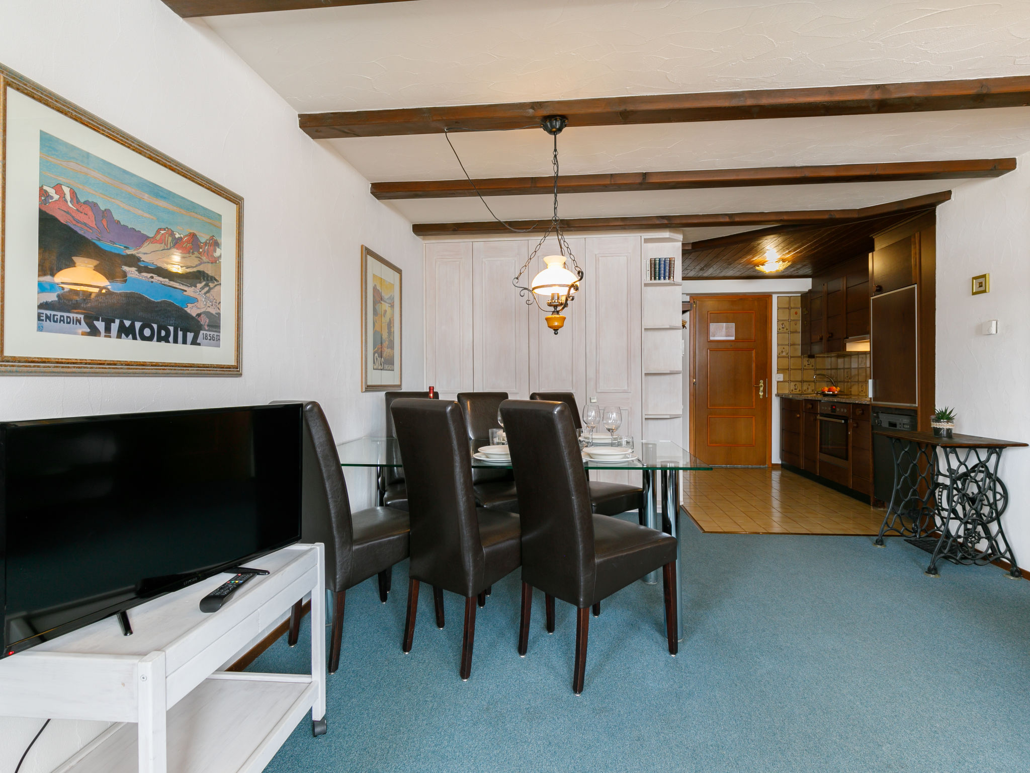 "Residenza Chesa Margun 78-3", 2-Zimmer-Wohnung 51 m2. Gemütlich eingerichtet: Wohn-/Esszimmer mit 1 Doppeldiwanbett und TV (Flachbildschirm), Radio. Ausgang zum Balkon. 1 Zimmer mit 2 Betten. Offene Küche (Backofen, Geschirrspüler, 4 Glaskeramikplatten, Mikrowelle). Bad/WC. 2 Balkone. Schöne Sicht auf die Berge, die Landschaft und die Ortschaft.