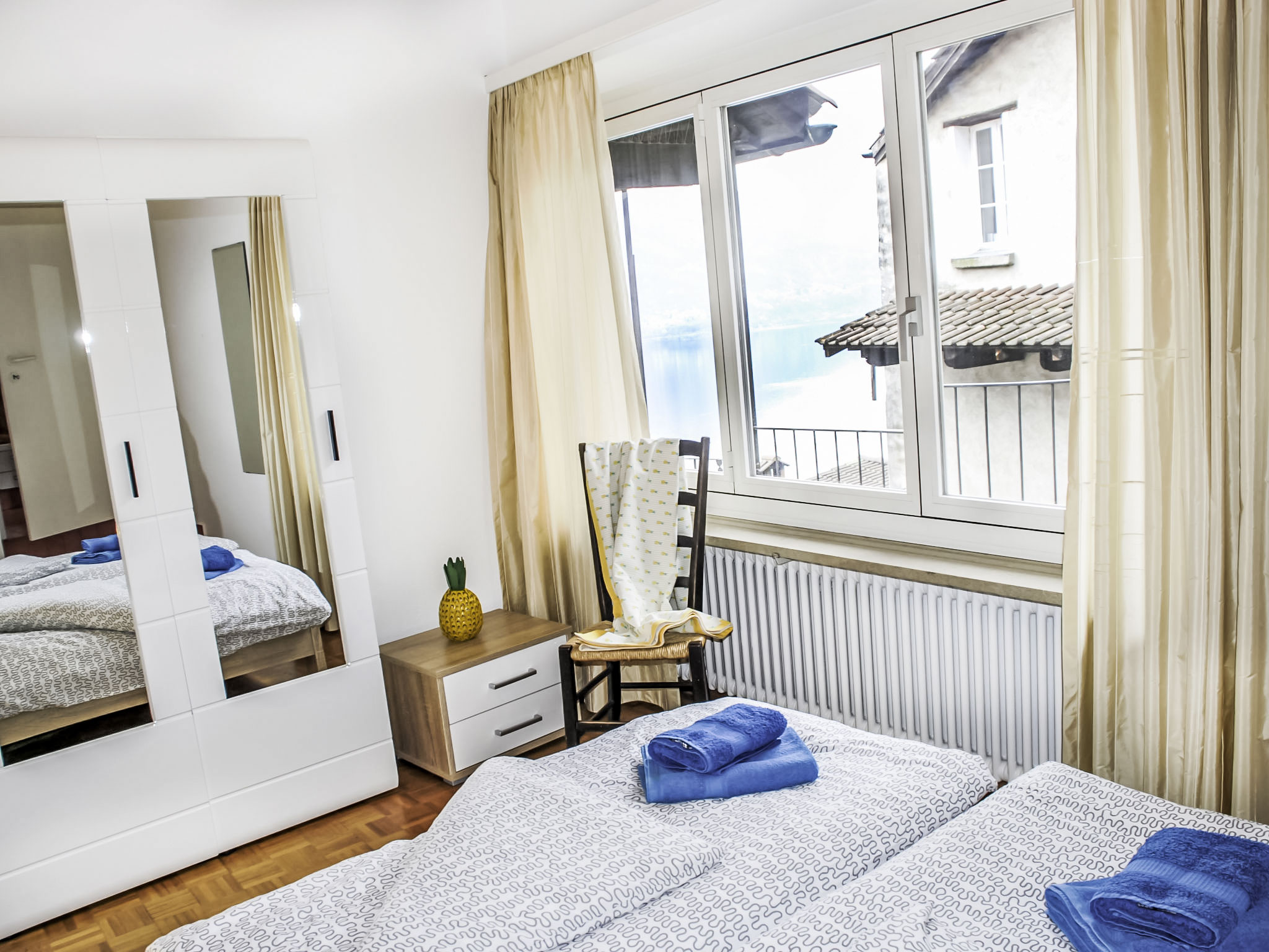 "Casa Eduardo Apt.2", 3-Zimmer-Wohnung 75 m2 im 1. Stock, Südostlage. Geräumig und hell, renoviert im Jahre 2018, komfortabel und gemütlich eingerichtet: offenes Wohn-/Esszimmer mit Esstisch, Kabel-TV, Internationale TV-Sender, Flachbildschirm, Radio und Stereoanlage. Ausgang zur Terrasse. 1 Doppelzimmer mit 1 Doppelbett (2 x 90 cm, Länge 200 cm). 1 Doppelzimmer mit 1 Doppelbett (2 x 80 cm, Länge 200 cm). Küche (Backofen, Geschirrspüler, 4 Glaskeramikplatten, elektrische Kaffeemaschine, Kapseln für die Kaffeemaschine (Nespresso) extra). Dusche/WC. E-Heizung. Terrasse 12 m2 teilweise überdacht, Südlage. Terrassenmöbel. Sehr schöne Panoramasicht auf den See, die Berge und die Landschaft. Zur Verfügung: Waschmaschine, Kinderhochstuhl, Babybett bis 3 Jahre (extra), Haartrockner. Internet (WLAN, gratis). Bitte beachten: geeignet für Familien. Nichtraucher-Unterkunft. Feuerlöscher, kein Fahrstuhl. NL-00003745