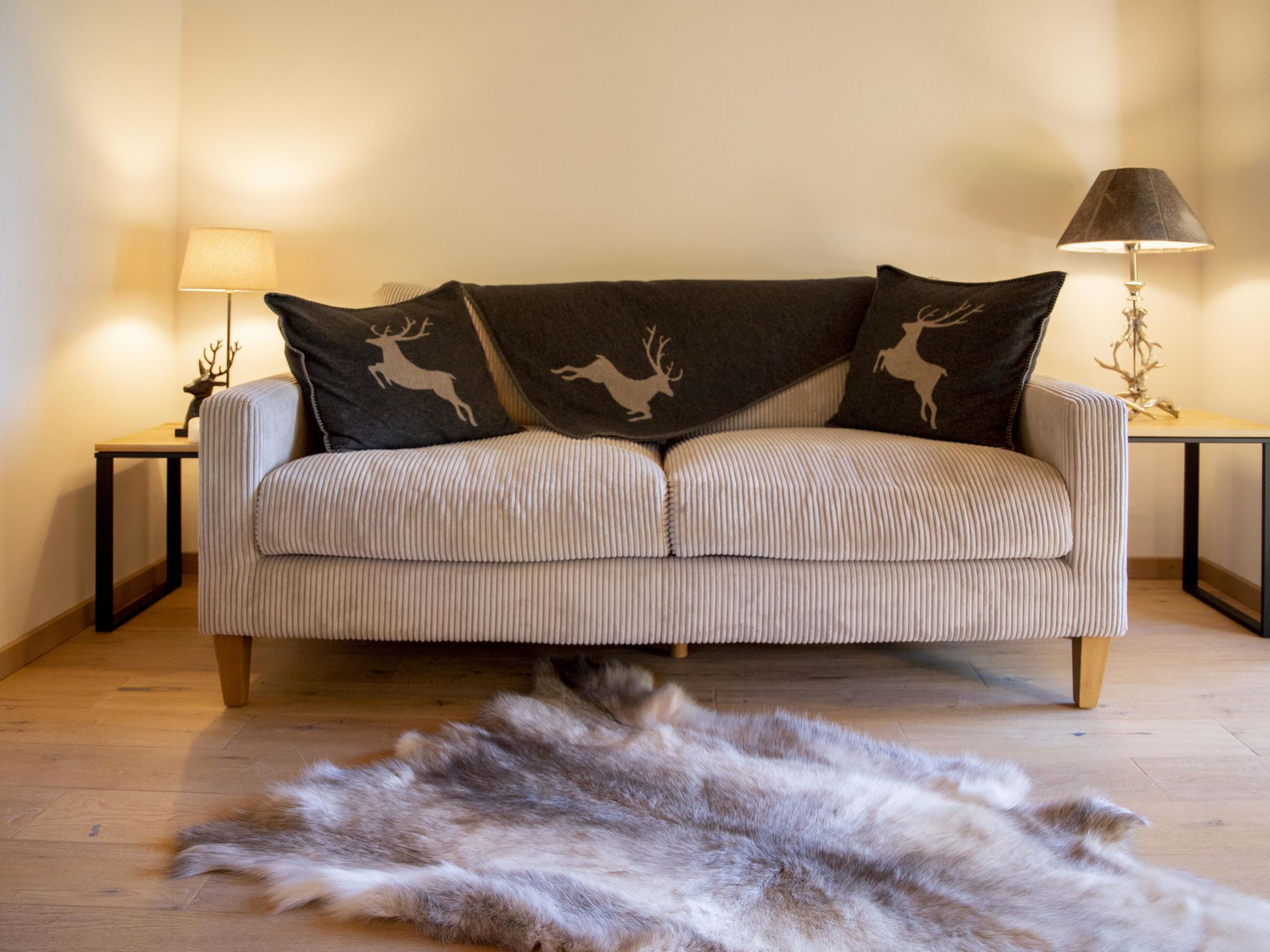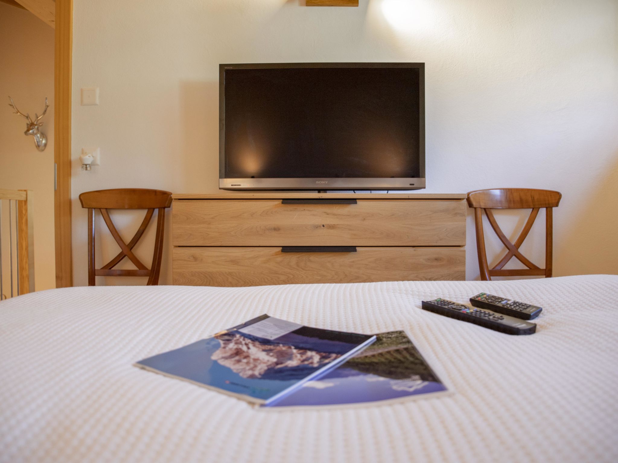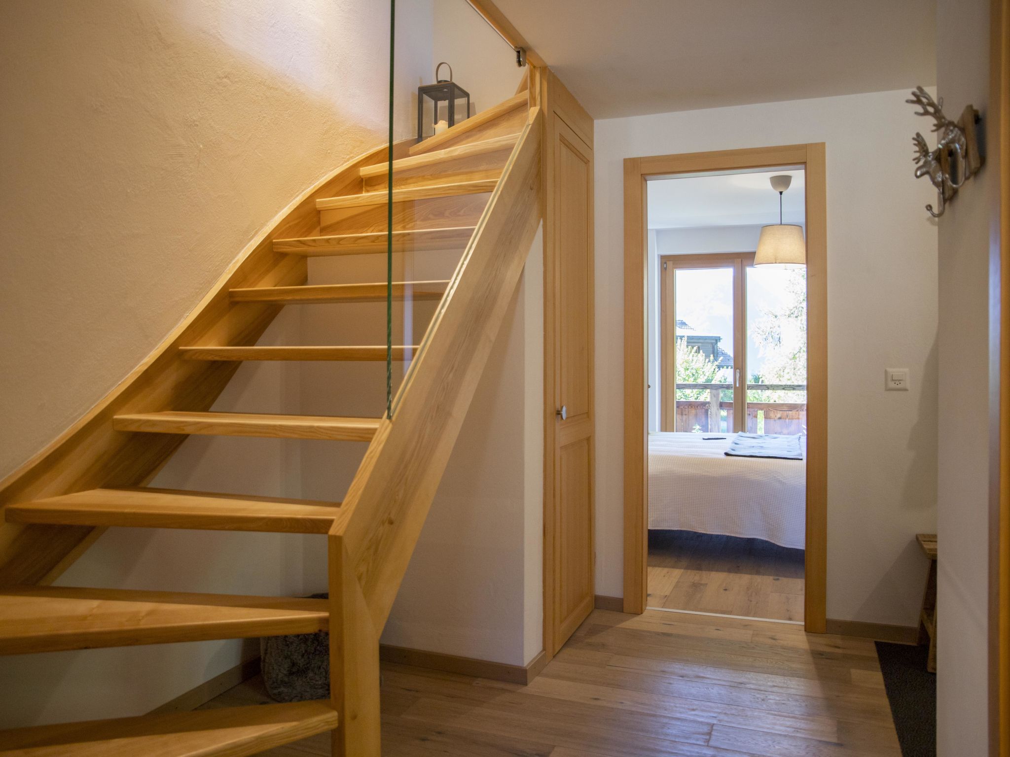 "Chalet Sans Soucis", 4-Zimmer-Wohnung 74 m2 auf 2 Stockwerken im 1. Stock, Südlage. Renoviert im Jahre 2020, komfortabel und geschmackvoll eingerichtet: 1 Zimmer mit 1 franz. Bett (1 x 160 cm). Ausgang zum Balkon, Richtung Süden. 1 Zimmer mit 2 Betten (90 cm). Bad/WC, Whirlbadewanne. Obergeschoss: kleines Wohn-/Esszimmer mit Esstisch. Ausgang zum Balkon, Richtung Süden. 1 Zimmer, ohne Schrank mit 1 Doppelbett (2 x 90 cm), Dusche/WC. Offene Küche (Backofen, Geschirrspüler, 4 Glaskeramikplatten, Tiefkühler, elektrische Kaffeemaschine, Kapseln für die Kaffeemaschine (Nespresso) extra). 2 kleine Balkone 10 m2, Südlage. Balkonmöbel, Gartengrill. Eingeschränkte Sicht auf die Berge. Zur Verfügung: Waschmaschine, Wäschetrockner. Internet (Wireless LAN, gratis). Parkplatz Nr. 10 et 11 (eingezäunt, 2 Autos). Bitte beachten: Nichtraucher-Unterkunft. Kein Fahrstuhl.