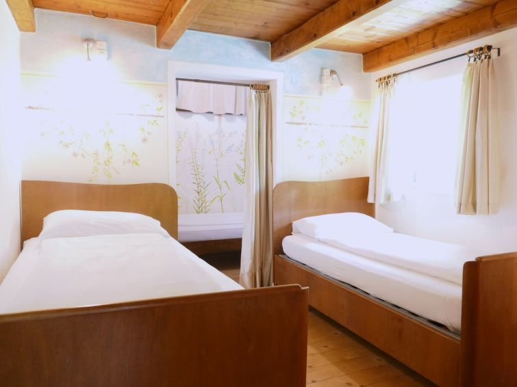 "Casa Felice", 5-Zimmer-Haus 70 m2 auf 2 Stockwerken, Südlage. Geräumig, renoviert, komfortabel und gemütlich eingerichtet: offenes Wohn-/Esszimmer mit offenem Kamin, Esstisch, Sat-TV, Radio und Holzofen. Ausgang zur Terrasse. Offene Küche (4 Kochplatten, Backofen, Geschirrspüler, Toaster, Wasserkocher, Mikrowelle, elektrische Kaffeemaschine, Kapseln für die Kaffeemaschine (Chicco d'oro) extra, Racletteofen, Fondue Set (Käse)) mit Bar. Bad, Dusche/WC, sep. WC. E-Heizung, Holzheizung. Obergeschoss: 1 Zimmer mit 1 Doppelbett (1 x 160 cm, Länge 200 cm). Durchgangszimmer mit 2 Betten (90 cm, Länge 200 cm). 1 offenes Zimmer mit 1 Bett (90 cm, Länge 200 cm). Holzdielenboden, Parkettboden. Garten. Terrassenmöbel, Gartengrill, Liegestühle (2), Sitzplatz. Schöne Sicht auf die Berge und die Landschaft. Zur Verfügung: Waschmaschine, Kinderhochstuhl, Babybett bis 2 Jahre (extra), Haartrockner. Internet (WLAN, gratis). Bitte beachten: Nichtraucher-Haus. Maximal 3 Haustiere/Hunde erlaubt. Ihre Haustiere sind herzlich willkommen! NL-00003911