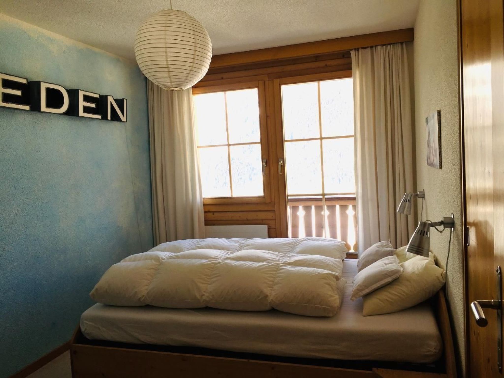 Die Innenausstattung der Wohnung ist geschmackvoll und funktional, gestaltet für Ihr Wohlbefinden. Sie umfasst zwei ruhige, verdunkelbare Schlafzimmer für eine ungestörte Nachtruhe. Ein Doppelbett (140 x 200), ein Etagenbett sowie ein weiteres Bett (90 x 200), das bei Bedarf in ein Doppelbett umgewandelt werden kann, stehen zur Verfügung. Das Badezimmer ist mit einer Badewanne ausgestattet, die auch eine Duschvorrichtung hat. Die offene Wohn-/Essküche mit einem gemütlichen Cheminée rundet das Raumangebot ab. Die Küche bietet ein Cerankochfeld, einen Backofen, einen Wasserkocher und eine Kaffee- oder Espressomaschine, allerdings keine Geschirrspülmaschine.