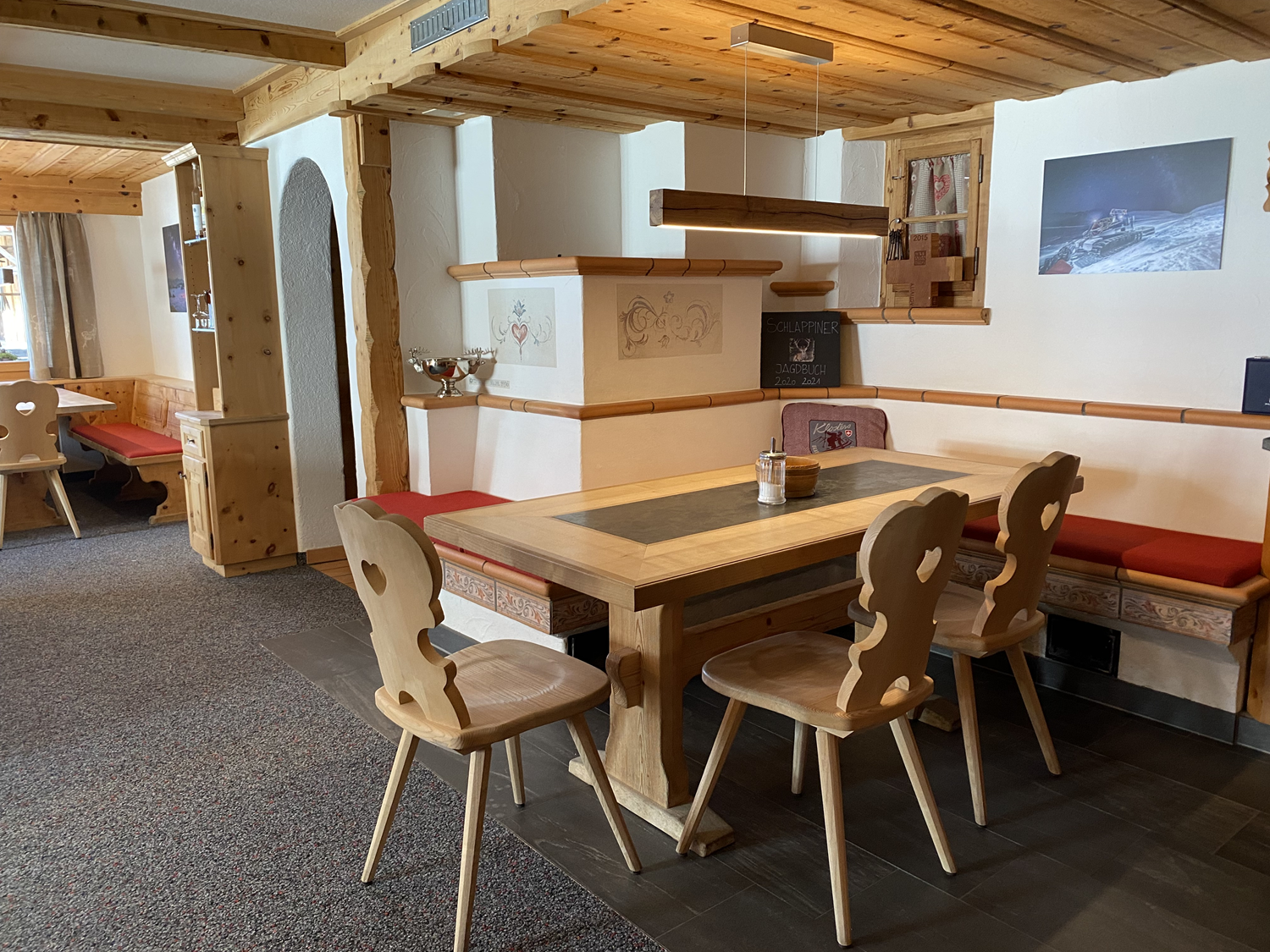 Unser gemütliches Restaurant bietet ca. 45 Sitzplätze innen und einen Garten mit Sicht zum Schlappinsee. Als Übernachtungsmöglichkeit bieten wir unseren Gästen eine Dachstock Suite mit ca. 50m2 und eigenem Eingang für 2 bis 4 Personen, das Seeli Doppelzimmer mit Dusche und Toilette im Zimmer, sowie 5 weitere einfache Doppelzimmer mit Duschen und Toiletten auf der Etage.