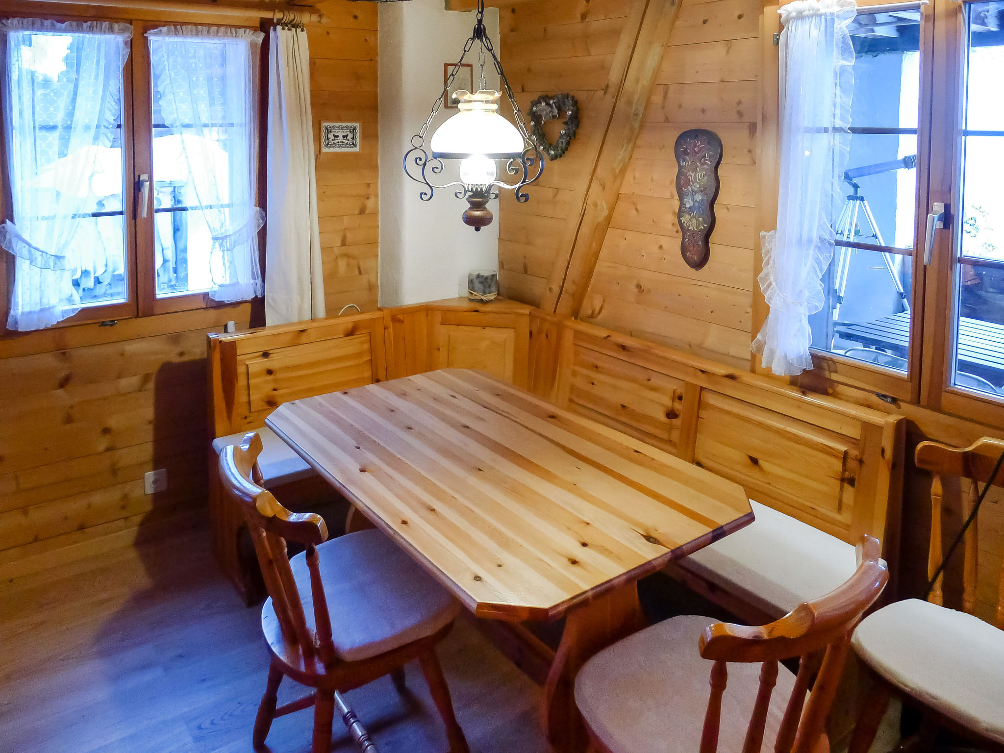 4-Zimmer-Wohnung 75 m2 im 2. Stock. Rustikal und gemütlich eingerichtet: Wohn-/Esszimmer mit Schwedenofen und Radio. Ausgang zum Balkon. Durchgangszimmer mit 2 Diwanbetten, Digital-TV, Flachbildschirm und DVD. 1 Zimmer mit 2 Betten und Waschbecken. Ausgang zum Gartensitzplatz. 1 kleines Zimmer mit 1 x 2 Etagenbetten. Offene Küche (3 Kochplatten, Backofen, Geschirrspüler, Toaster, Mikrowelle, Racletteofen, Fondue Set (Käse)). Bad/WC. E-Heizung, Holzheizung, Boiler (150 Liter). Holzdielenboden. Balkon 13 m2, Gartensitzplatz 15 m2. Balkonmöbel. Schöne Sicht auf die Berge, die Landschaft und die Ortschaft. Zur Verfügung: Internet (Wireless LAN, gratis). Parkplatz (überdacht). Bitte beachten: Nichtraucher-Unterkunft.
