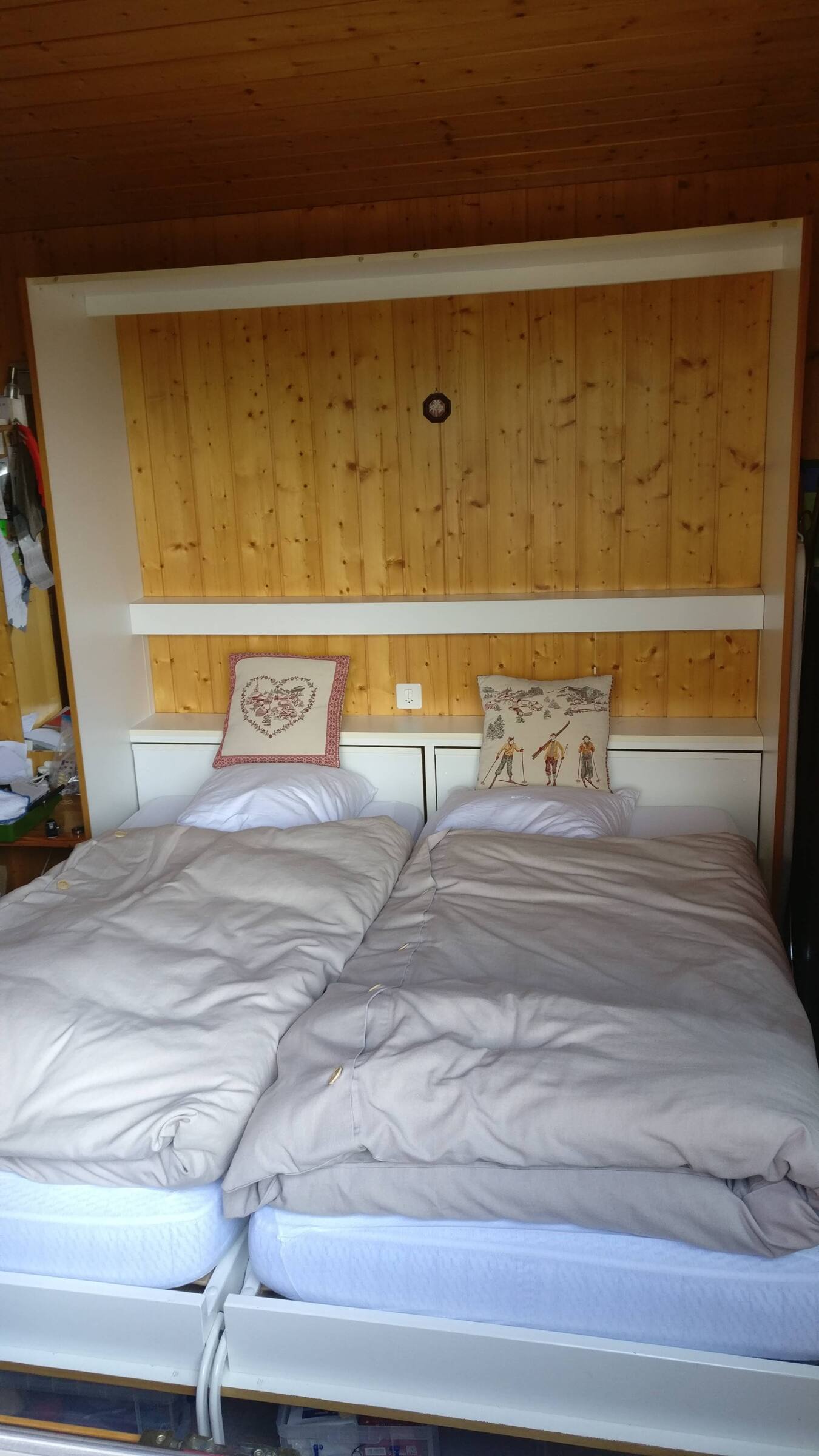 Chalet VOLIERE HAUT. -Außen: für 8 Personen, große Terrasse, Garten, Balkon, Grill, Sonnenzelt, Gartenmöbel. -Innenraum: 120 m2, geschlossene Eingangshalle, Wohnzimmer mit skandinavischem Ofen und Essbereich. -Schlafzimmer: 1 Schlafzimmer mit 2 Betten nebeneinander (90/200) mit eigenem Bad & WC, 3 Schlafzimmer mit x 2 Betten (4x 90/200 und2x 90/210). -Sanitäre Anlagen: 1 eigenes Bad & WC mit Waschmaschine und Trockner, 1 Badezimmer, 1 separates WC. -Küche: offen, Cerankochfeld, Backofen, Kühlschrank, Geschirrspüler, Mikrowelle, Nespresso-Maschine, Fondue- und Raclette-Set. -verschieden: Kabel-TV, WiFi, Haustiere nicht erlaubt, Tischtennis, Nichtraucher, 3 Privatparkplätze am Fuße des Chalets und eine Ladestation für Elektroauto, Elektroheizung, Skiraum. - Möglichkeit zusätzlich zum Chalet VOLIERE HAUT zu mieten: Studio VOLIERE BAS. -Außenbereich: Studio im Erdgeschoss mit Rasen. -Innenbereich: 40 m2, Wohnzimmer mit einem Schlafsofa (160/200) mit 2 1-Sitzer-Bettdecken, Essbereich. -Schlafzimmer: 1 Schlafzimmer mit Etagenbett (2x 90/200) mit WC und Waschbecken. -Sanitäre Anlagen: kürzlich renoviert (2024), 1 Badezimmer mit Dusche und WC. -Küche: neu renoviert (2024), offen, Miniherd, Kühlschrank, Mikrowelle + Kombiofen, Fondue- und Raclette-Set. -Sonstiges: WiFi, Haustiere nicht erlaubt, Nichtraucher, Elektroheizung. -HINWEIS: Alle Betten sind mit Einzelbettdecken ausgestattet (Standardmaße 140x200 cm). Bettwäsche und Bade-/Küchentücher können gegen Aufpreis in der Agentur gemietet werden. -