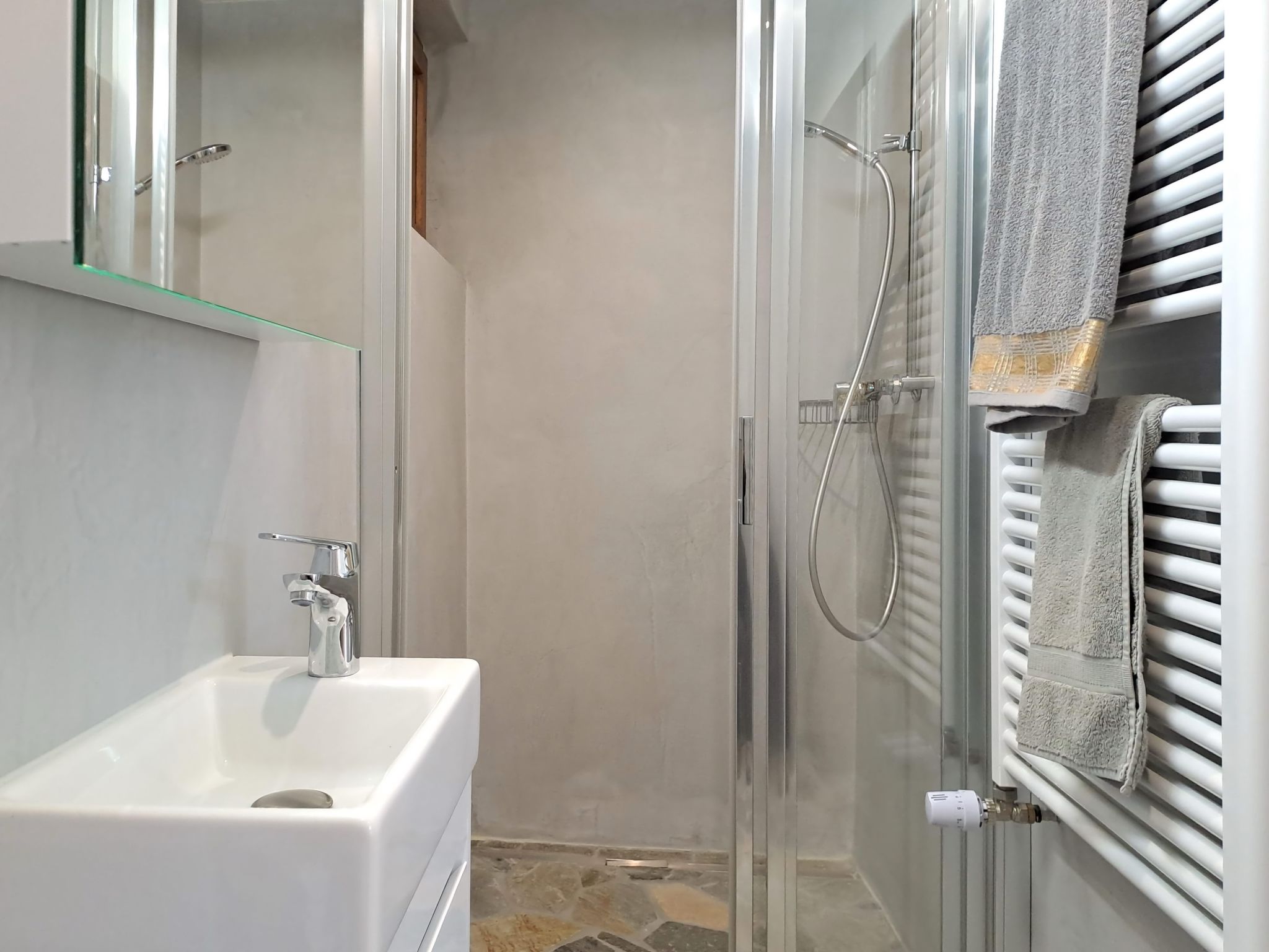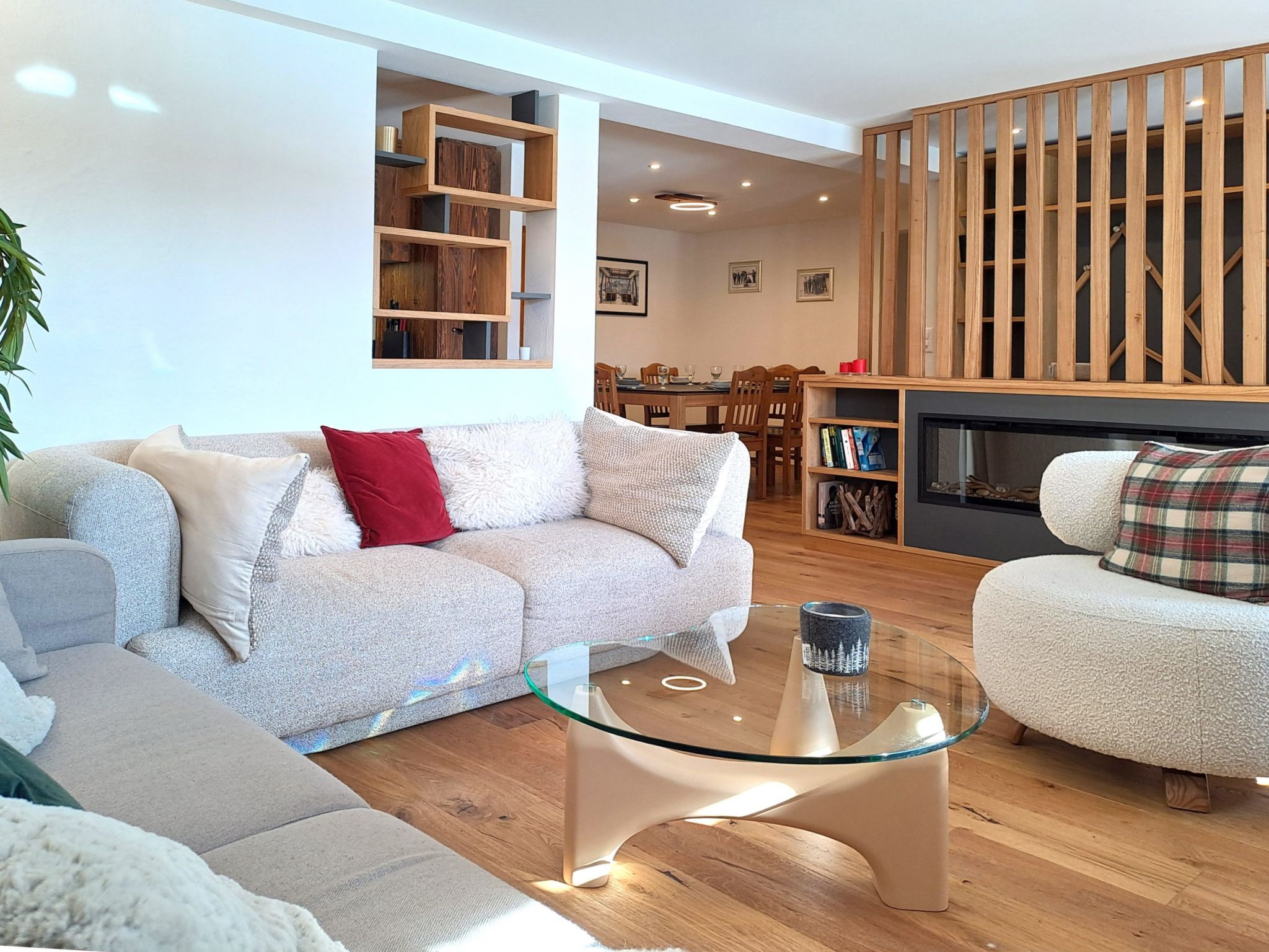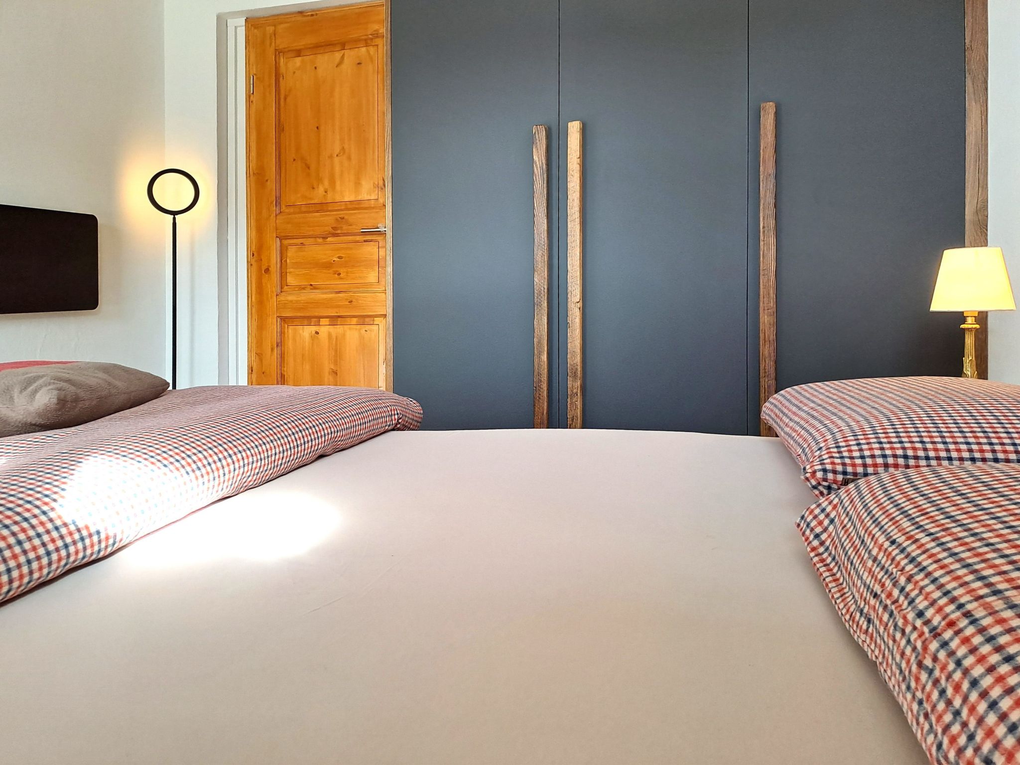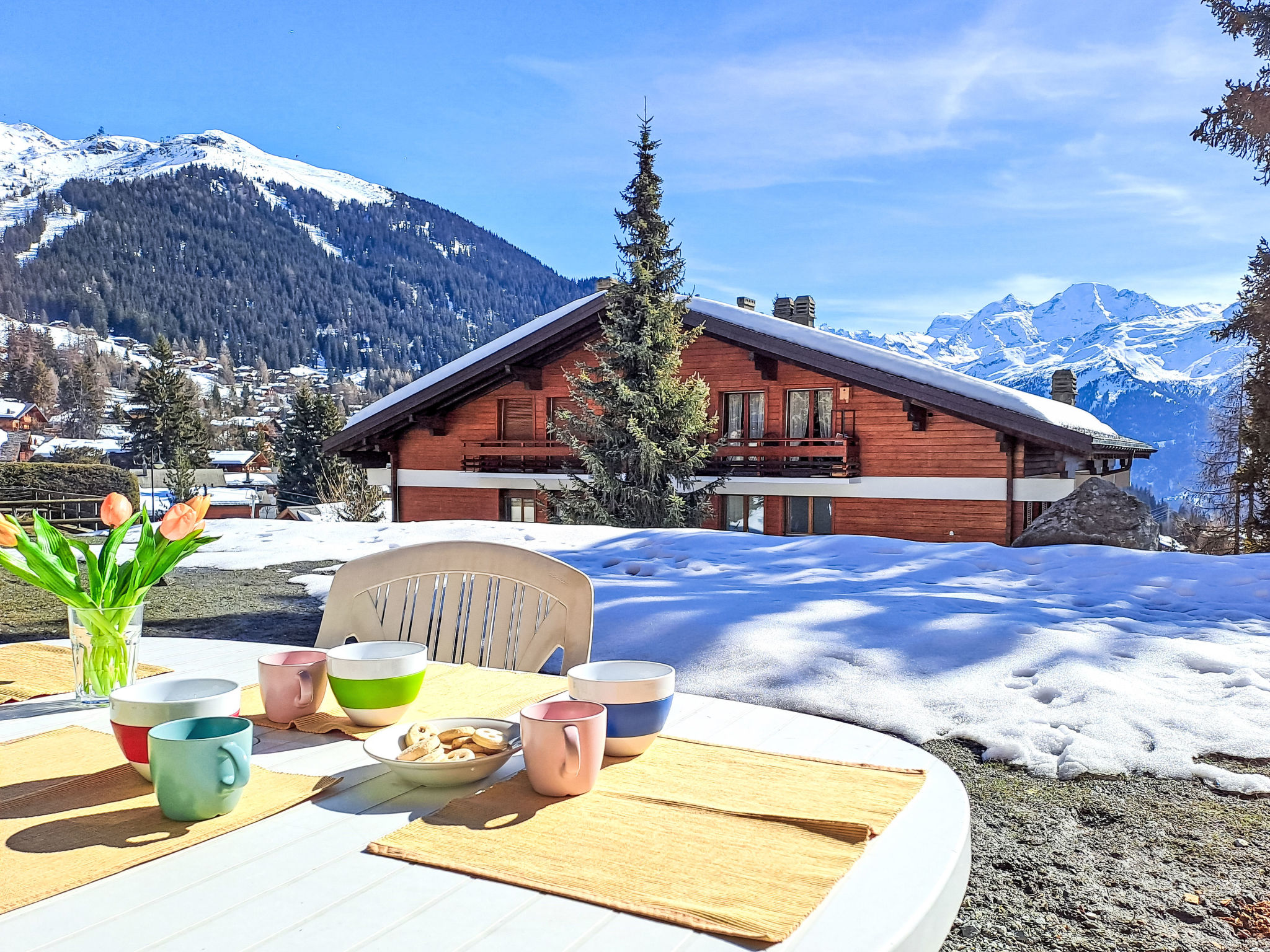 "Rousserolles 2", 5-Zimmer-Wohnung 100 m2, im Erdgeschoss. Vollständig renoviert, sehr schön und modern eingerichtet: Wohn-/Esszimmer mit Kabel-TV und E-Heizung. 4 Zimmer, jedes Zimmer mit 3 Betten (140 cm, Länge 200 cm). Offene Küche (Backofen, Geschirrspüler, 4 Glaskeramikplatten, Toaster, Wasserkocher, Tiefkühler, elektrische Kaffeemaschine, Kapseln für die Kaffeemaschine (Nespresso) extra, Racletteofen, Fondue Set (Käse)). Bad/WC, 2 Duschen/WC. Elektrokamin. Parkettboden. Schöne Sicht auf die Berge. Zur Verfügung: Haartrockner. Internet (WLAN, gratis). Parkplatz. Bitte beachten: Nichtraucher-Unterkunft.