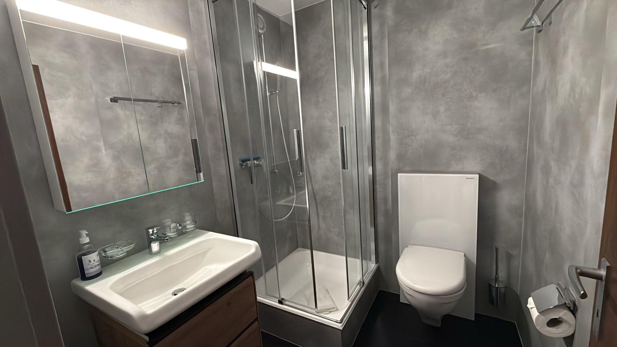 2-Zimmerwohnung: Wohn-/Esszimmer mit 2 Schrankbetten, gratis W-Lan, TV, Radio, CD-Player, separate Küche, Schlafzimmer mit 1 Doppelbett, Dusche-WC, Süd-Balkon. Nichtraucherwohnung. Garage zu mieten.