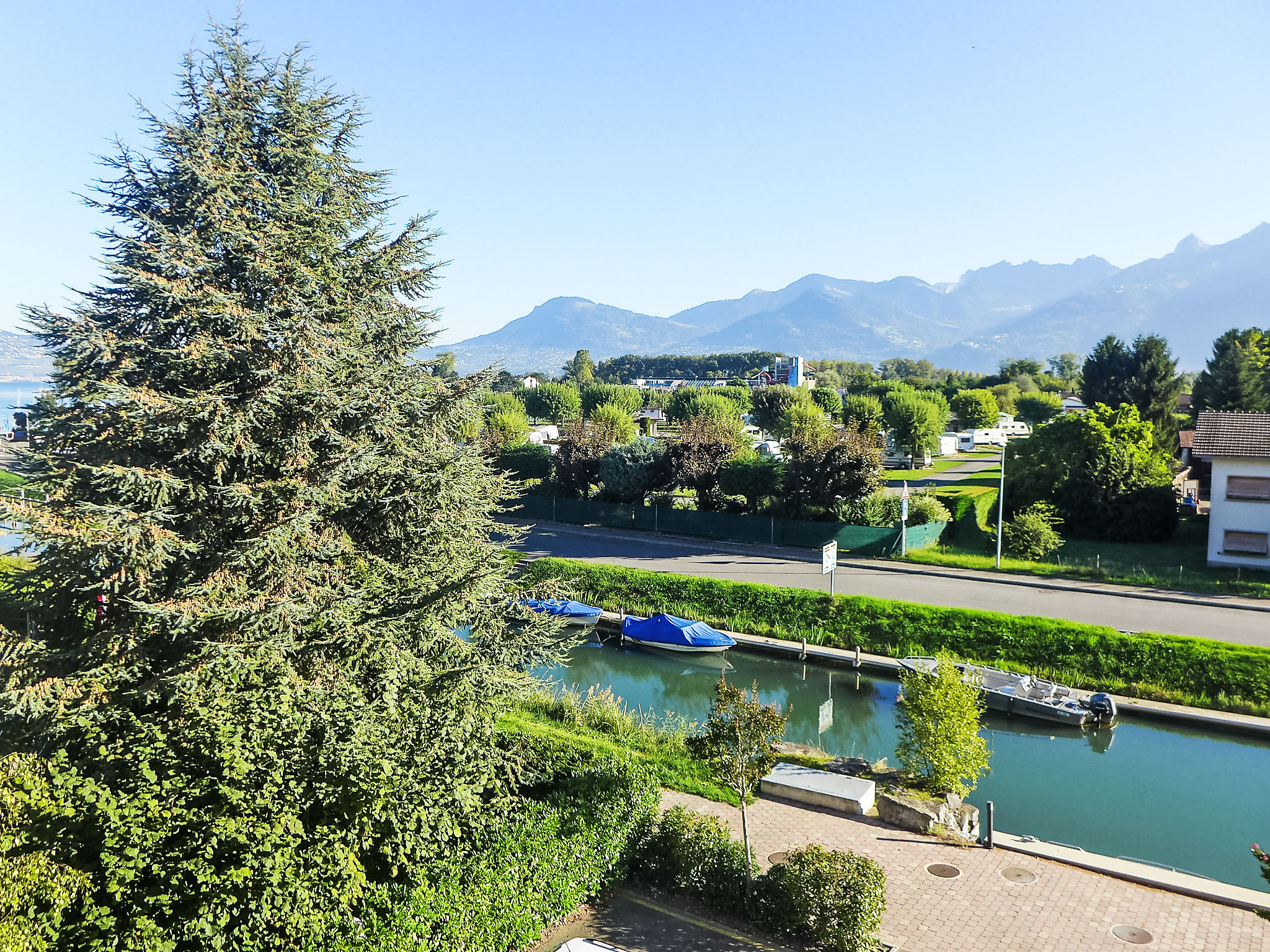 Grosse Ferienanlage "Residenz Marina". Am Ortsrand, 300 m vom Zentrum von Le Bouveret, ruhige, sonnige Lage, 200 m vom See, 50 m vom Kanal. Im Hause: Zentralheizung. Einkaufsgeschäft, Lebensmittelgeschäft 800 m, Restaurant, Bäckerei 500 m, Fahrradverleih 190 m, Bushaltestelle "Bouveret village" 1.2 km, Bahnstation "Le Bouveret" 300 m, Kieselstrand 200 m, Freibad 300 m, Hallenbad 7.2 km, Thermalbad 30 km, Strandbad 300 m, Badesee "Léman" 300 m. Sporthafen 200 m, Golfplatz (18 Loch) 15 km, Surfschule 200 m, Tennis, Minigolf 12 km, Wanderwege ab Haus 300 m, Bergeisenbahn 15 km, Skipisten 18 km, Skischule 18 km, Kinderskischule 35 km, Schlittelbahn 29 km, Langlaufloipe 35 km, Eisfeld 18 km. Nahe gelegene Sehenswürdigkeiten: Parc Aventure 17 km, Château Chillon / Fort de Chillon, Swiss Vapeur Parc 100 m, Aqua Parc 500 m. Bekannte Skigebiete sind gut erreichbar: Les Portes du Soleil 18 km, Villars 35 km, Leysin 31 km. Bekannte Seen in der Umgebung sind gut erreichbar: Lac Léman. Wandergebiete: Portes du Soleil. Die Schlüsselübergabe findet bei der Agentur Interhome in Bouveret statt. Die Nachbarschaft ist sehr lärmempfindlich. Ruhe und gutes Benehmen wird erwartet.
