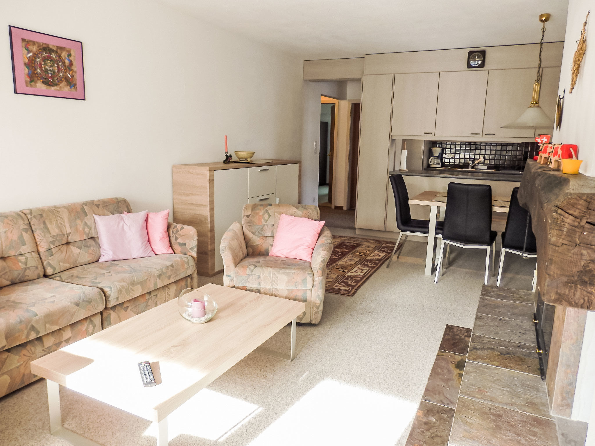 "Curnera 9/4", 3-Zimmer-Wohnung 74 m2 im 1. Stock. Gemütlich eingerichtet: Wohn-/Esszimmer mit offenem Kamin und Kabel-TV (Flachbildschirm), DVD. Ausgang zum Balkon. 1 Doppelzimmer. 1 Kinderzimmer mit 1 Bett und 1 Ausziehbett. Küche (4 Kochplatten, Backofen, Geschirrspüler, Toaster, Wasserkocher, Mikrowelle, elektrische Kaffeemaschine, Kapseln für die Kaffeemaschine (Nespresso) extra, Racletteofen, Fondue Set (Käse)) mit Durchreiche. Bad/WC. Balkon 5 m2, Ostlage. Balkonmöbel. Schöne Sicht auf die Berge, die Landschaft und die Ortschaft. Zur Verfügung: Internet (WLAN, gratis). Parkplatz (1 Auto), Garage beim Haus. Bitte beachten: Nichtraucher-Unterkunft.