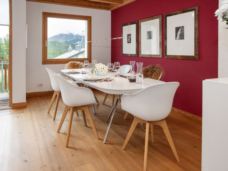 Pontresina 7 km von St. Moritz: Schönes, freistehendes, komfortables Mehrfamilienhaus "Chesa Vadret", auf 3 Stockwerken, Baujahr 1998, umgeben von Wiesen. Am Ortsrand, 2 km vom Zentrum von Pontresina, im Bezirk Muragl, ruhige, sonnige Lage am Hang, 6 km vom See, in einer Sackgasse, im Grünen. Im Hause: Zentralheizung, Waschmaschine, Wäschetrockner (zur Mitbenutzung, extra). Gemeinschaftsgarage. Einkaufsgeschäft 1 km, Supermarkt 1.8 km, Restaurant 1 km, Bäckerei 1 km, Café 1.8 km, Fahrradverleih 2.1 km, Bushaltestelle "Pontresina, Godin" 500 m, Bahnstation 2.5 km, Hallenbad 2.1 km, See St. Moritzer See 6 km. Golfplatz (18 Loch) 4.3 km, Surfschule 15 km, Tennis 1.1 km, Tennishalle 7.4 km, Minigolf 7.2 km, Reitstall 2.7 km, Wanderwege ab Haus 20 m, Radweg 500 m, Luftseilbahn 4.4 km, Skilift 2 km, Skiverleih 2.1 km, Skischule 1.8 km, Kinderskischule 1.8 km, Schlittelbahn 1.3 km, Langlaufloipe 500 m, Eisfeld 1 km, Kinderspielplatz 1 km. Nahe gelegene Sehenswürdigkeiten: Museum Alpin 1.9 km, Kirche St. Maria 2.6 km, Alp-Schaukäserei Morteratsch (Sommer) 8 km, Segantini Museum in St. Moritz 7.3 km, Bernina Express UNESCO Welterbe. Bekannte Skigebiete sind gut erreichbar: Corviglia Piz Nair 4.4 km, Corvatsch - Furtschellas 13 km, Diavolezza - Lagalb 14 km. Bekannte Seen in der Umgebung sind gut erreichbar: St. Moritzer See 6 km, Silvaplaner See 11.6 km, Silser See 15.5 km. Wandergebiete: Stazerwald & Stazersee, Muottas Muragl, Val Roseg & Val Morteratsch. Bitte beachten: Be- und Entladen am Ferienhaus möglich.