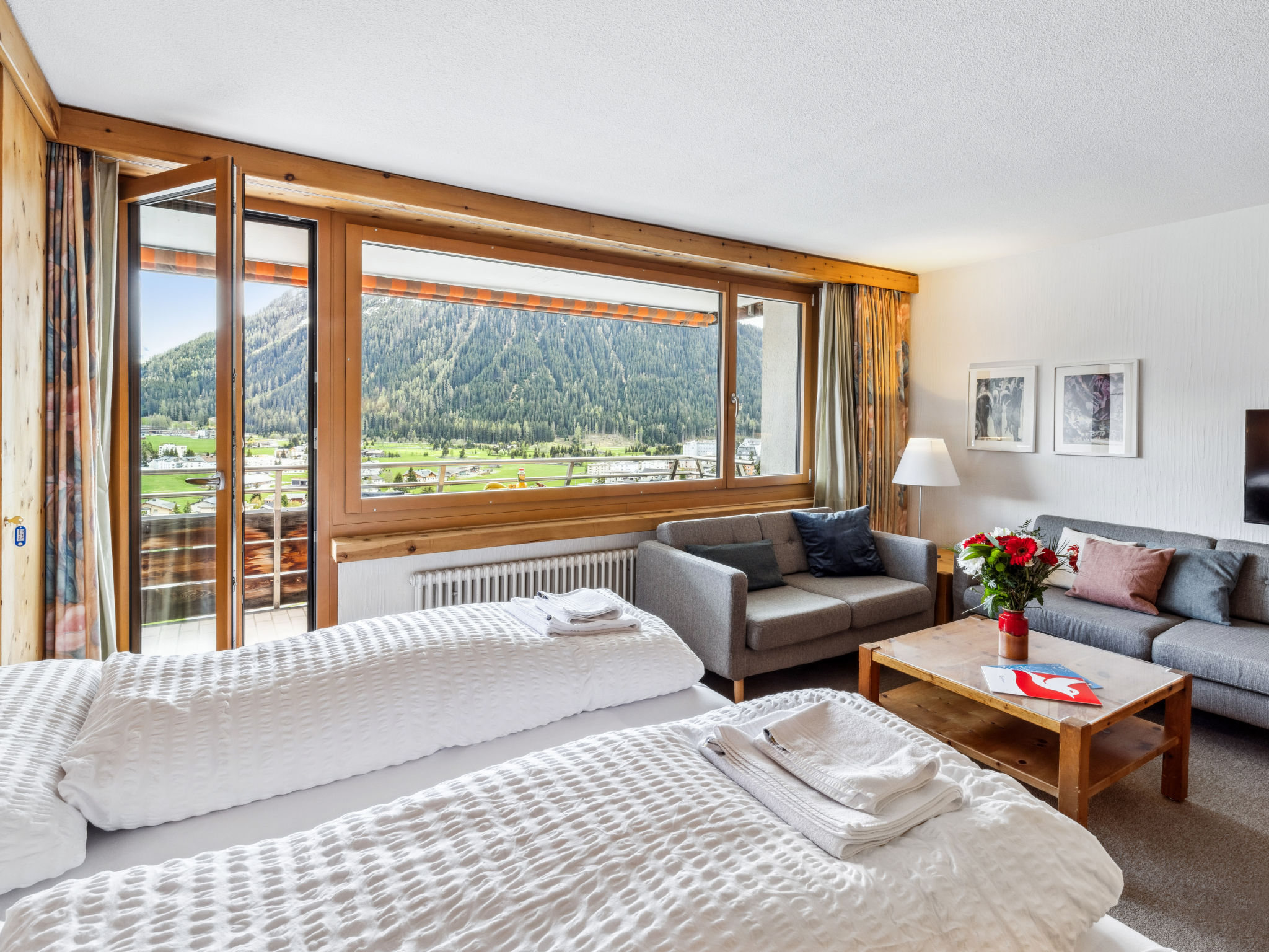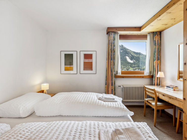 Davos: Appartementhaus "Guardaval (Utoring)". Im Ort, zentrale, ruhige, sonnige Lage am Hang, 1 km vom See, 300 m vom Skigebiet. Zur Mitbenutzung: Hallenbad. Im Hause: Empfang, Aufenthaltsraum mit TV, Wireless LAN, Sauna (extra). Spielzimmer, Fahrstuhl, Skiraum, Zentralheizung, Waschmaschine (zur Mitbenutzung). Brötchenservice und Getränkeservice. Schmale Zufahrt bis zum Haus. Parkplatz (überdacht, beschränkte Anzahl, extra), Gemeinschaftsgarage (extra). Einkaufsgeschäft 300 m, Restaurant 300 m, Bushaltestelle, Bahnstation "Davos Dorf" 400 m, Hallenbad 1 km, Badesee 1 km. Bergeisenbahn, Skisportanlagen, Skipisten, Skischule, Schlittelbahn 1.5 km, Langlaufloipe, Eisfeld 300 m. Bekannte Skigebiete sind gut erreichbar: Parsenn 300 m, Jakobshorn 1.5 km. Das Appartementhaus befindet sich oberhalb der Talstation der Parsennbahn und verfügt über eine herrliche Aussicht. Parkplatz + Garage (Reservierung bei Ankunft).
