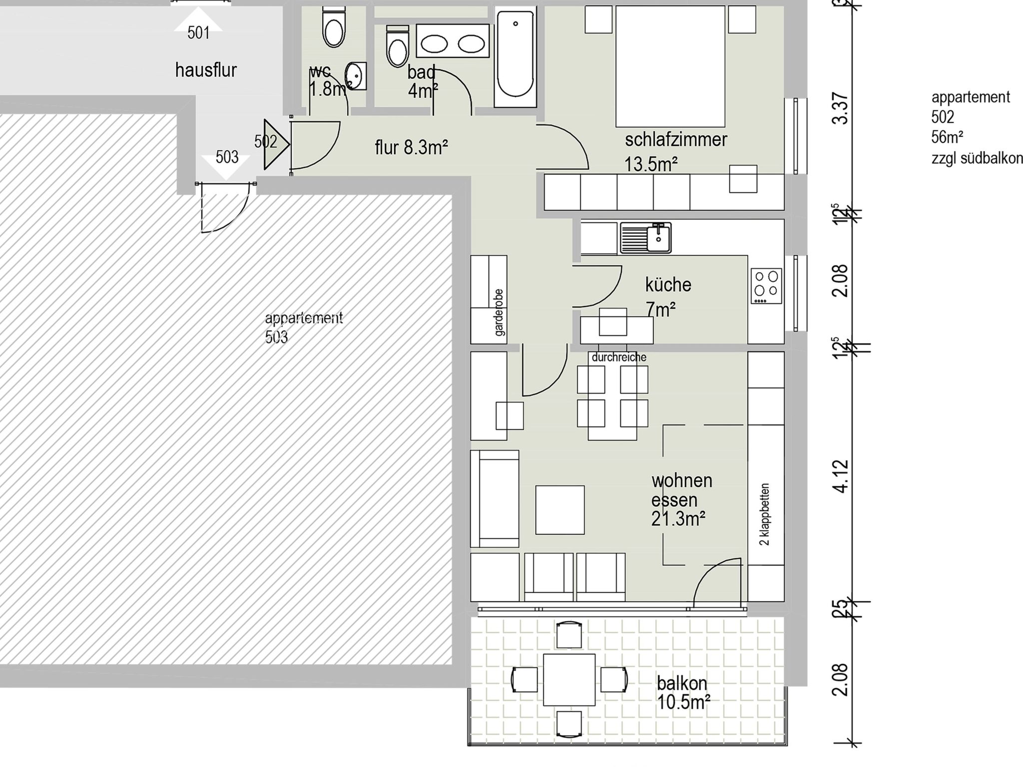 "Guardaval Apt 502", 2-Zimmer-Wohnung 65 m2 im 5. Stock, Südostlage. Komfortabel und rustikal eingerichtet: Wohn-/Esszimmer mit 2 Wandschrankbetten und Kabel-TV (Flachbildschirm), Radio. Ausgang zum Balkon. 1 Zimmer mit 2 Betten. Küche (Backofen, Geschirrspüler, 4 Glaskeramikplatten). Bad/WC, sep. WC. Balkon 7 m2. Schöne Sicht auf die Berge, die Landschaft und die Ortschaft. Zur Verfügung: Internet (WLAN, gratis). Parkplatz. Bitte beachten: Nichtraucher-Unterkunft. 11414