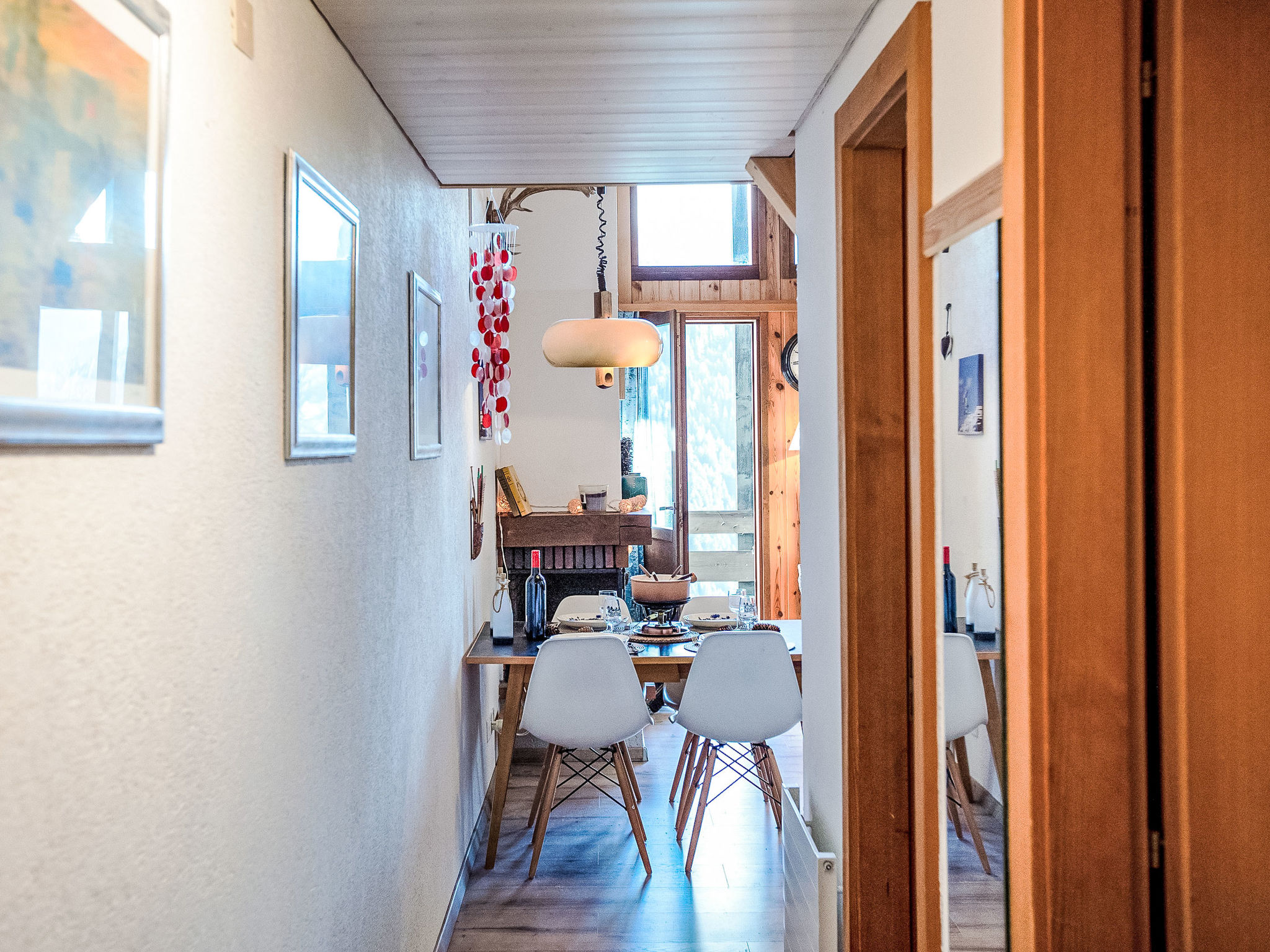 "Les Arsets 308/15", 3-Zimmer-Attikawohnung 65 m2 auf 2 Stockwerken, im Erdgeschoss, Südlage. Renoviert, zweckmässig und schön eingerichtet: Wohn-/Esszimmer mit offenem Kamin und Esstisch. Ausgang zum Balkon, Richtung Süden. 1 Zimmer mit 1 franz. Bett (1 x 160 cm). Kleine, offene Küche (Backofen, Geschirrspüler, 4 Induktionskochplatten, Toaster, Wasserkocher, Mikrowelle, elektrische Kaffeemaschine, Kapseln für die Kaffeemaschine (Chicco D'Oro) extra, Racletteofen, Fondue Set (Käse)). Dusche/WC. Obergeschoss: (steile Treppe) 1 Zimmer mit 1 Doppelbett (1 x 160 cm), Bad/WC. Balkon, Südlage. Terrassenmöbel. Sehr schöne Sicht auf die Berge. Zur Verfügung: Internet (WLAN, gratis). Parkplatz Nr. 308/15 (überdacht, 1 Auto). Bitte beachten: Kühlschrank ohne Gefrierfach, Nichtraucher-Unterkunft. Kein Fahrstuhl.