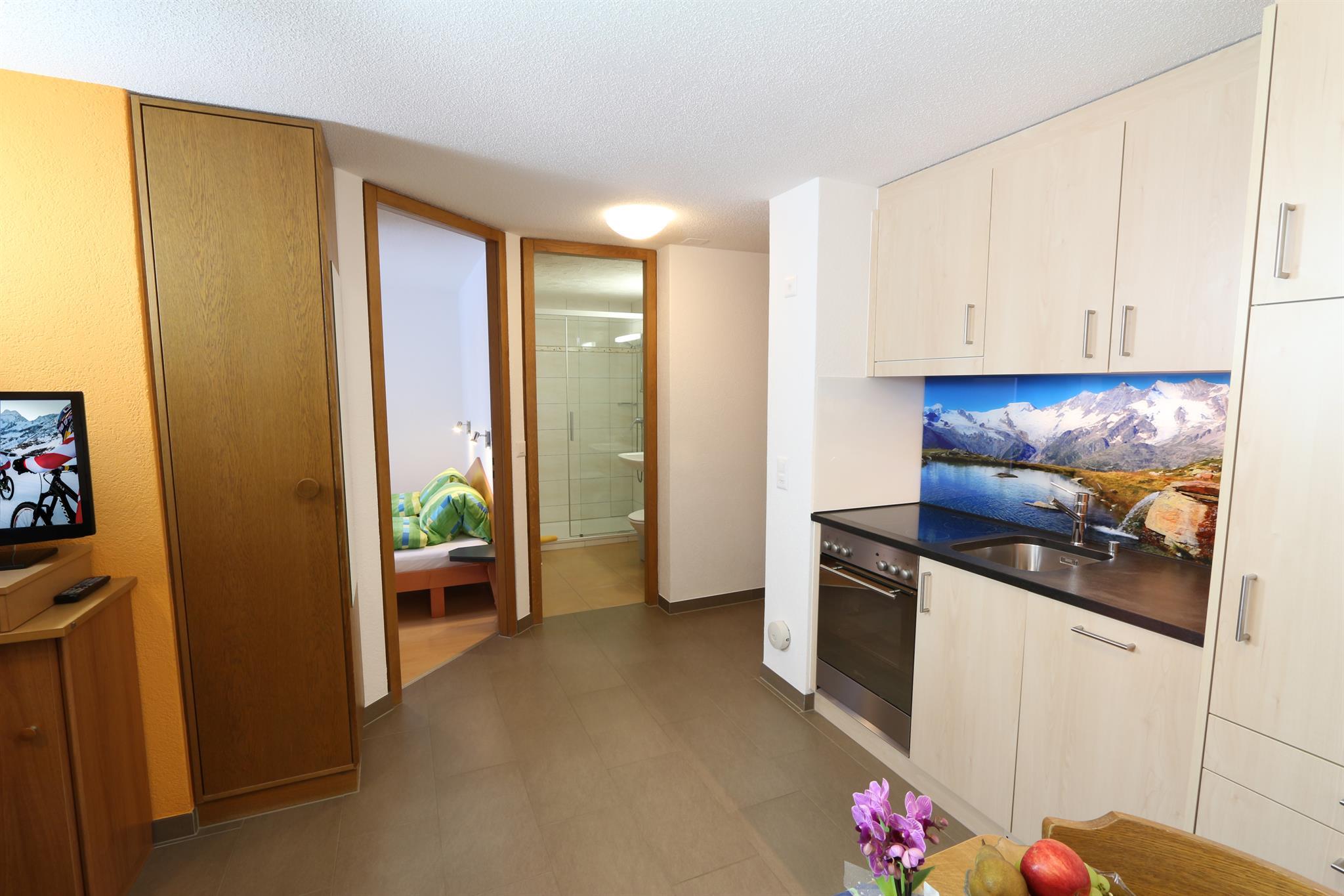 Moderne und geräumige ***s / ****Apartments für 1 – 6 Personen in einem Top-Qualitätsstandard. Je nach Wohnungsgrösse mindestens 1 Schlafzimmer mit Lavabo. Vollausgestattete Wohn-Essküche mit Ceran-Kochfeld, Backofen, Kühlschrank mit Gefrierfach, "Nespresso" Kapsel-Kaffeemaschine, Geschirrspüler, Wasser- & Eierkocher sowie Käse-Fondue Caquelon. (Raclette-Ofen, Tischgrill, Toaster etc. stehen auf Anfrage zur Verfügung – einfach fragen!) Radio-CD Player, TV-Flachbildschirm mit Kabel-TV und Infokanal Saas-Fee, kostenfreies W-LAN, Safe, Dusche/WC mit Haartrockner. Sonniger Südbalkon mit einzigartigem Panoramablick auf die Gletscherbergwelt und Bergspitzen der Mischabelkette.