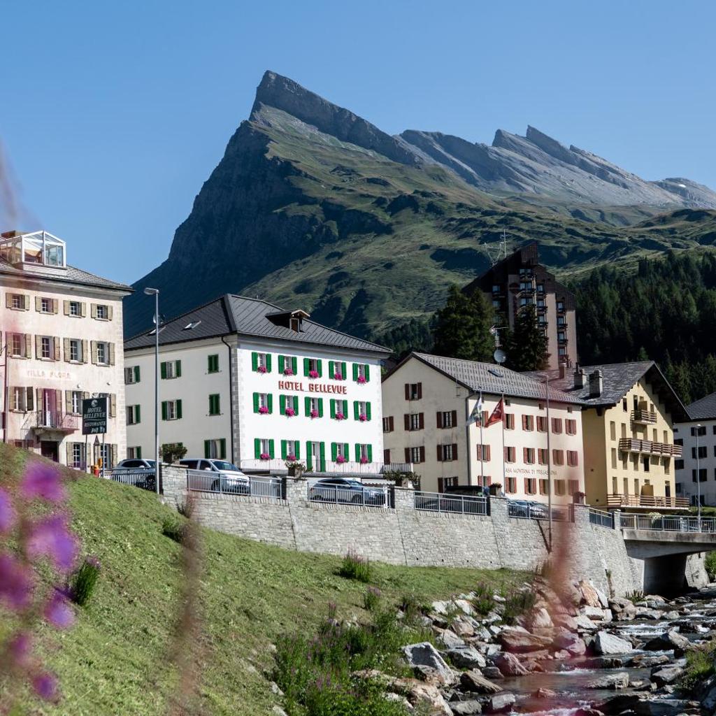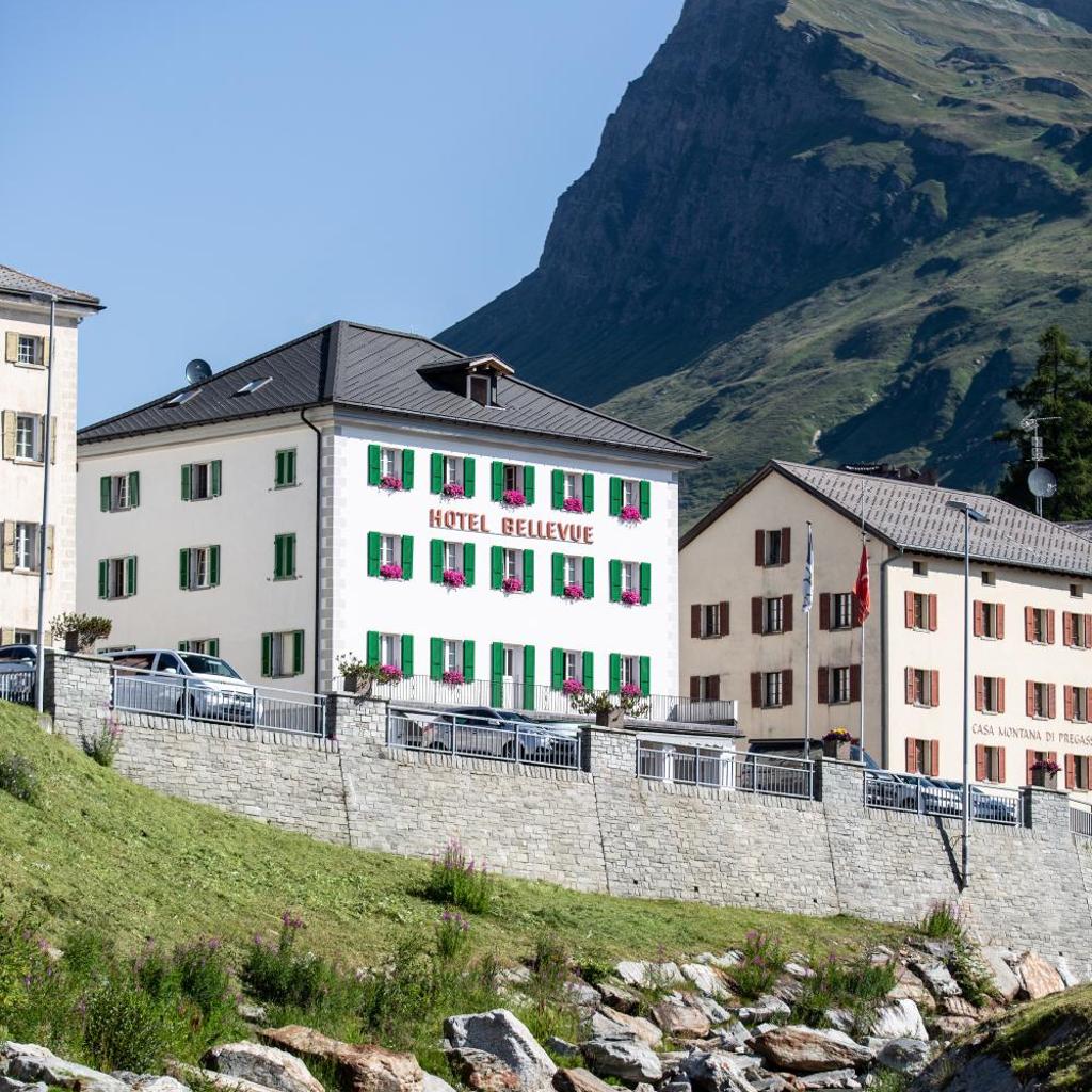 Das familiengeführte Hotel Bellevue in sonniger Lage im Zentrum von San Bernardino wurde vor 130 Jahren erbaut und bietet einen Panoramablick und kostenfreies WLAN.