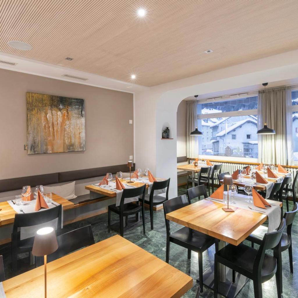 Das Restaurant serviert regionale Spezialitäten, Fleisch- und Käsefondues, Raclette und ein reichhaltiges Frühstücksbuffet. Auf der großen, nach Süden ausgerichteten Terrasse genießen Sie die Sonne.