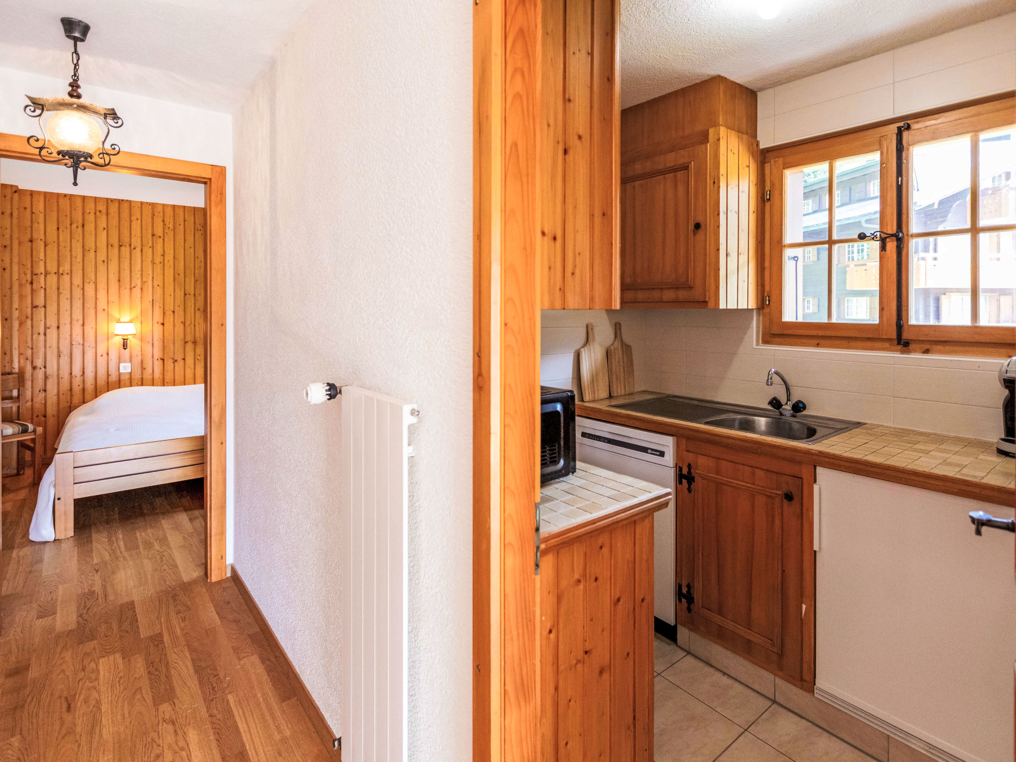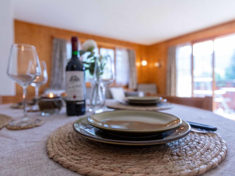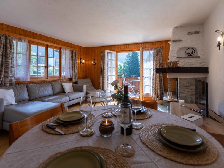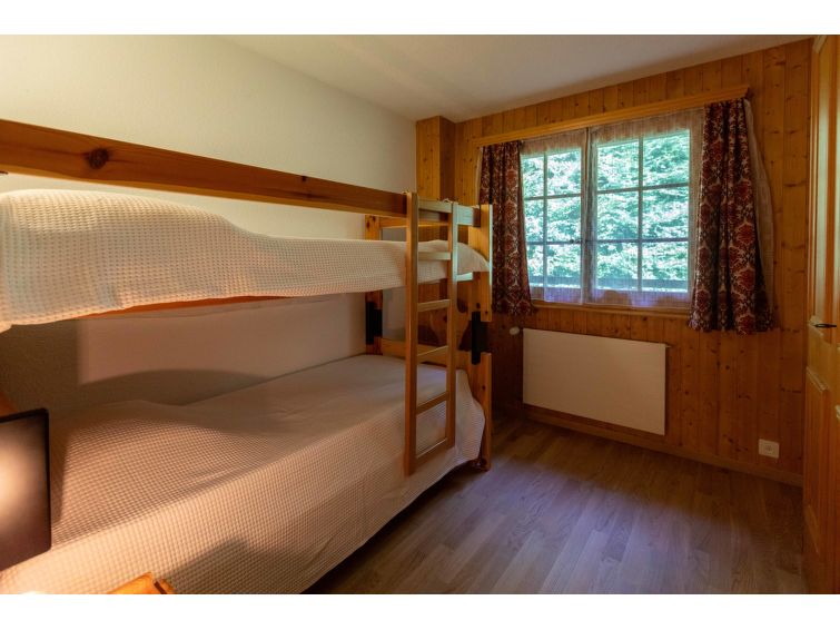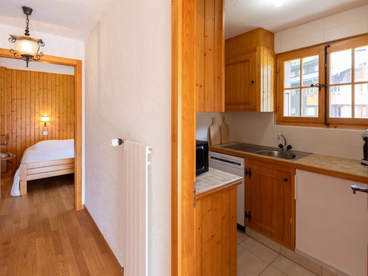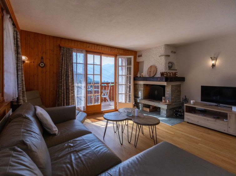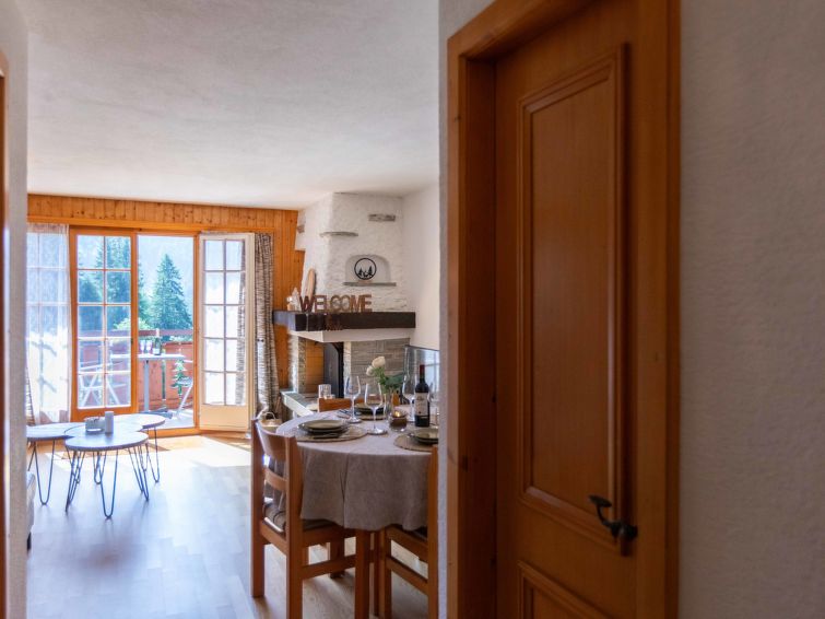 "Vermont 8", 3-Zimmer-Wohnung 55 m2 im 2. Stock. Objekt geeignet für 2 Erwachsene + 2 Kinder. Zweckmässig und komfortabel eingerichtet: Wohn-/Esszimmer mit offenem Kamin und Sat-TV. Ausgang zum Balkon, Richtung Süden. 1 Zimmer mit 2 Betten (90 cm, Länge 200 cm). 1 Kinderzimmer mit 1 x 2 Etagenbetten (90 cm, Länge 200 cm). Kleine Küche (4 Kochplatten, Backofen, Geschirrspüler, Gasherd, Toaster, elektrische Kaffeemaschine, Kapseln für die Kaffeemaschine (Dolce Gusto) extra, Racletteofen, Fondue Set (Chinoise, Käse)). Bad/Bidet/WC, sep. WC. Grosser Balkon. Balkonmöbel. Sehr schöne Sicht auf die Berge, die Skipiste und die Landschaft. Zur Verfügung: Haartrockner. Internet (WLAN, extra). Parkplatz beim Haus. Bitte beachten: Nichtraucher-Unterkunft. Maximal 1 kleines Haustier/Hund erlaubt.
