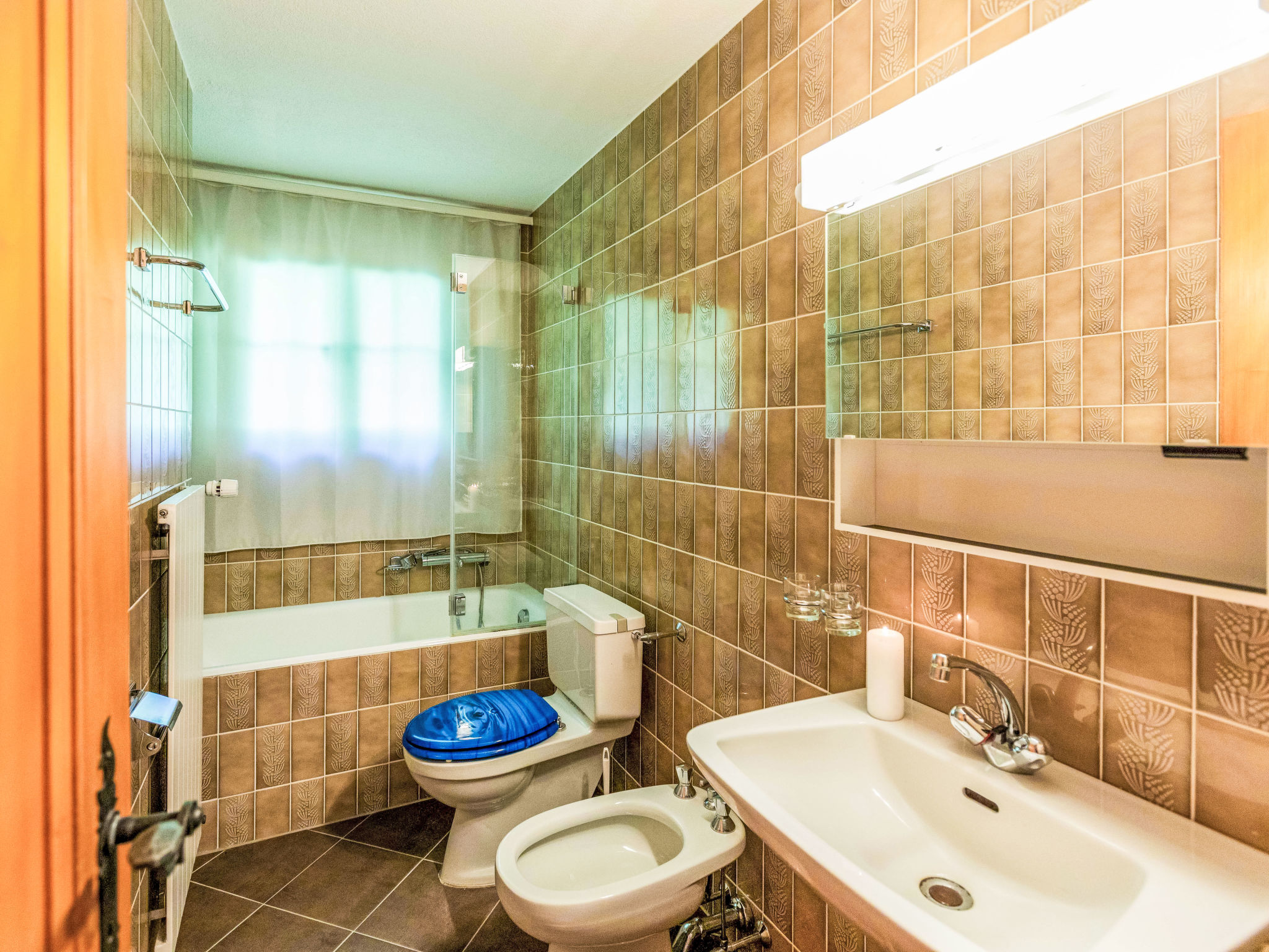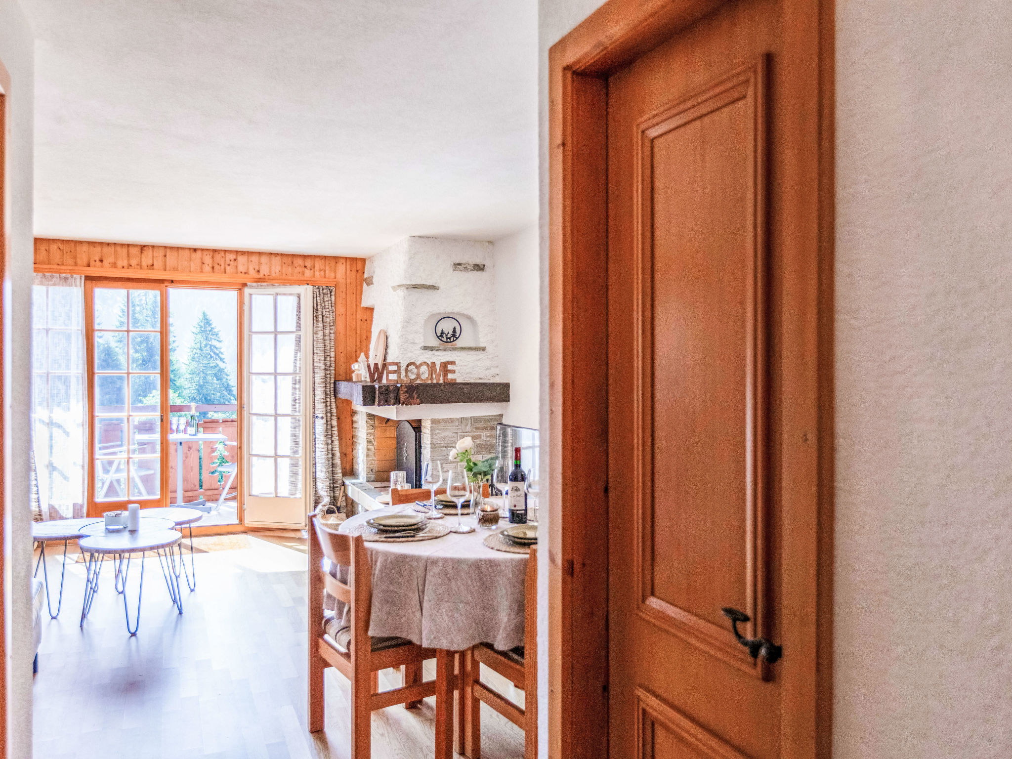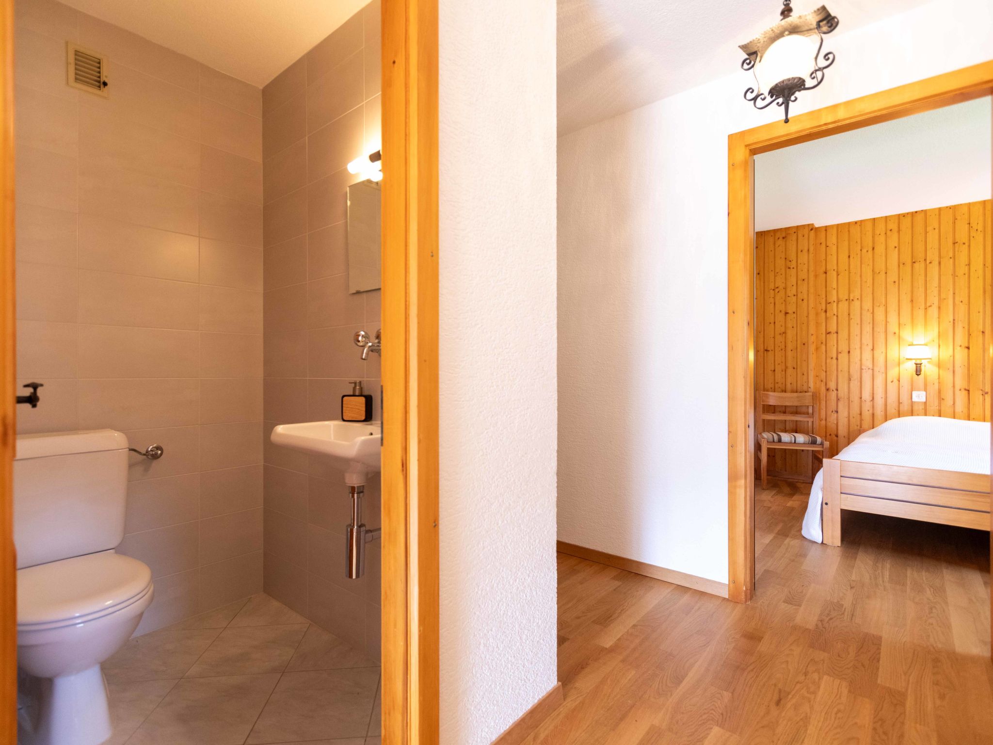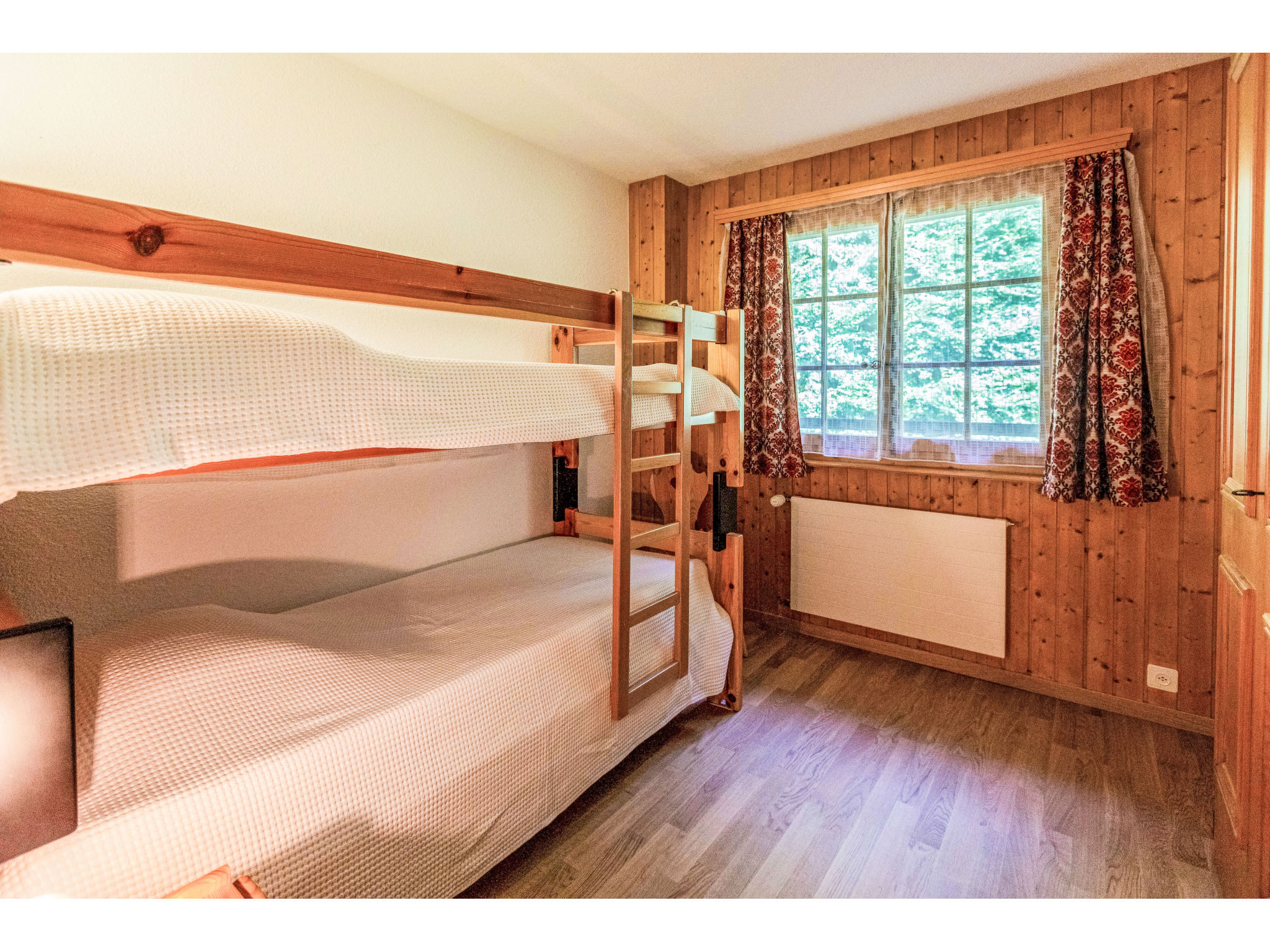 "Vermont 8", 3-Zimmer-Wohnung 55 m2 im 2. Stock. Objekt geeignet für 2 Erwachsene + 2 Kinder. Zweckmässig und komfortabel eingerichtet: Wohn-/Esszimmer mit offenem Kamin und Sat-TV. Ausgang zum Balkon, Richtung Süden. 1 Zimmer mit 2 Betten (90 cm, Länge 200 cm). 1 Kinderzimmer mit 1 x 2 Etagenbetten (90 cm, Länge 200 cm). Kleine Küche (4 Kochplatten, Backofen, Geschirrspüler, Gasherd, Toaster, elektrische Kaffeemaschine, Kapseln für die Kaffeemaschine (Dolce Gusto) extra, Racletteofen, Fondue Set (Chinoise, Käse)). Bad/Bidet/WC, sep. WC. Grosser Balkon. Balkonmöbel. Sehr schöne Sicht auf die Berge, die Skipiste und die Landschaft. Zur Verfügung: Haartrockner. Internet (WLAN, extra). Parkplatz beim Haus. Bitte beachten: Nichtraucher-Unterkunft. Maximal 1 kleines Haustier/Hund erlaubt.