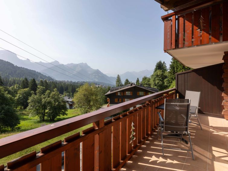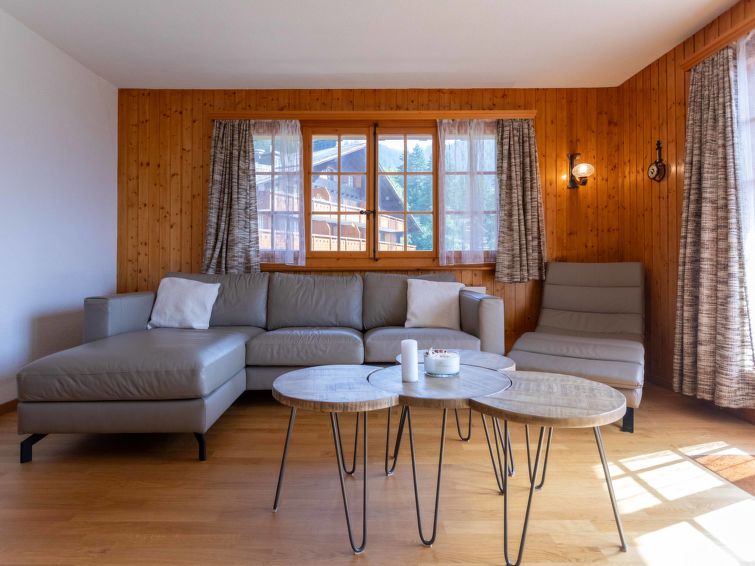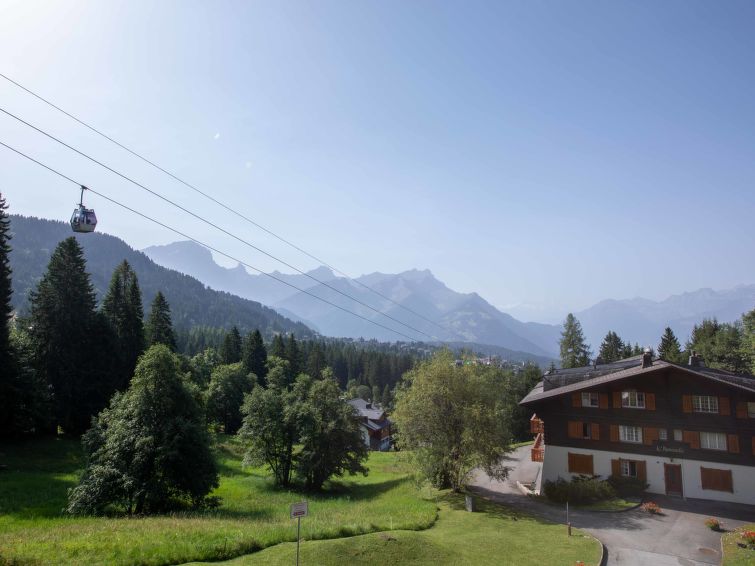Gemütliches Chalet "Vermont". Oberhalb von Villars, La Résidence, ruhige, sonnige Lage, 300 m vom Skigebiet, im Grünen, Richtung Süden. Im Hause: Skiraum, Zentralheizung, Waschmaschine, Wäschetrockner (zur Mitbenutzung). Wohnungsreinigung 1 mal wöchentlich möglich (extra). Zufahrt bis zum Haus. Im Winter bitte Schneeketten mitbringen. Treppenweg (15 Stufen) bis zum Haus. Gemeinschaftsgarage. Einkaufsgeschäft 2.5 km, Lebensmittelgeschäft 1.2 km, Restaurant 2.5 km, Bushaltestelle 1.8 km, Bahnstation "Villars-Bretaye" 2.9 km, Hallenbad 2.5 km. Golfplatz (18 Loch) 8 km, Tennishalle 3 km, Sportzentrum 3 km, Bergeisenbahn 2.9 km, Skilift 2.4 km, Gondelbahn 1.4 km, Skibushaltestelle 1.4 km, Skischule 2.8 km, Kinderskischule 3 km, Eisfeld 2.5 km. Bitte beachten: Fahrzeug empfohlen, kein Fahrstuhl vorhanden. Der gratis Skibus fährt zum Skigebiet Villars.