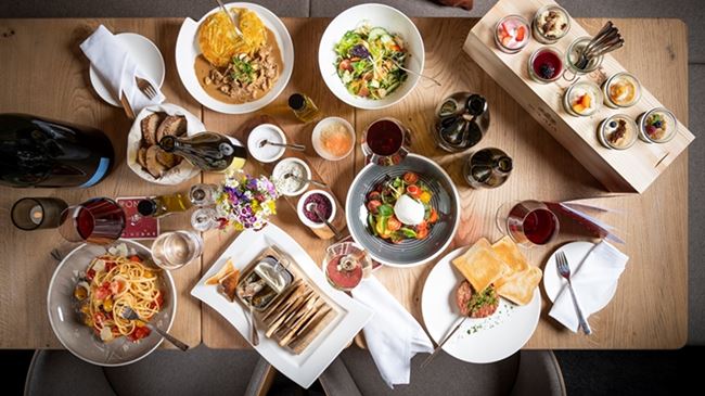 Das Restaurant La Padella ist bekannt für seine erlesenen Weine, saisonalen Kost und flambierten Spezialitäten.