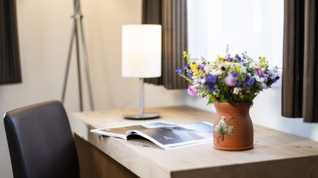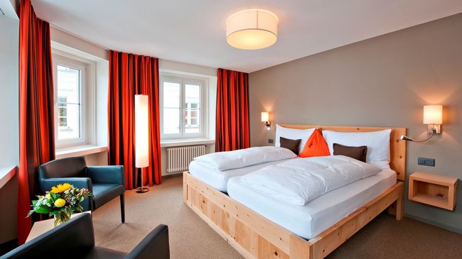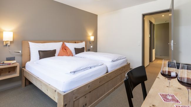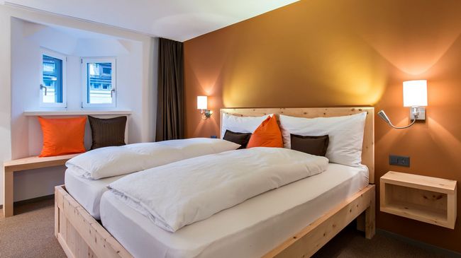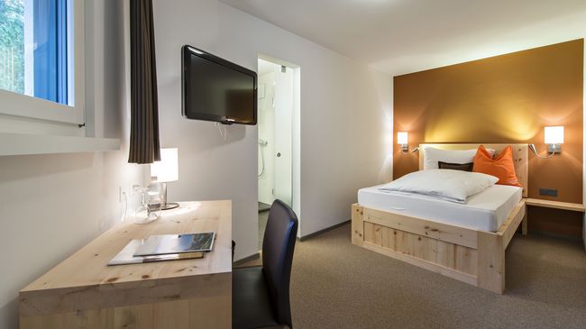Die 25 Nichtraucherzimmer sind modern in warmen Farben mit schlichtem Zirbenholz eingerichtet.