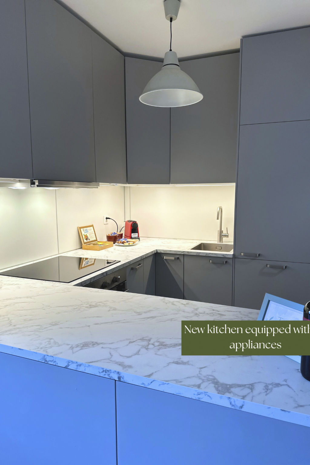 Im Inneren der Wohnung finden Sie alles, was Sie für einen komfortablen Aufenthalt brauchen, einschließlich eines Kamins für kühlere Abende und einer Vielzahl von Küchengeräten, die die Zubereitung von Mahlzeiten erleichtern.