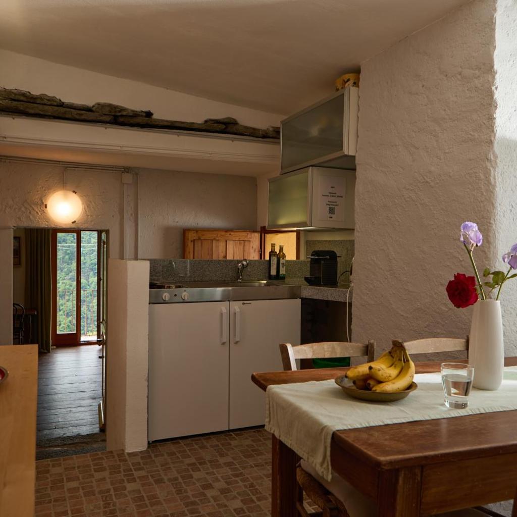 Die Unterkunft Wild Valley Garden Paradise in Valle Onsernone verfügt über 1 Schlafzimmer, 1 Badezimmer mit einem Haartrockner, ein Wohnzimmer und eine Küche mit einem Kühlschrank. In dieser Ferienwohnung werden Handtücher und Bettwäsche angeboten.