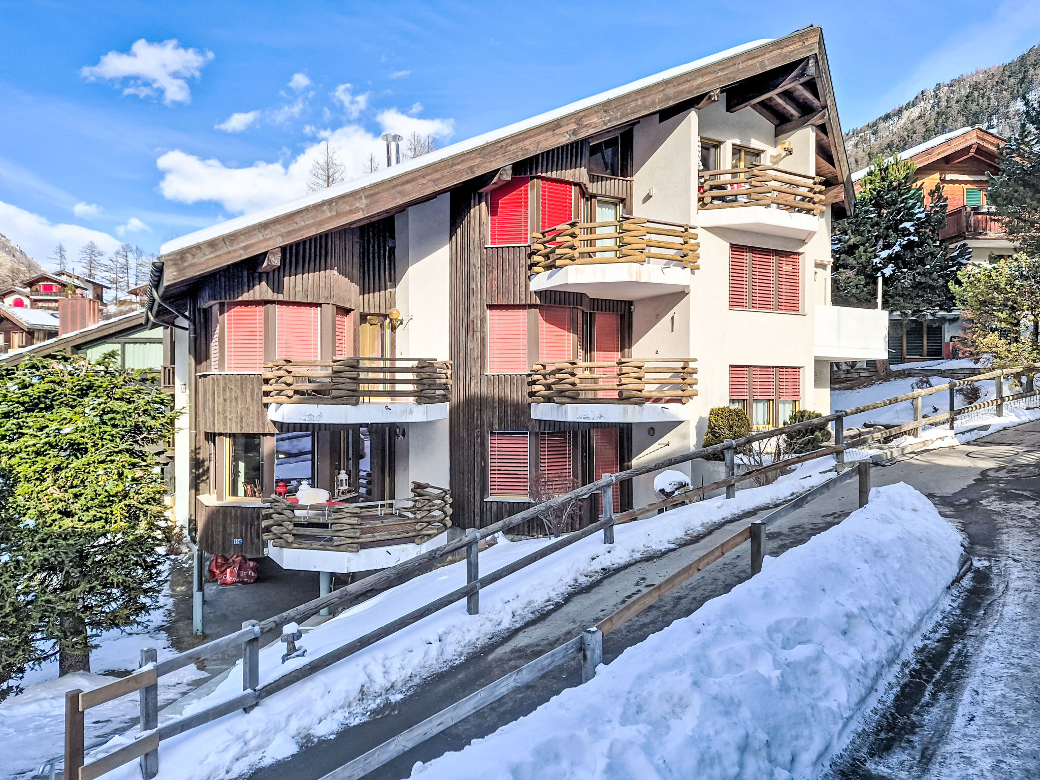 Kleines Mehrfamilienhaus "Verte-Rive", auf 3 Stockwerken. Im Ortsteil Winkelmatten, 1.2 km vom Zentrum von Zematt, ruhige, sonnige Lage. Im Hause: Skiraum, Zentralheizung. 160 m Fussweg bis zum Haus. Lebensmittelgeschäft 850 m, Supermarkt 1.2 km, Restaurant, Bar 160 m, Fahrradverleih 250 m, Zentrum zu Fuss in 18 Minuten erreichbar, Bushaltestelle "Kappelle" 160 m, Bahnstation "Bahnhof Zermatt" 1.3 km. Gondelbahn, Skiverleih 250 m, Skibushaltestelle 160 m, Eisfeld 1.2 km, Kinderspielplatz 160 m. Die Schlüsselübergabe findet bei der Agentur Interhome in Zermatt statt.