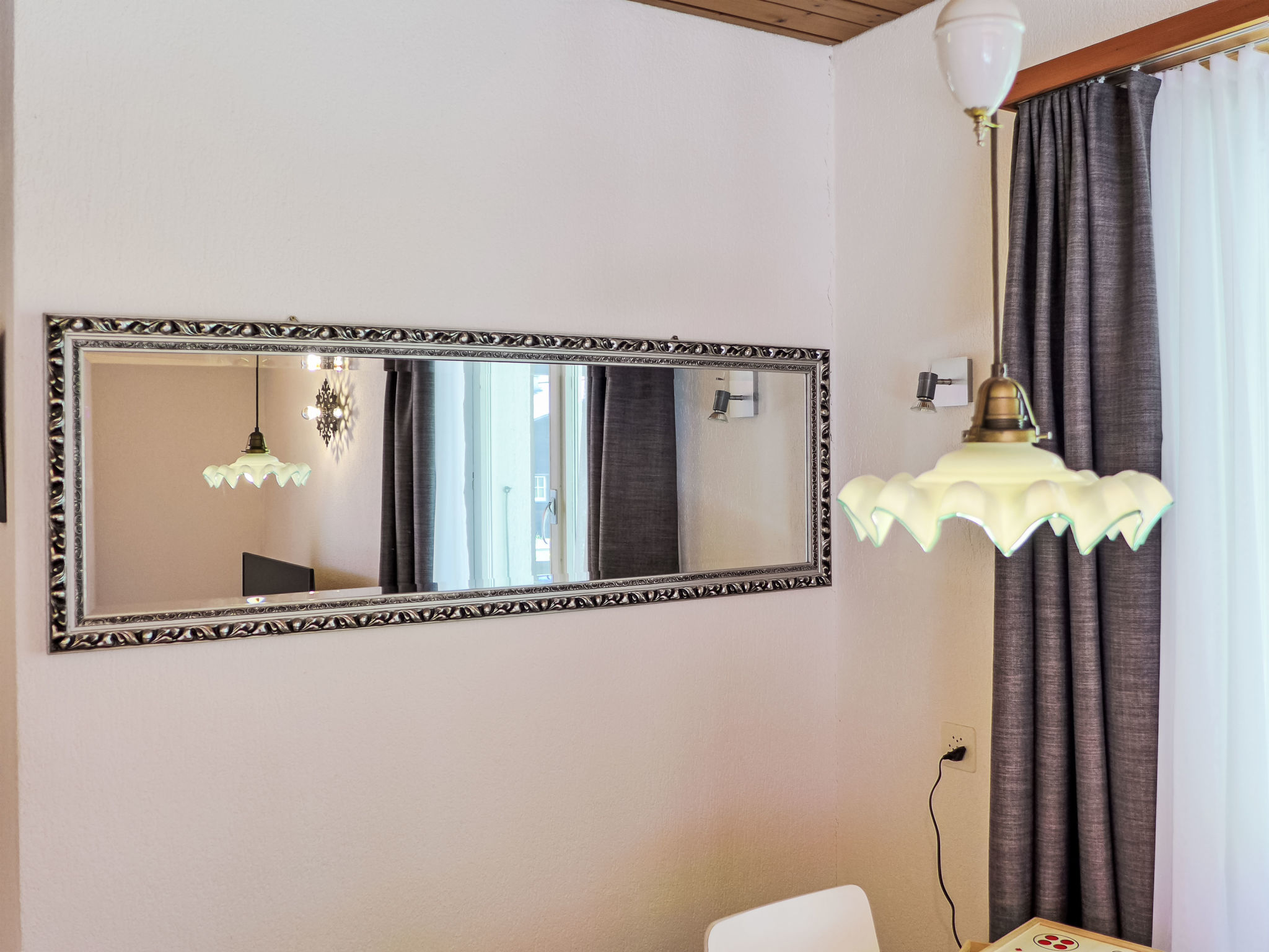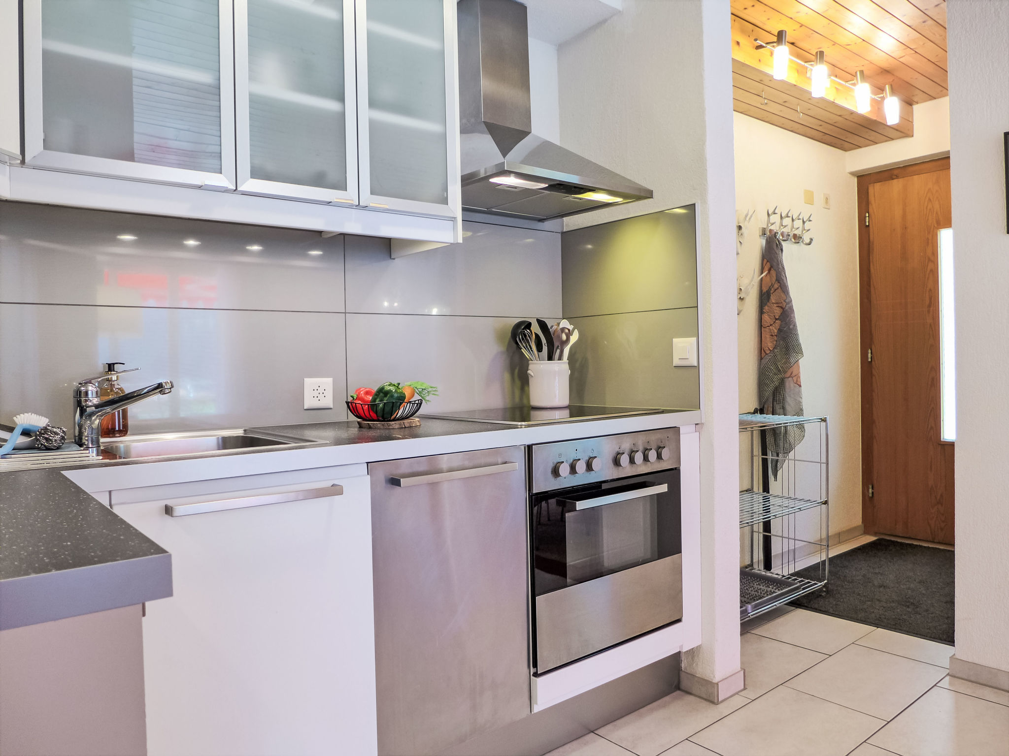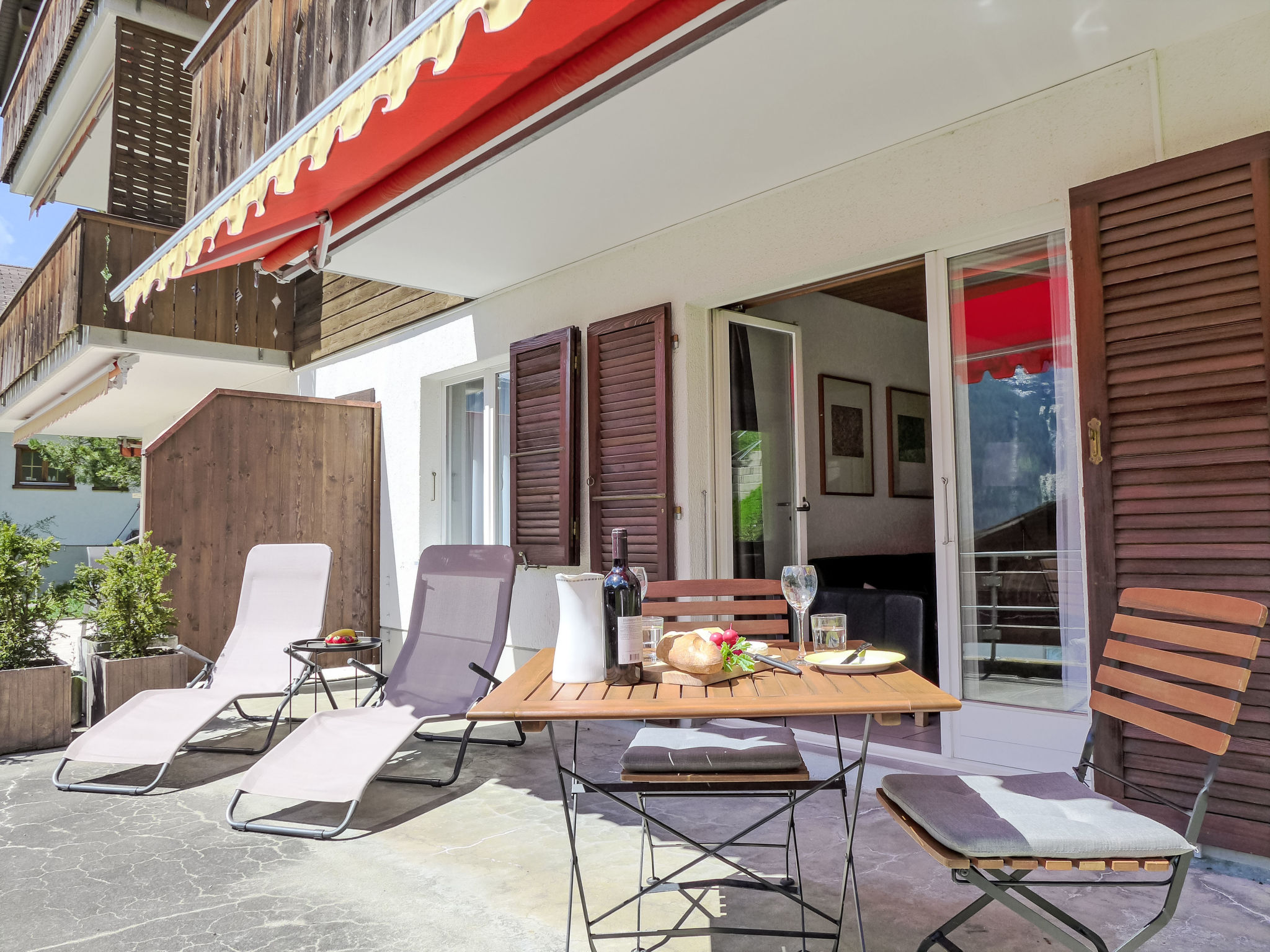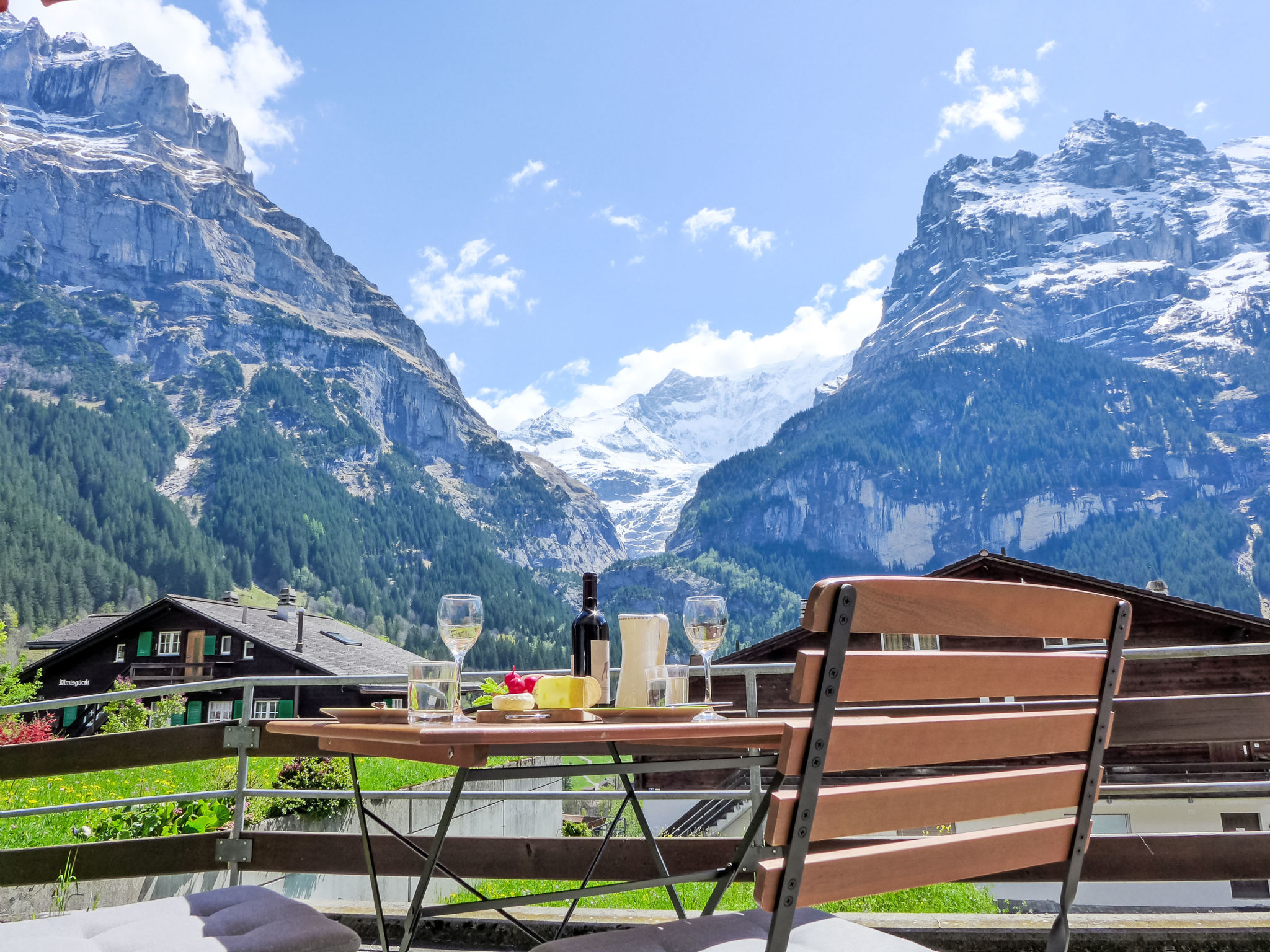 2-Zimmer-Wohnung 45 m2, im Erdgeschoss, Südlage. Geräumig und hell, modern und gemütlich eingerichtet: offenes Wohn-/Esszimmer mit Panoramafenster mit Kabel-TV und Digital-TV (Flachbildschirm), Radio. Ausgang zur Terrasse, Richtung Süden. 1 Zimmer mit 1 Doppelbett (160 cm, Länge 200 cm). Offene Küche (Backofen, Geschirrspüler, 4 Glaskeramikplatten, Toaster, Wasserkocher, elektrische Kaffeemaschine, Racletteofen, Fondue Set (Käse)). Dusche/WC. Fussbodenheizung. Parkettboden. Grosse Terrasse, Südlage. Terrassenmöbel, Liegestühle. Herrliche Panoramasicht auf die Berge, die Landschaft und Eigernordwand. Zur Verfügung: Bügeleisen, Haartrockner. Internet (WLAN, gratis). Parkplatz (1 Auto). Bitte beachten: Nichtraucher-Unterkunft. Eigener Eingang.