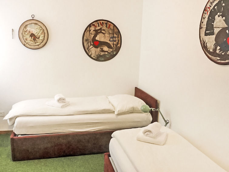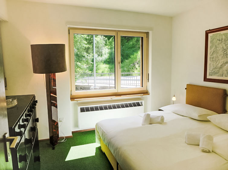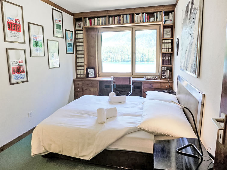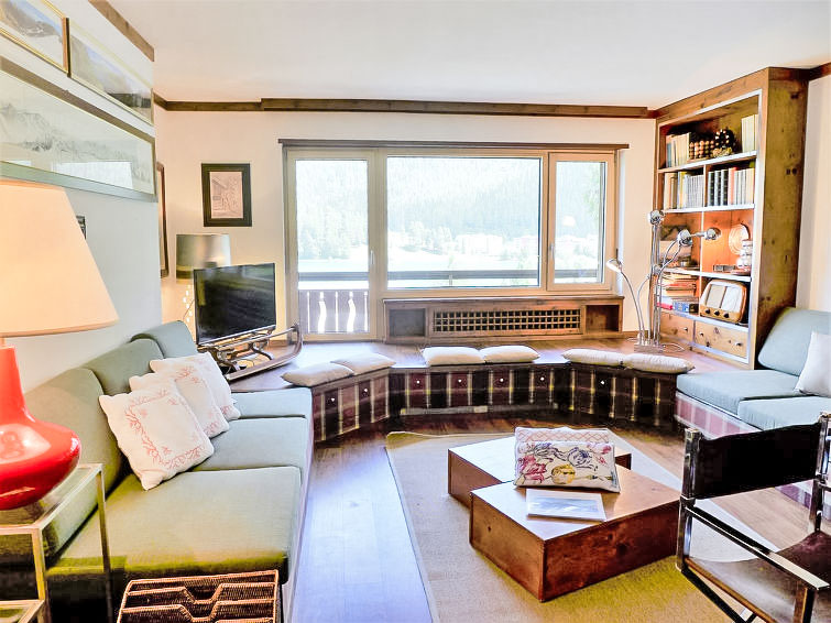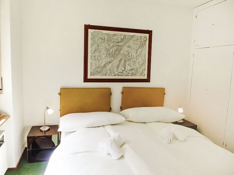"Chesa Sonnalpine B 46", 5-Zimmer-Wohnung 105 m2 im 4. Stock. Teilweise renoviert im Jahre 2018, zweckmässig eingerichtet: Wohn-/Esszimmer mit TV und Radio. Ausgang zum Balkon, Richtung Südosten. 1 Doppelzimmer mit 2 Betten (90 cm, Länge 190 cm). 1 Zimmer mit 2 Betten (80 cm, Länge 190 cm). 1 Kinderzimmer mit 2 Betten (90 cm, Länge 200 cm), 1 Ausziehbett. Ausgang zum Balkon. 1 Zimmer mit 1 Doppelbett (1 x 160 cm, Länge 190 cm). Kleine Küche 8 m2 (Backofen, Geschirrspüler, 4 Induktionskochplatten, Toaster, Wasserkocher, Tiefkühler, elektrische Kaffeemaschine, Kapseln für die Kaffeemaschine (Nespresso) extra, Fondue Set (Chinoise, Käse)). Bad/Bidet/WC, sep. WC, Bad/Dusche/WC. 2 Balkone. Schöne Sicht auf den See und die Berge. Zur Verfügung: Haartrockner. Internet (WLAN, gratis). Garage Nr. 46 (1 Auto), Höhe 183 cm, Breite 240 cm. Bitte beachten: Nichtraucher-Unterkunft. Maximal 2 Haustiere/Hunde erlaubt. Der Garagenplatz ist in der Höhe und in der Breite begrenzt.