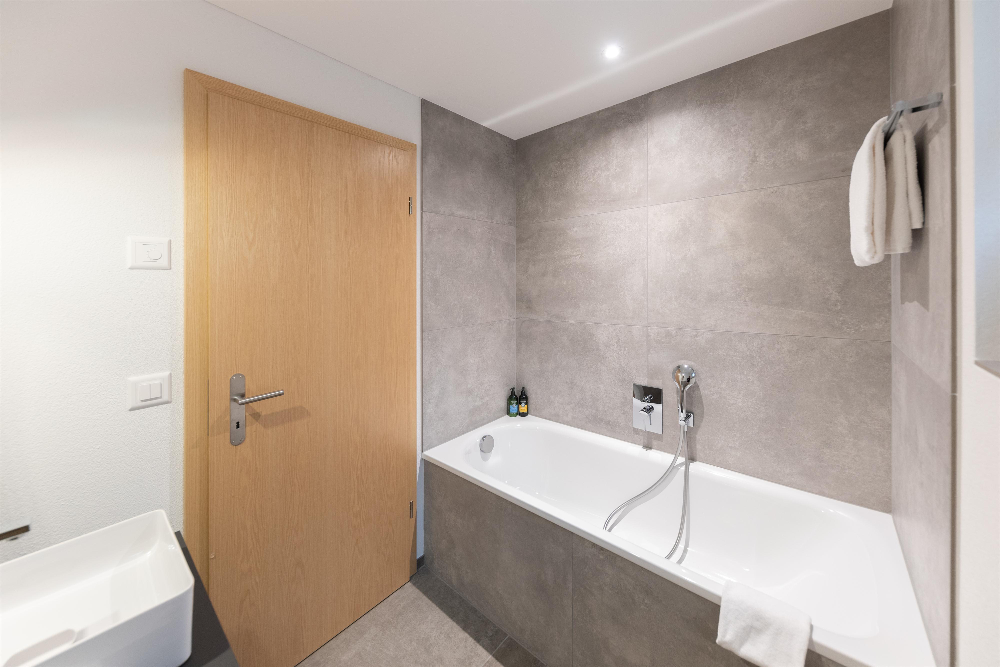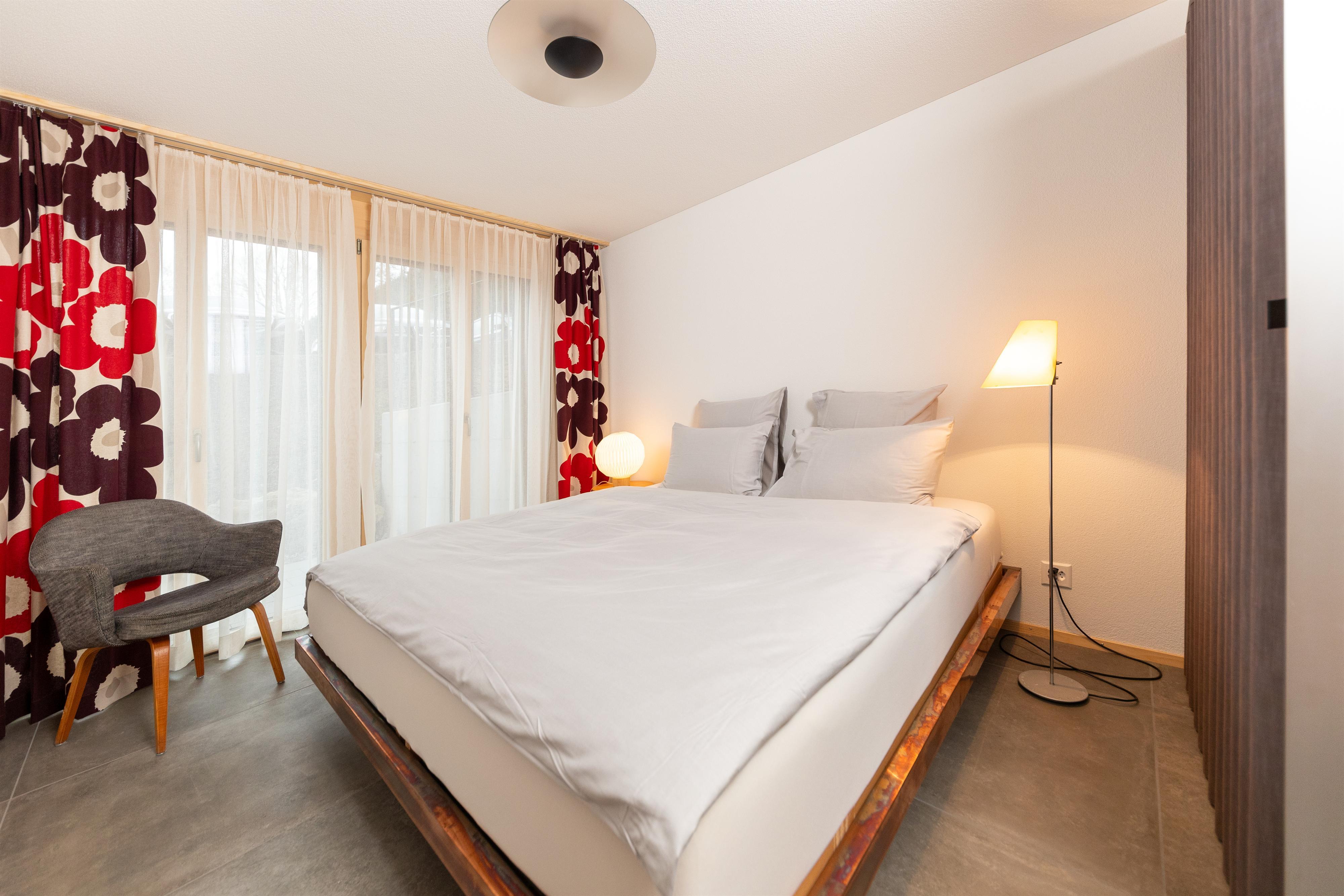 Die Wohnung ist im Design des Hotels Bellevue eingerichtet und verfügt über zwei Schlafzimmer mit je zwei Doppelbetten, einen grossen Wohnbereich mit Küche und zwei Badezimmer. Im Wohnzimmer ist ein fünftes Bett als Tagesbett vorhanden.