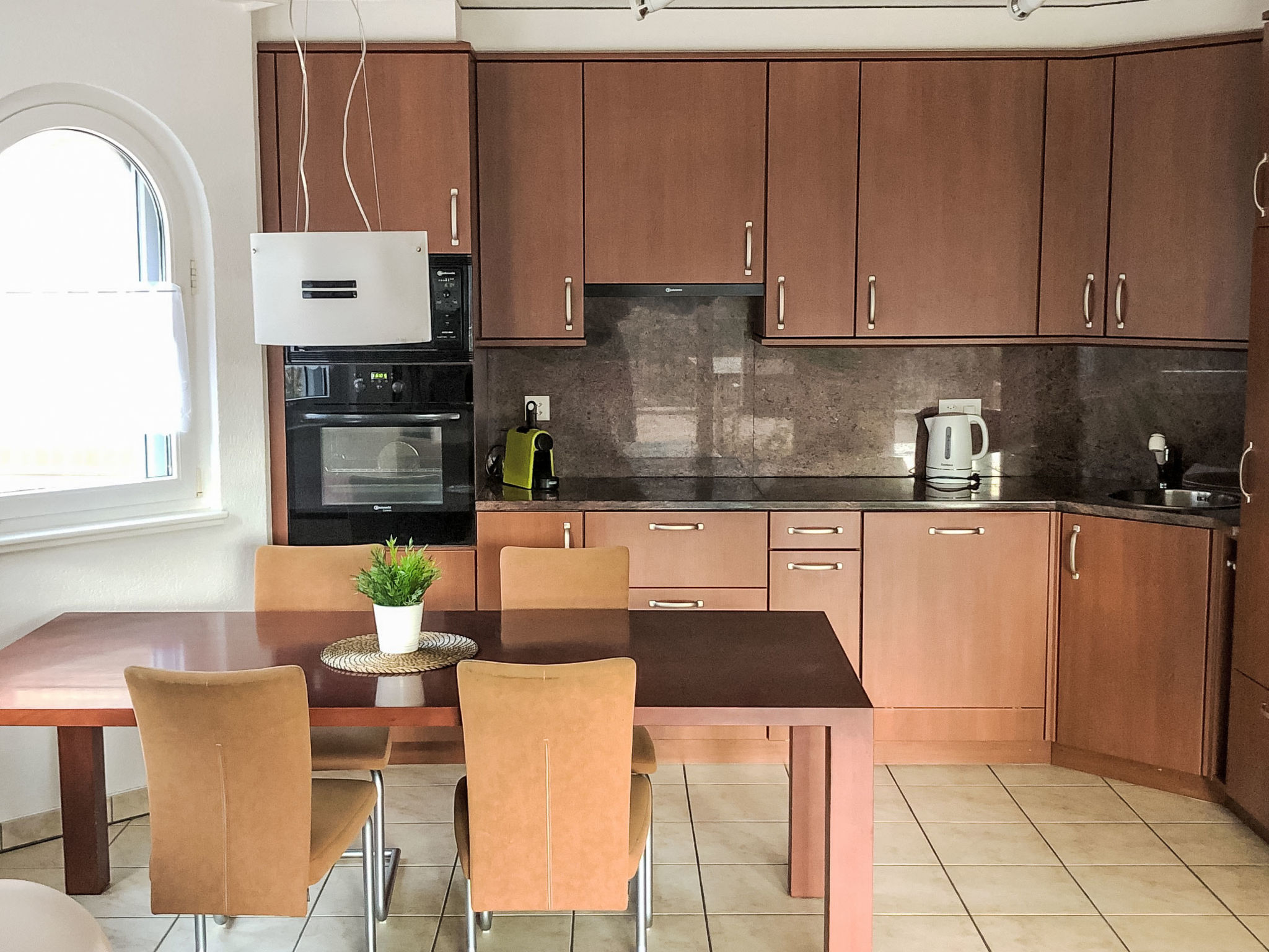 3-Zimmer-Wohnung 90 m2, im Erdgeschoss. Gemütlich eingerichtet: Wohn-/Esszimmer mit Kabel-TV (Flachbildschirm), Radio und DVD. Ausgang zur Terrasse. 2 Doppelzimmer, jedes Zimmer mit 2 Betten. Offene Küche (Backofen, Geschirrspüler, 4 Glaskeramikplatten, Mikrowelle, Tiefkühler). Dusche/WC, sep. WC. Grosse Terrasse, Südlage. Terrassenmöbel. Schöne Sicht auf die Berge und die Landschaft. Zur Verfügung: Internet (WLAN, gratis). Bitte beachten: Nichtraucher-Unterkunft. Maximal 1 Haustier/Hund erlaubt.
