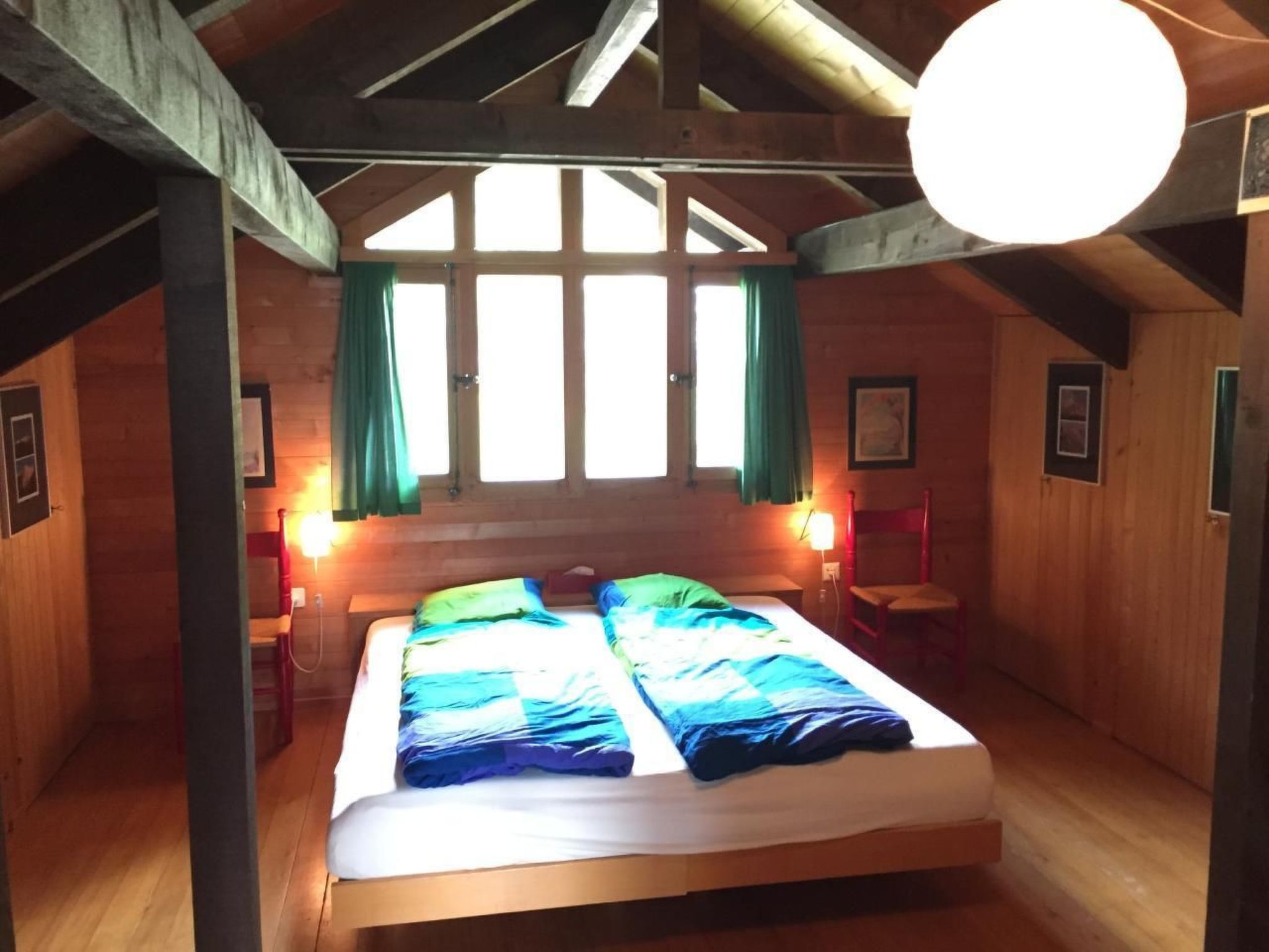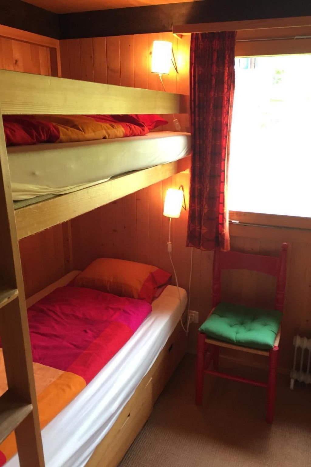 5-1/2-Zimmer Einzelchalet, 110m2, an sonniger, ruhiger Lage mit wunderbarer Aussicht. Grosszügiger Wohnbereich mit Cheminée und offener Galerie. 1 Doppelzimmer, 3 Zimmer mit Etagenbetten, wovon die 3 oberen Betten nur für Jugendlich und sportliche Erwachsene geeignet sind, Zusatz- und Kinderbett sind vorhanden. Grosse Sonnenterrasse, 30m2. Küche, Bad/WC, Kabel-TV, Radio, Telefon. Zufahrt mit Parkplatz. Bushaltestelle und Skischulgelände zu Fuss sehr gut erreichbar.