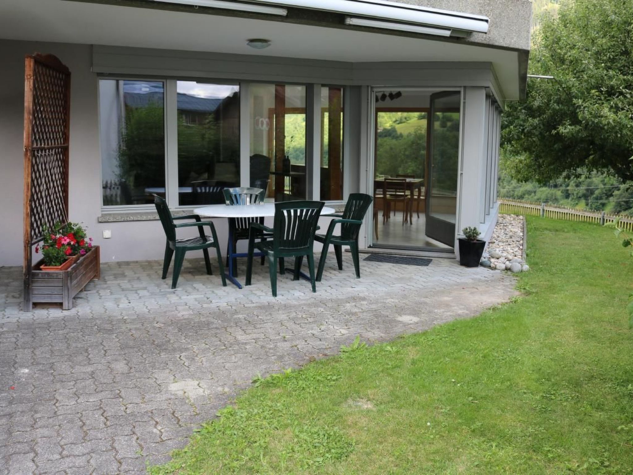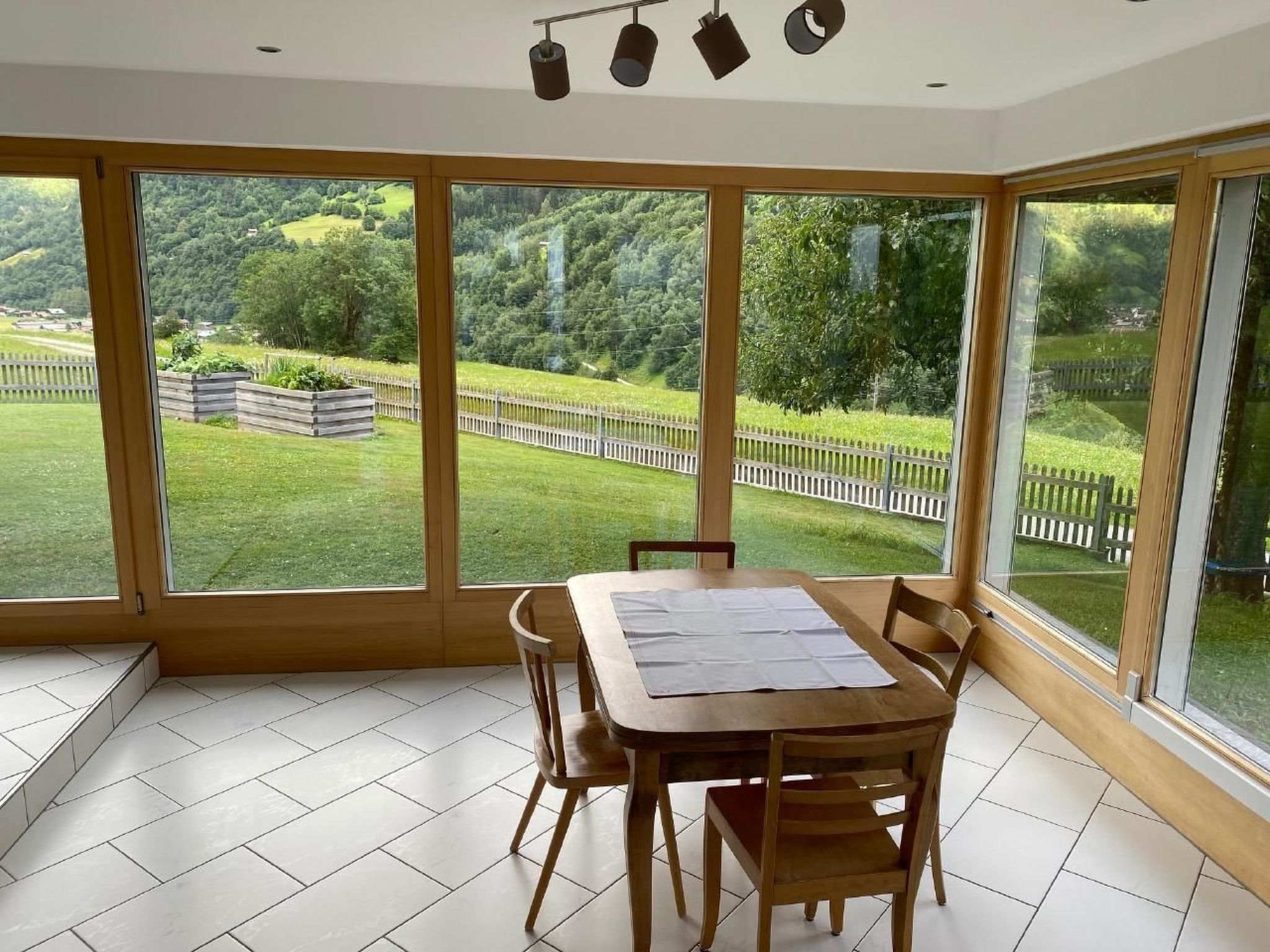 Grosser Essplatz mit Blick in den Garten.