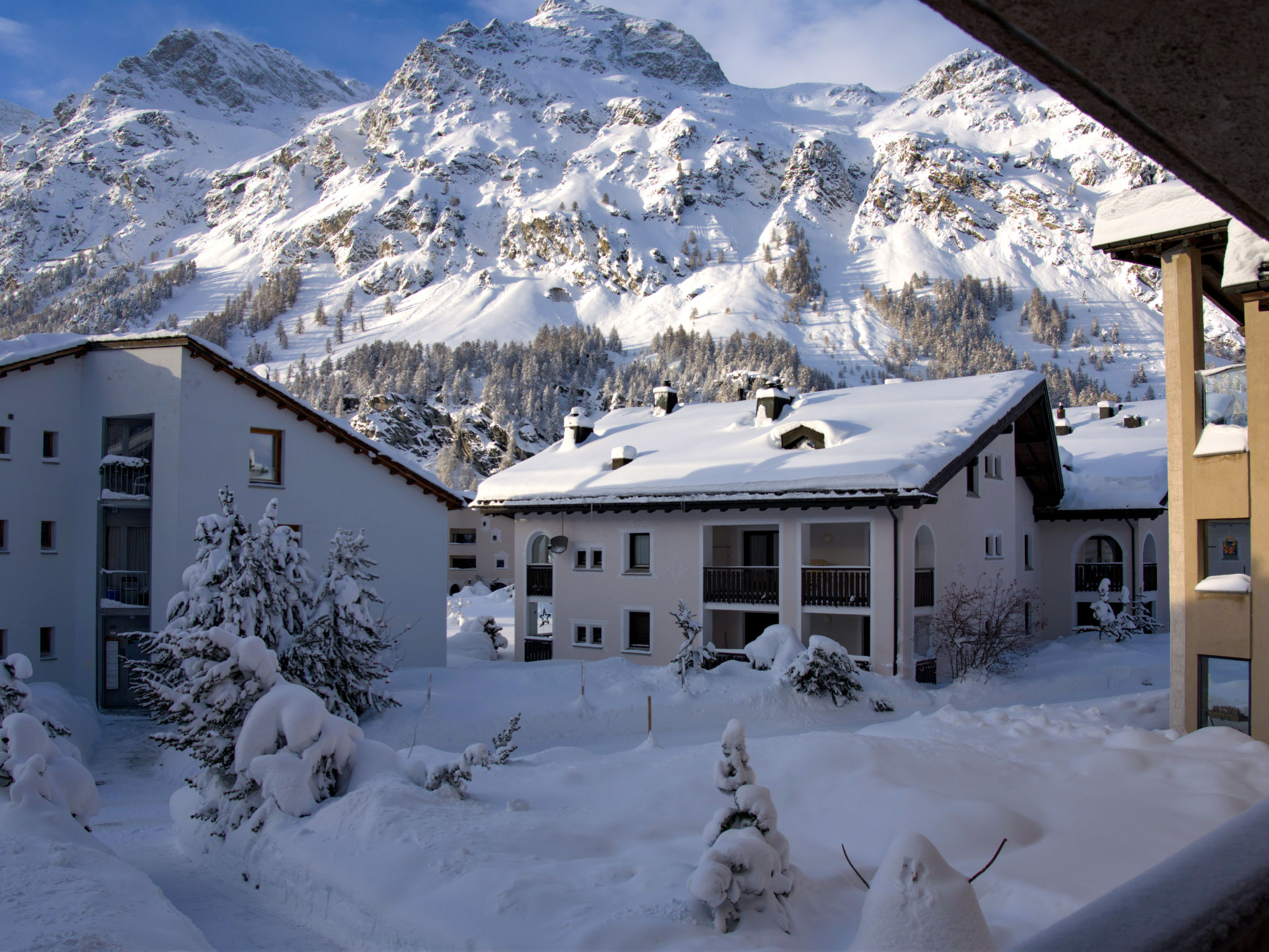 Sils: Schönes, gemütliches Mehrfamilienhaus "Chesa Ginellas", auf 3 Stockwerken. Am Ortsrand, in einem Wohnquartier, 900 m vom Skigebiet. Im Hause: Skiraum, Zentralheizung, Waschmaschine, Wäschetrockner (zur Mitbenutzung, extra). Gemeinschaftsgarage. Lebensmittelgeschäft 100 m, Restaurant 500 m, Café, Bushaltestelle "Seglias" 300 m, Hallenbad 1 km, 1.5 km. Golfplatz (18 Loch) 17 km, Surfschule 7 km, Tennis 1.2 km, Minigolf 1.2 km, Reitstall 9 km, Radweg 300 m, Skilift, Skipisten 900 m, Skiverleih, Skibushaltestelle, Skischule, Kinderskischule 800 m, Schlittelbahn 1.2 km, Langlaufloipe 100 m, Eisfeld 700 m, Kinderspielplatz 700 m. Nahe gelegene Sehenswürdigkeiten: Nietsche Haus 700 m, Robbi Museum 1 km. Bekannte Skigebiete sind gut erreichbar: Corvatsch-Furtschellas 900 m. Bekannte Seen in der Umgebung sind gut erreichbar: Silser See 1.5 km, Silvaplana See 1.5 km. Wandergebiete: Val Fex & Furtschellas, Via Engadina. Objekt geeignet für 2 Erwachsene + 2 Kinder.