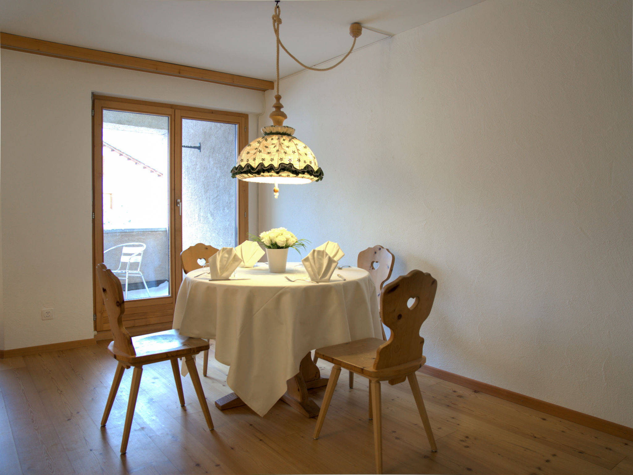 "Chesa Ginellas", 3-Zimmer-Wohnung 74 m2 im 1. Stock. Hell, teilweise renoviert im Jahre 2020, komfortabel und gemütlich eingerichtet: offenes Wohn-/Esszimmer mit Esstisch und TV (Flachbildschirm). Ausgang zum Balkon. 1 Doppelzimmer mit 1 Doppelbett (2 x 90 cm, Länge 200 cm). 1 Zimmer mit 2 Betten (90 cm, Länge 200 cm). Offene Küche (Backofen, Geschirrspüler, 4 Glaskeramikplatten, Toaster, Wasserkocher, Tiefkühler, elektrische Kaffeemaschine, Kapseln für die Kaffeemaschine (Nespresso) extra, Racletteofen, Fondue Set (Käse)) mit Durchreiche. Bad/WC, sep. WC. Heizung. Parkettboden. Balkonmöbel. Schöne Sicht auf die Berge. Zur Verfügung: Bügeleisen, Haartrockner. Internet (Wireless LAN, gratis). Garage Nr. 523 (1 Auto) in 200 m, Höhe 225 cm, Breite 210 cm. Bitte beachten: geeignet für Familien. Nichtraucher-Unterkunft, Nichtraucher-Haus.