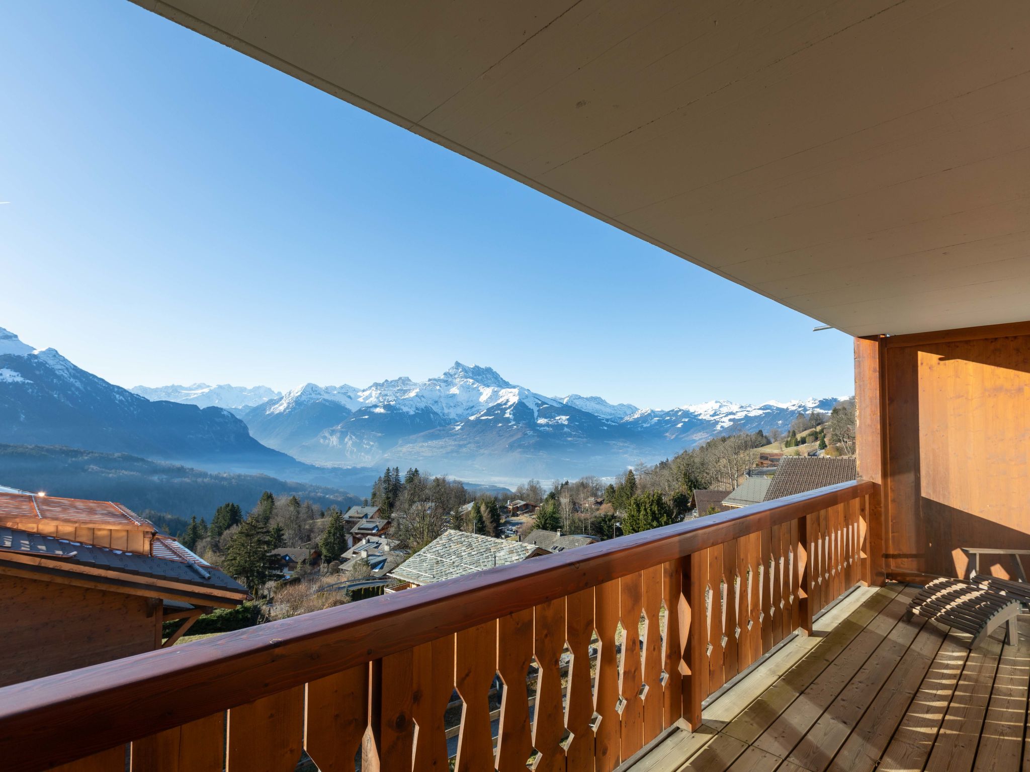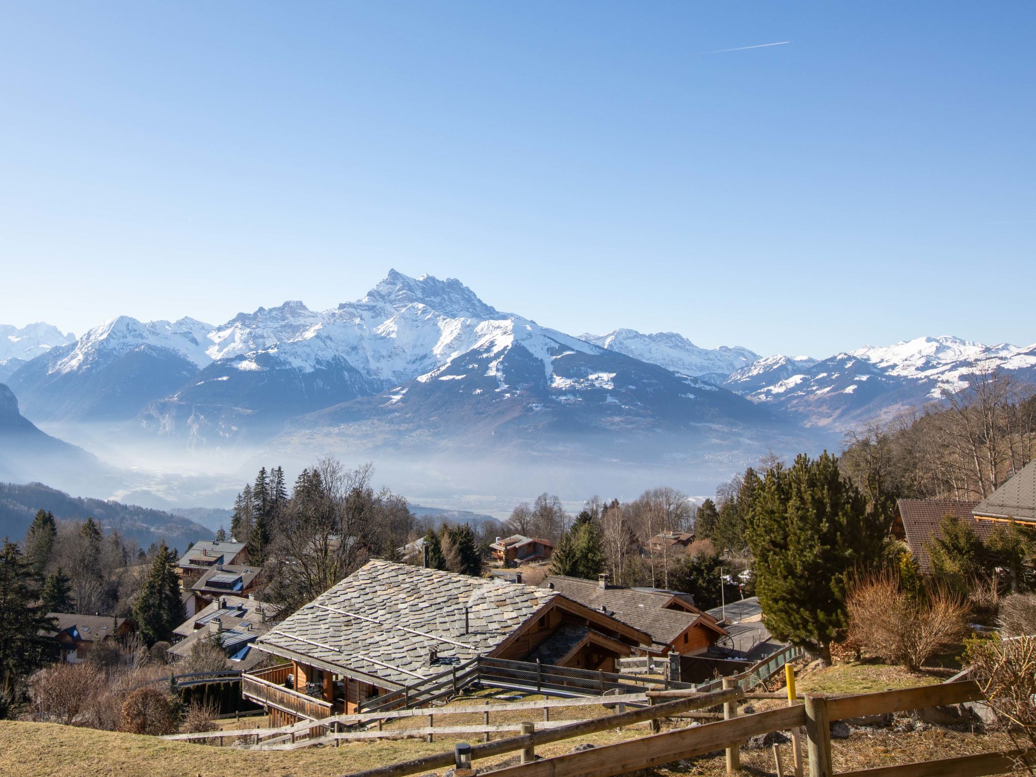 Chalet "Matin Calme", auf 4 Stockwerken, umgeben von Bäumen und Wiesen. Am Ortsrand, 600 m vom Zentrum von Chesières, ruhige Lage am Hang, in einer Sackgasse, im Grünen, Richtung Südwesten. Zur Alleinbenutzung: Garten mit Rasen. Im Hause: Fahrstuhl, Skiraum, Zentralheizung. Zufahrt bis zum Haus. Im Winter bitte Schneeketten mitbringen, im Winter 4x4 empfohlen. Einkaufsgeschäft 1.6 km, Lebensmittelgeschäft 500 m, Restaurant, Café, Bushaltestelle 300 m, Bahnstation "Villars" 2 km, Thermalbad "Lavey-les-Bains" 19 km. Sporthafen 25 km, Golfplatz (18 Loch) 8 km, Tennishalle 2.7 km, Sportzentrum 2.7 km, Bergeisenbahn 2 km, Skilift 2.6 km, Gondelbahn 1.7 km, Skibushaltestelle 300 m, Skischule 1.9 km, Kinderskischule 2.7 km, Eisfeld 1.6 km, Kinderspielplatz 600 m. Der gratis Skibus fährt zum Skigebiet Villars.
