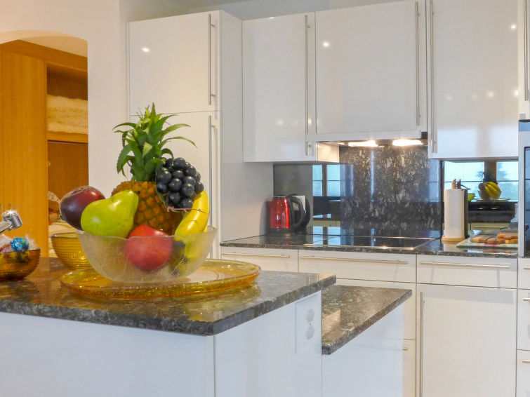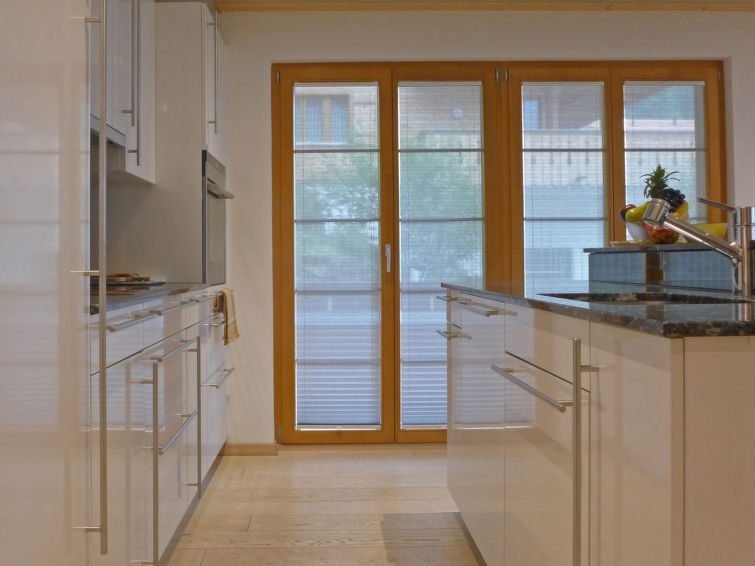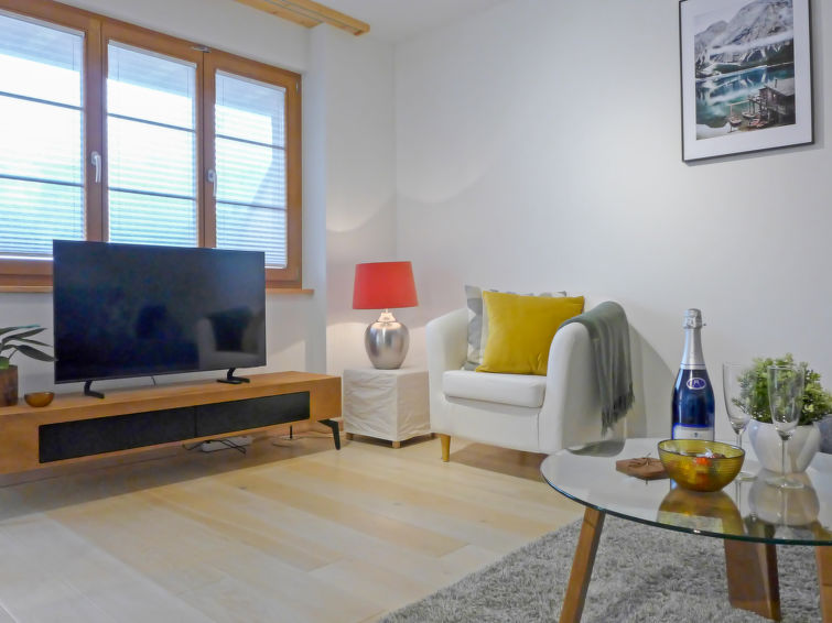"Panoramapark Soleil Haus D Apt 3", 2-Zimmer-Wohnung 64 m2 im 1. Stock. Geräumig und hell, geschmackvoll und gemütlich eingerichtet: Wohn-/Esszimmer mit 1 Doppeldiwanbett (140 cm, Länge 180 cm), Kabel-TV. Ausgang zum Balkon. 1 Zimmer mit 2 Betten (90 cm, Länge 200 cm). Grosse, offene Küche (Backofen, Geschirrspüler, 4 Glaskeramikplatten, Toaster, Wasserkocher, elektrische Kaffeemaschine, Kapseln für die Kaffeemaschine (Nespresso) extra, Racletteofen, Fondue Set (Käse)) mit Esstisch. Sep. WC, Bad/Dusche/WC mit Eckbadewanne. Holzdielenboden. Grosser Balkon 31 m2, Südlage und Westlage. Balkonmöbel. Herrliche Sicht auf die Berge. Zur Verfügung: Waschmaschine, Wäschetrockner, Bügeleisen, Haartrockner. Internet (WLAN, gratis). Bitte beachten: geeignet für Familien. Nichtraucher-Unterkunft.