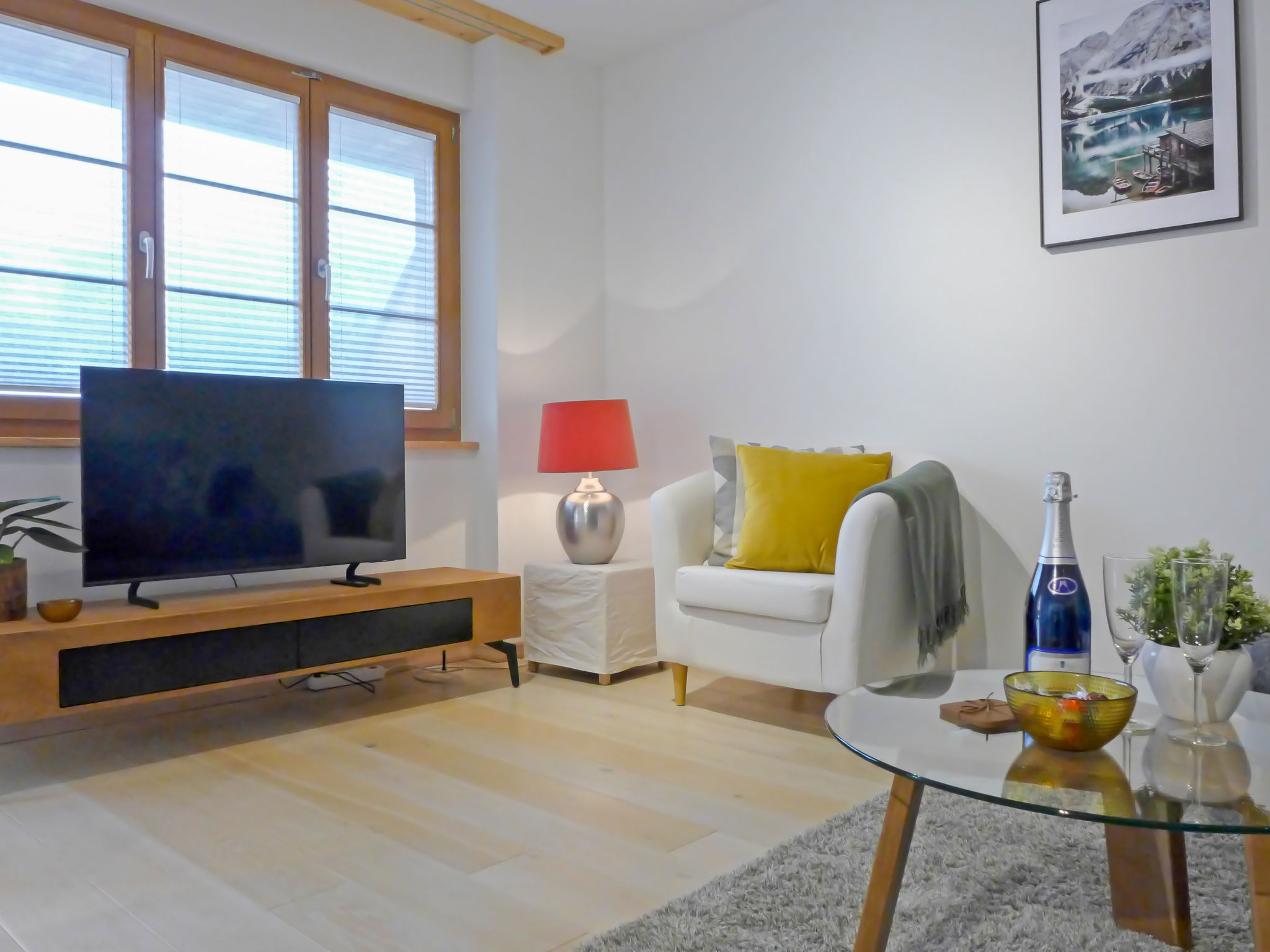 "Panoramapark Soleil Haus D Apt 3", 2-Zimmer-Wohnung 64 m2 im 1. Stock. Objekt geeignet für 2 Erwachsene + 2 Kinder. Geräumig und hell, geschmackvoll und gemütlich eingerichtet: Wohn-/Esszimmer mit 1 Doppeldiwanbett (140 cm, Länge 180 cm), Kabel-TV. Ausgang zum Balkon. 1 Zimmer mit 2 Betten (90 cm, Länge 200 cm). Grosse, offene Küche (Backofen, Geschirrspüler, 4 Glaskeramikplatten, Toaster, Wasserkocher, elektrische Kaffeemaschine, Kapseln für die Kaffeemaschine (Nespresso) extra, Racletteofen, Fondue Set (Käse)) mit Esstisch. Sep. WC, Bad/Dusche/WC mit Eckbadewanne. Holzdielenboden. Grosser Balkon 31 m2, Südlage und Westlage. Balkonmöbel. Herrliche Sicht auf die Berge. Zur Verfügung: Waschmaschine, Wäschetrockner, Bügeleisen, Haartrockner. Internet (WLAN, gratis). Bitte beachten: geeignet für Familien. Nichtraucher-Unterkunft.