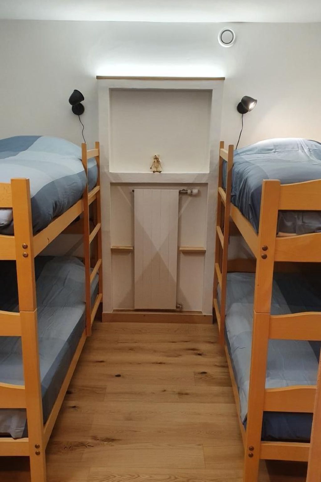 - Schlafzimmer 3: Etagenbett 2×2 (4 Einzelbetten) 90×200, kein Fenster (automatische Belüftung).