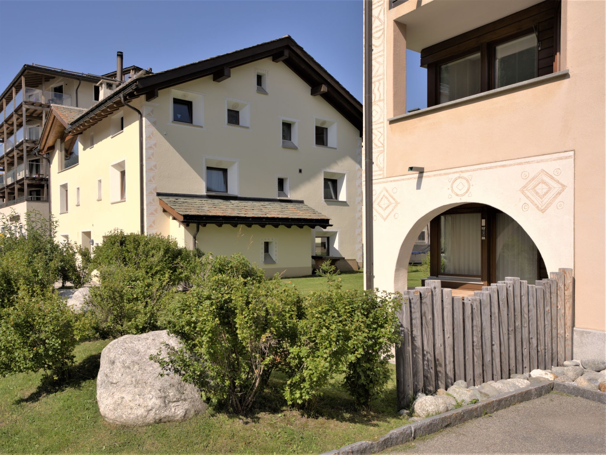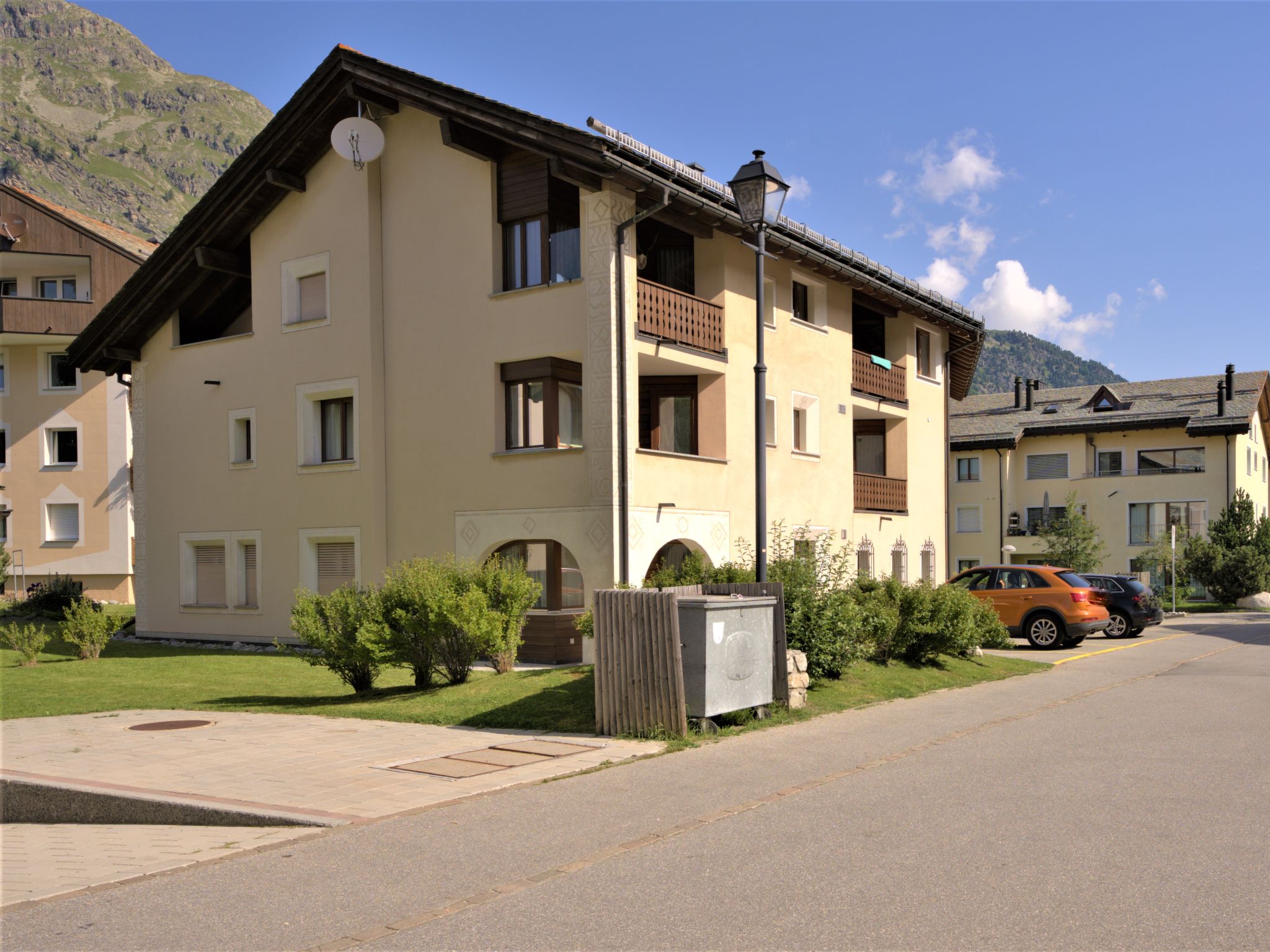Sils: Komfortables Mehrfamilienhaus "Chesa Auricula", auf 3 Stockwerken. Zentrale Lage in einem Wohnquartier, 600 m vom Skigebiet, in einer Sackgasse. Zur Mitbenutzung: Wiese. Im Hause: Zentralheizung, Waschmaschine (zur Mitbenutzung, extra), Trockenraum. Gemeinschaftsgarage beim Haus. Lebensmittelgeschäft 350 m, Supermarkt 10 km, Restaurant 50 m, Bushaltestelle 270 m, Bahnstation 11 km, Hallenbad 10 km. Tennis 450 m, Reitstall 16 km, Luftseilbahn, Skilift 600 m, Skischule 450 m, Schlittelbahn 16 km, Langlaufloipe 100 m, Eisfeld, Kinderspielplatz 450 m. Bekannte Skigebiete sind gut erreichbar: Corvatsch - Furtschellas 600 m, Corviglia 11 km. Bekannte Seen in der Umgebung sind gut erreichbar: Silsersee 1.4 km, St. Moritz See 10 km, Silvaplanasee 1 km. Wandergebiete: Furtschellas, Via Engadina. Bitte beachten: Fahrzeug empfohlen. Be- und Entladen am Ferienhaus möglich. Die Nachbarschaft ist sehr lärmempfindlich. Ruhe und gutes Benehmen wird erwartet.