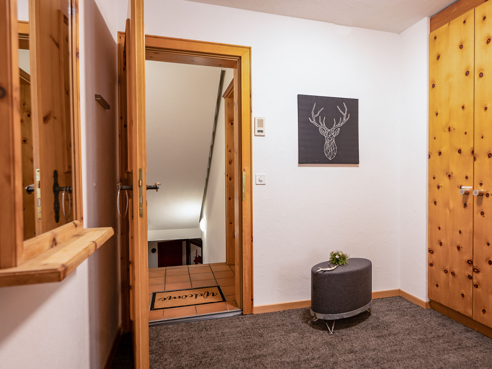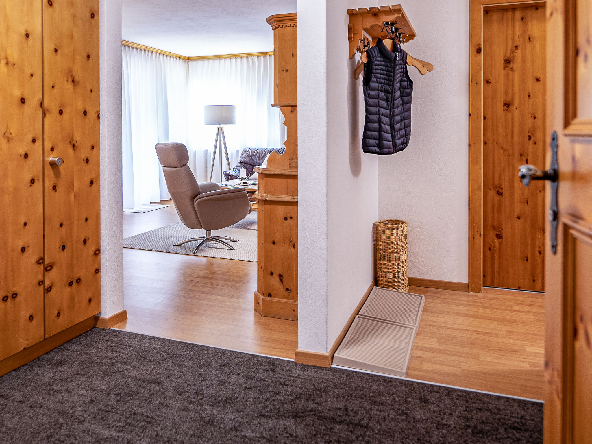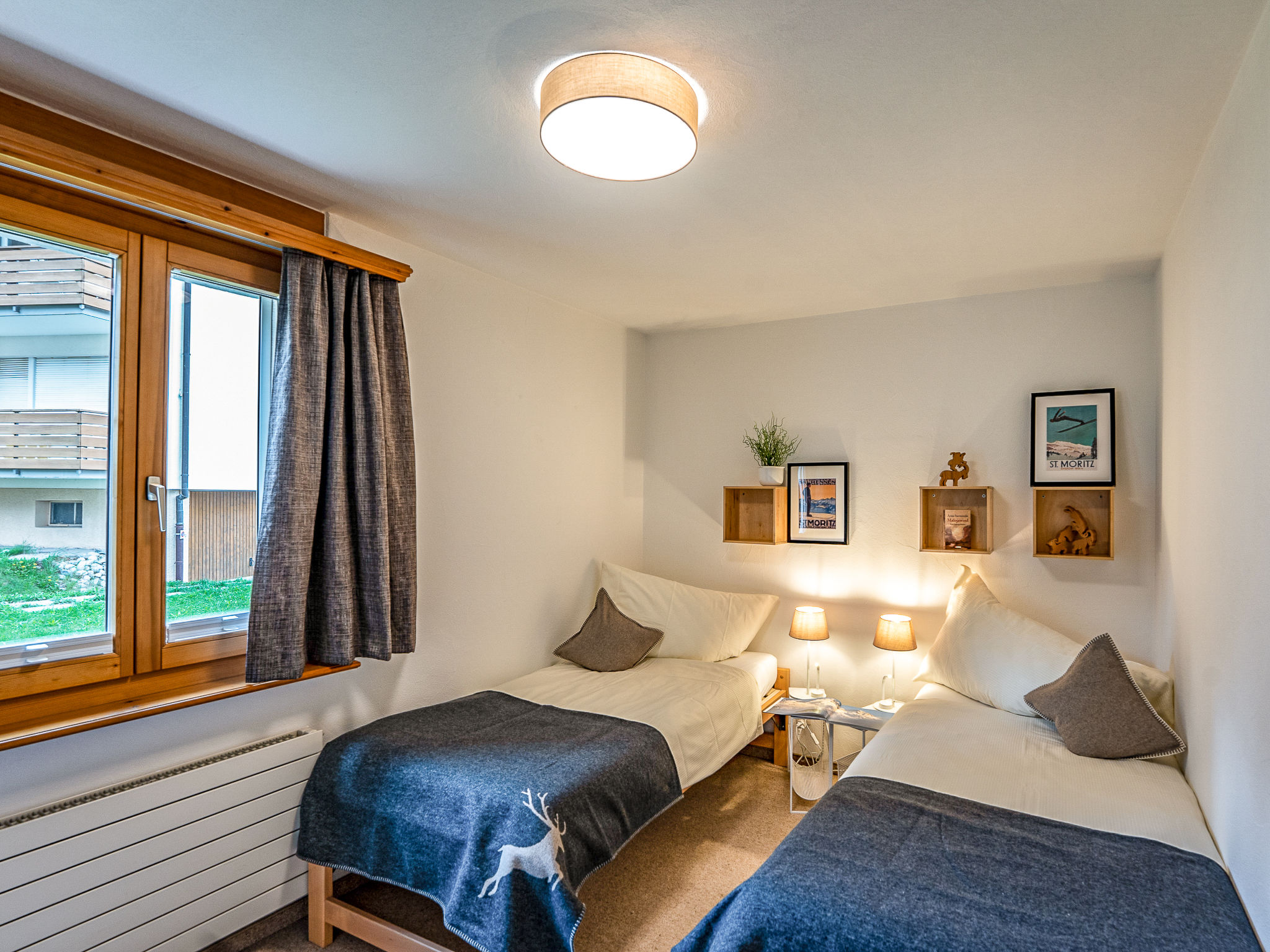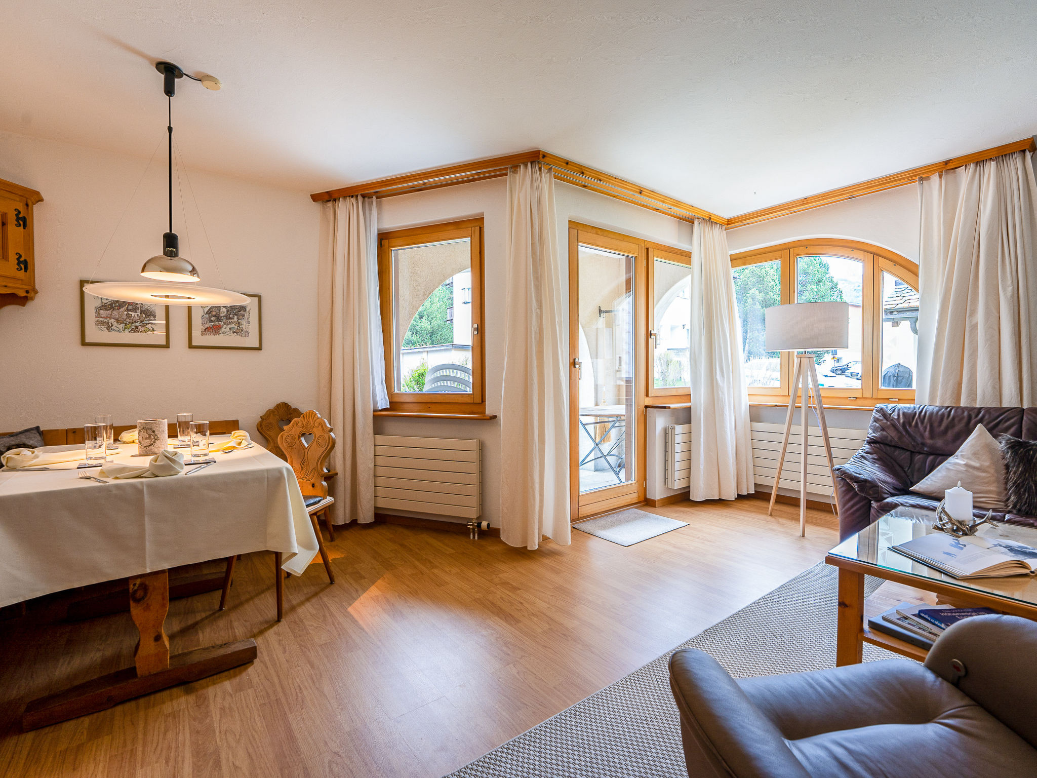 "Chesa Auricula 1.1", 3-Zimmer-Wohnung 92 m2, im Erdgeschoss. Geräumig und hell, gemütlich eingerichtet: Wohn-/Esszimmer mit TV (Flachbildschirm). Ausgang zur Terrasse. 1 Zimmer mit 2 Betten (90 cm, Länge 200 cm). 1 Doppelzimmer mit 1 Doppelbett (2 x 90 cm, Länge 200 cm). Küche (Backofen, Geschirrspüler, 4 Glaskeramikplatten, Toaster, Wasserkocher, Mikrowelle, Tiefkühler, elektrische Kaffeemaschine, Kapseln für die Kaffeemaschine (Nespresso) extra, Fondue Set (Käse)). Bad, Dusche/WC. Heizung. Gartensitzplatz 10 m2. Terrassenmöbel. Seitliche Sicht auf die Berge und die Ortschaft. Zur Verfügung: Bügeleisen, Haartrockner. Internet (WLAN, gratis). Garage Nr. 11 (1 Auto), Höhe 205 cm, Breite 220 cm. Bitte beachten: geeignet für Familien. Nichtraucher-Unterkunft, Nichtraucher-Haus. Maximal 1 Haustier/Hund erlaubt.