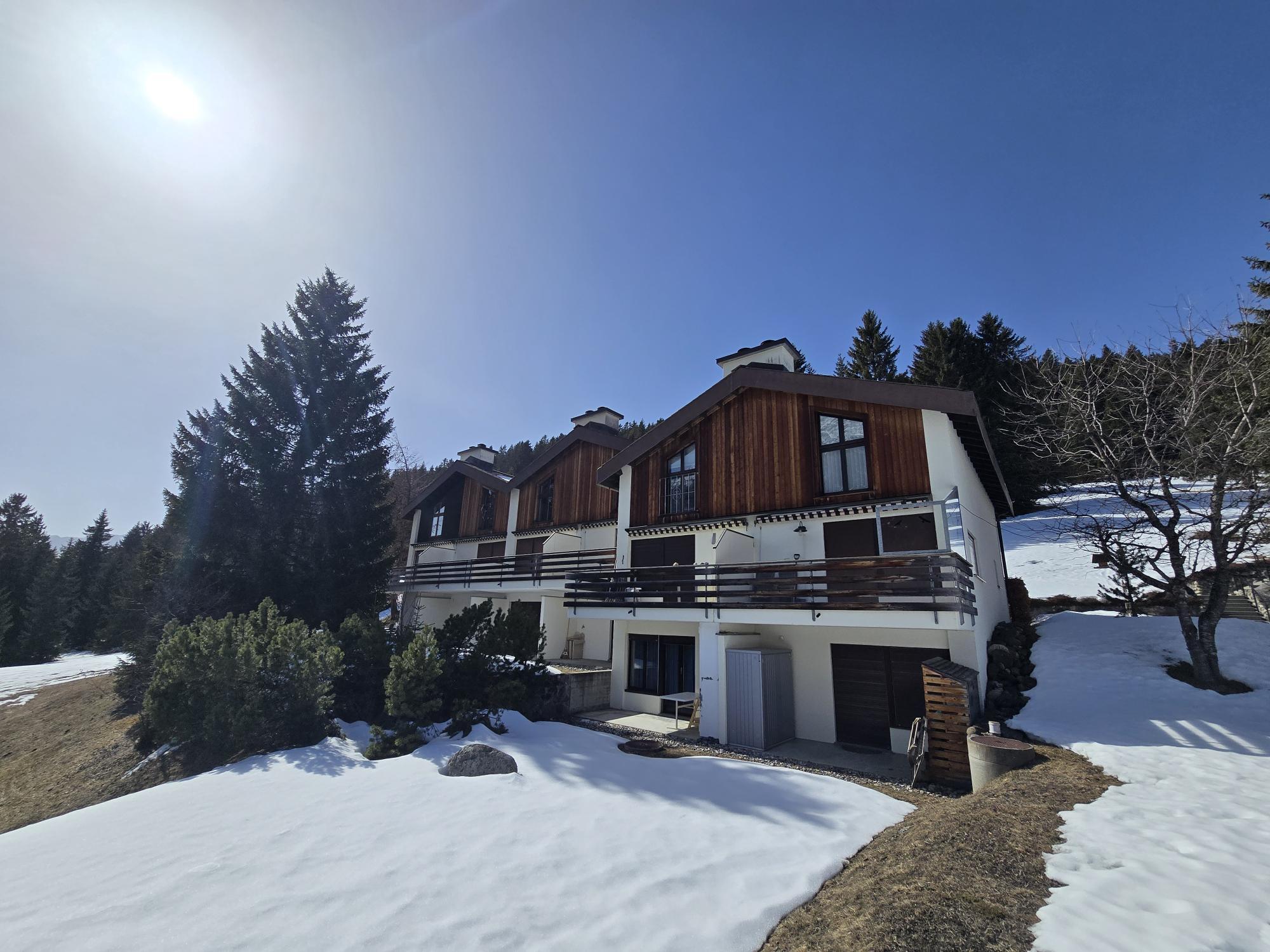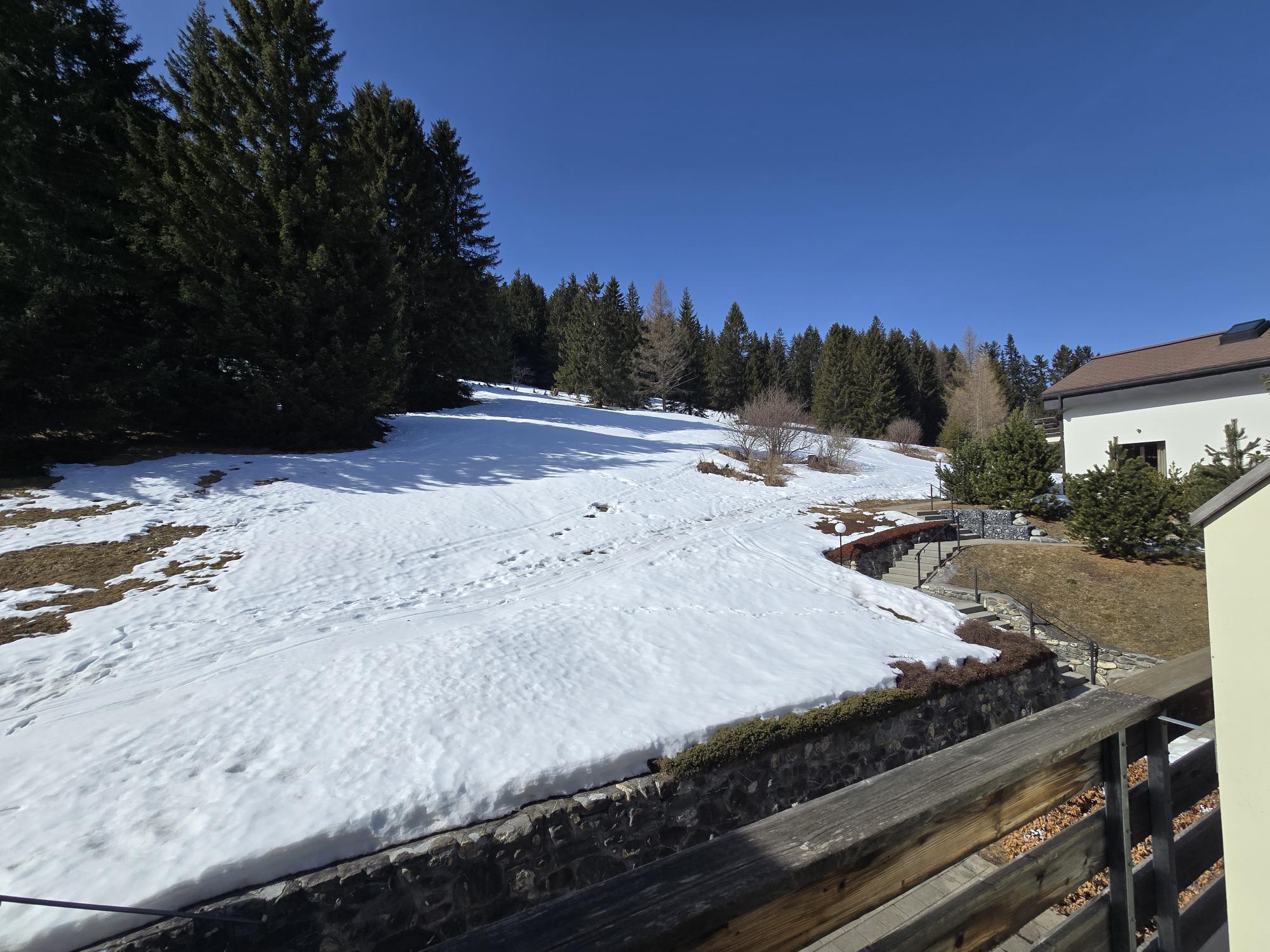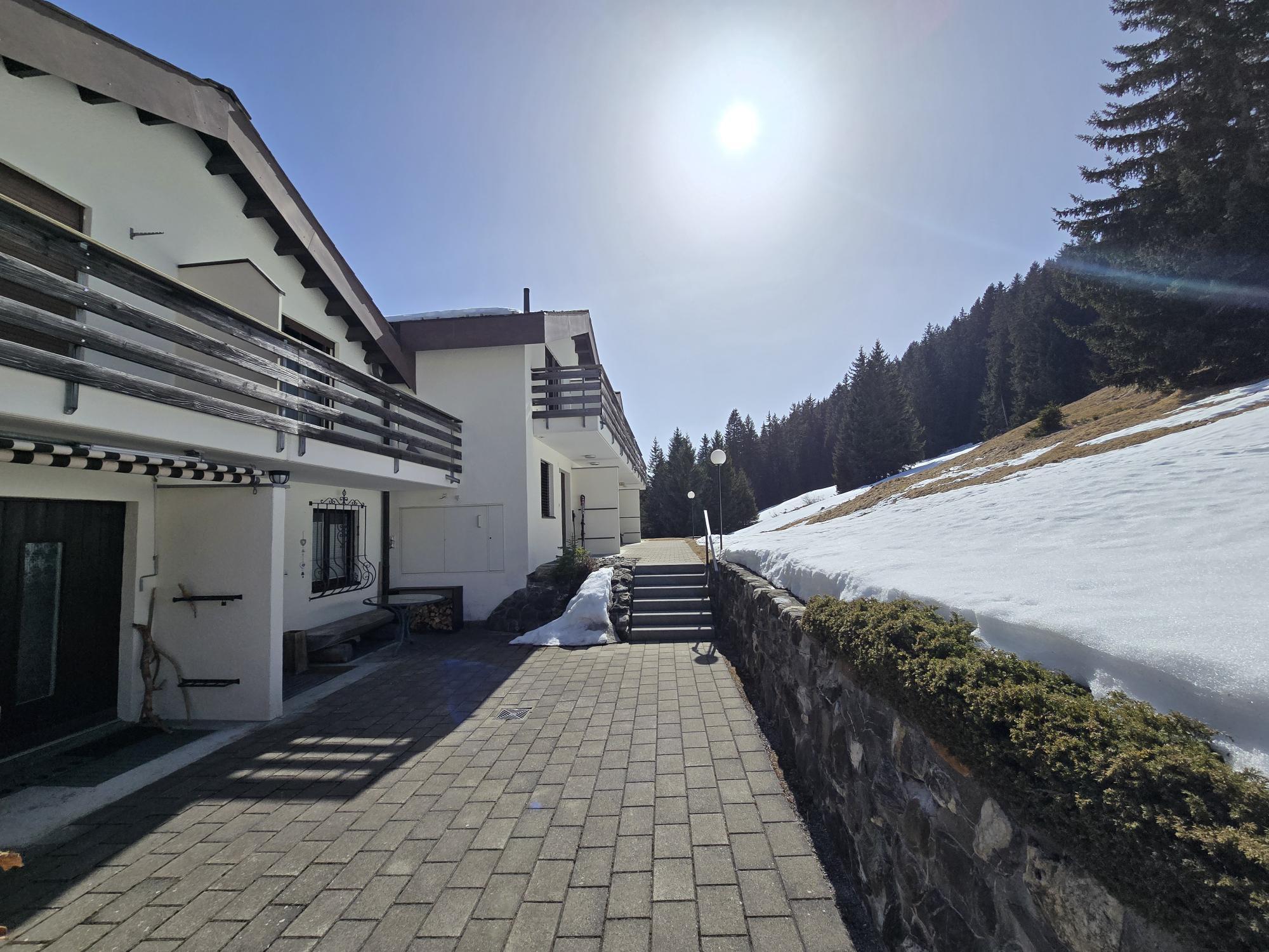 Casa La Schmetta 54 liegt an ruhiger und sonniger Lage an der südlichen Dorfgrenze, eingebettet in ein idyllisches Waldstück, mit unverbauter Sicht auf die Alpen und nur wenige Gehminuten vom Dorfzentrum entfernt. Die Lage bietet höchste Privatsphäre und garantiert Erholung inmitten der Natur. Der Crestas Skilift liegt gleich neben der Überbauung und die Rückfahrt mit den Skis ist bis vor die Haustür möglich – kein Autogebrauch nötig. Die Unterkunft ist zudem ein perfekter Ausgangspunkt für Skiaktivitäten, Bergwanderungen und Velotouren/Mountain biking. In unmittelbarer Nähe befinden sich Langlaufloipen, Wanderwege und ein Golfplatz. Casa La Schmetta 54 ist ein komfortables, familienfreundliches Haus (separate Haushälfte) auf 3 Etagen mit Sonnenterrasse, gedecktem Gartensitzplatz und einem Balkon auf der Westseite. Ein Kinderspielplatz befindet sich in der Überbauung. Haustiere sind willkommen.