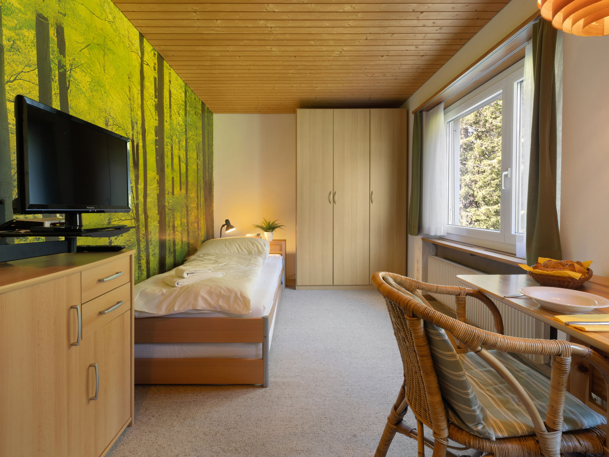 "Promenade Apt 414", 1-Zimmer-Wohnung 16 m2 im 4. Stock. Zweckmässig und gemütlich eingerichtet: Wohn-/Esszimmer mit 1 Bett, Esstisch und Sat-TV (Flachbildschirm). Kochnische (2 Kochplatten). Dusche/WC. Zur Verfügung: Internet (WLAN, gratis). Bitte beachten: Nichtraucher-Unterkunft.