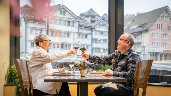 Das traditionelle und herzliche Hotel Restaurant Krone liegt zentral in Urnäsch, nur wenige Schritte vom Bahnhof der Appenzeller Bahnen entfernt – der ideale Ausgangspunkt für Ausflüge ins wunderschöne Appenzellerland. Ob Wandern, Skifahren oder gelebtes Brauchtum: Hier beginnen Entdeckungen direkt vor der Tür. Besonders beliebt ist der Säntis, der majestätisch über der Region thront und in kurzer Zeit erreichbar ist – ein Paradies für Naturliebhaber und Gipfelstürmer. Gleich nebenan lädt der liebevoll gestaltete Dorfplatz von Urnäsch mit seinem historischen Charme zum Verweilen ein. Nach einem erlebnisreichen Tag geniessen Sie italienische Spezialitäten in der hauseigenen Pizzeria, entspannen auf der sonnigen Terrasse oder lassen den Abend in gemütlicher Atmosphäre ausklingen. Die Krone Urnäsch – authentisch, einladend und perfekt für Ihre Auszeit in den Bergen