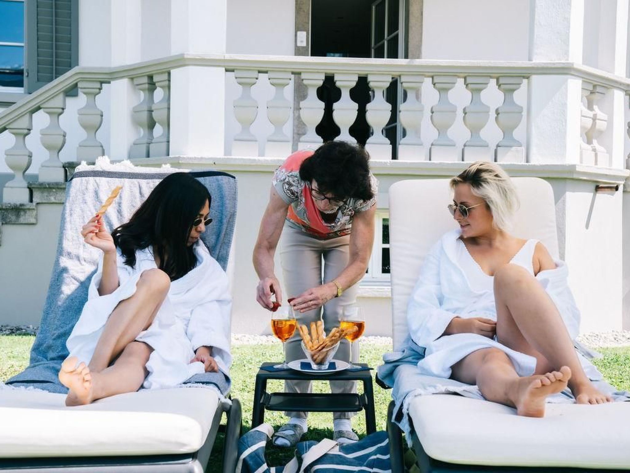 Im Innenbereich erwartet die Gäste eine Vielzahl an Annehmlichkeiten, die jedermanns Aufenthalt so angenehm wie möglich machen sollen. Es gibt eine private Bibliothek mit Balkonzugang, einen Frühstücks- und Aufenthaltsraum mit direktem Zugang zum Garten. Für Unterhaltung ist ebenfalls gesorgt: Ein TV-Raum und eine Hausbar, inklusive einer Auswahl an gekühlten Getränken und Snacks, stehen zur Verfügung. Workshops, Seminare und Sitzungen können im kleinen Konferenzraum mit moderner Präsentationstechnik für bis zu 10 Personen durchgeführt werden. Das Wohnzimmer lädt mit einem Esstisch für bis zu 12 Personen und einer gemütlichen Frühstücksecke zum Verweilen ein.