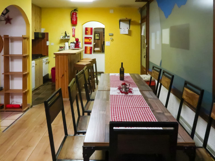 4-Zimmer-Wohnung 80 m2, im ebenerdigen Untergeschoss. Sehr einfach eingerichtet: kleines Esszimmer. Offener kleiner Salon mit Kabel-TV. 1 Zimmer mit 1 franz. Bett (140 cm, Länge 200 cm). 1 Zimmer mit 1 Bett und 1 x 2 Etagenbetten. 1 Zimmer mit 2 Betten mit 1 Bett und 1 franz. Bett (160 cm, Länge 200 cm). Kleine, offene Küche (4 Kochplatten, Backofen, Geschirrspüler, Mikrowelle, Fondue Set (Käse)) mit Bar. Dusche, Dusche/WC, sep. WC. Zur Verfügung: Internet (Wireless LAN). Bitte beachten: Wohnung auf Hofseite. Nichtraucher-Unterkunft. Feuerlöscher. Die Wohnung hat keine Aussicht, Kellerfenster, 2. Wohnzimmer mit DVD ist außerhalb der Wohnung. Privater Skiraum.