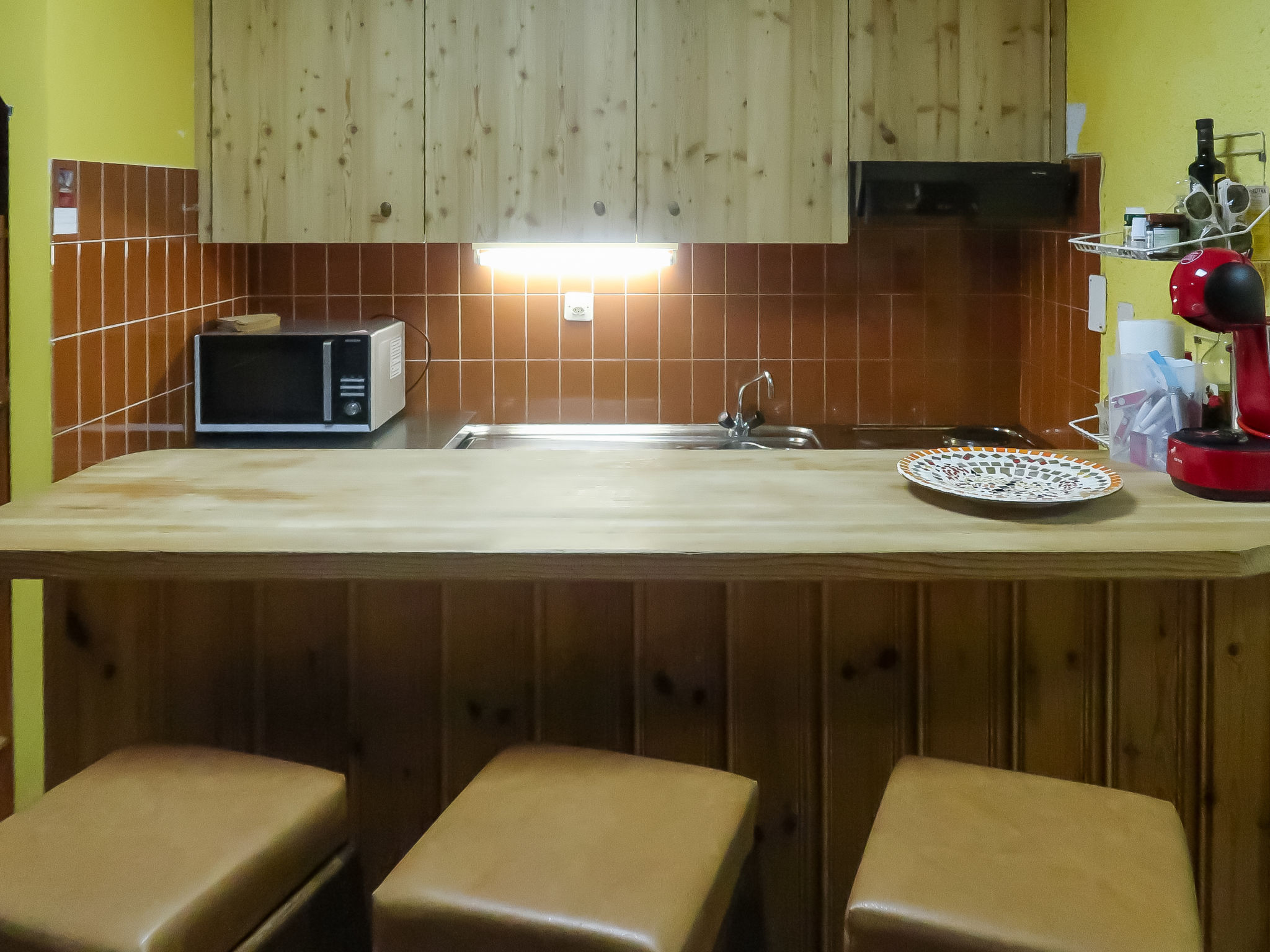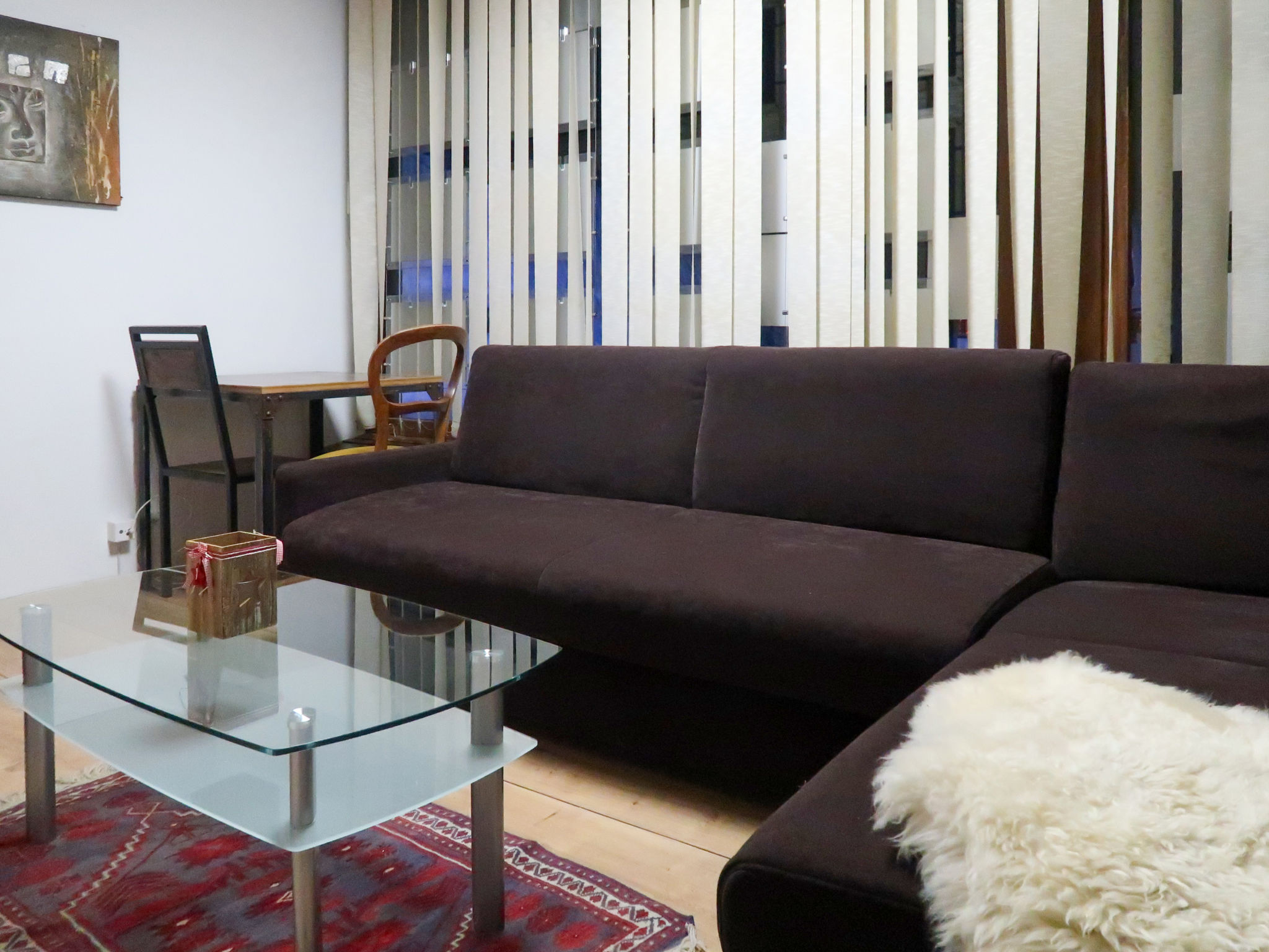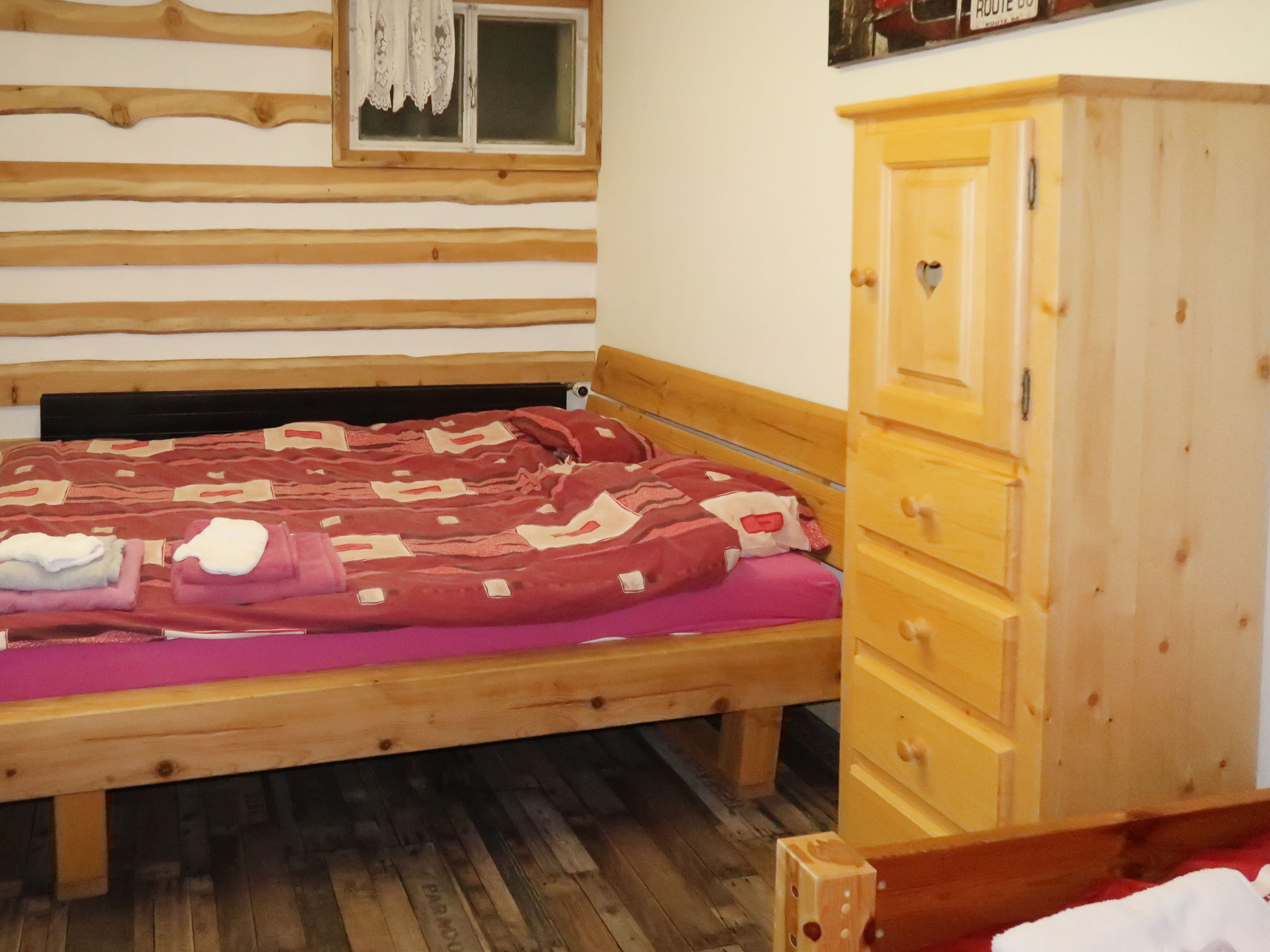 4-Zimmer-Wohnung 80 m2, im ebenerdigen Untergeschoss. Sehr einfach eingerichtet: kleines Esszimmer. Offener kleiner Salon mit Kabel-TV. 1 Zimmer mit 1 franz. Bett (140 cm, Länge 200 cm), Waschbecken. 1 Zimmer mit 1 Bett und 1 x 2 Etagenbetten, Waschbecken. 1 Zimmer mit 2 Betten und Waschbecken mit 1 Bett und 1 franz. Bett (160 cm, Länge 200 cm), Waschbecken. Kleine, offene Küche (4 Kochplatten, Backofen, Geschirrspüler, Mikrowelle, Fondue Set (Käse)) mit Bar. Dusche, Dusche/WC, sep. WC. Zur Verfügung: Internet (WLAN). Bitte beachten: Wohnung auf Hofseite. Nichtraucher-Unterkunft. Feuerlöscher. Die Wohnung hat keine Aussicht, Kellerfenster, 2. Wohnzimmer mit DVD ist außerhalb der Wohnung. Privater Skiraum.