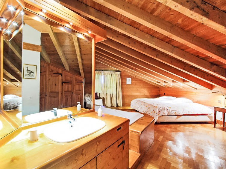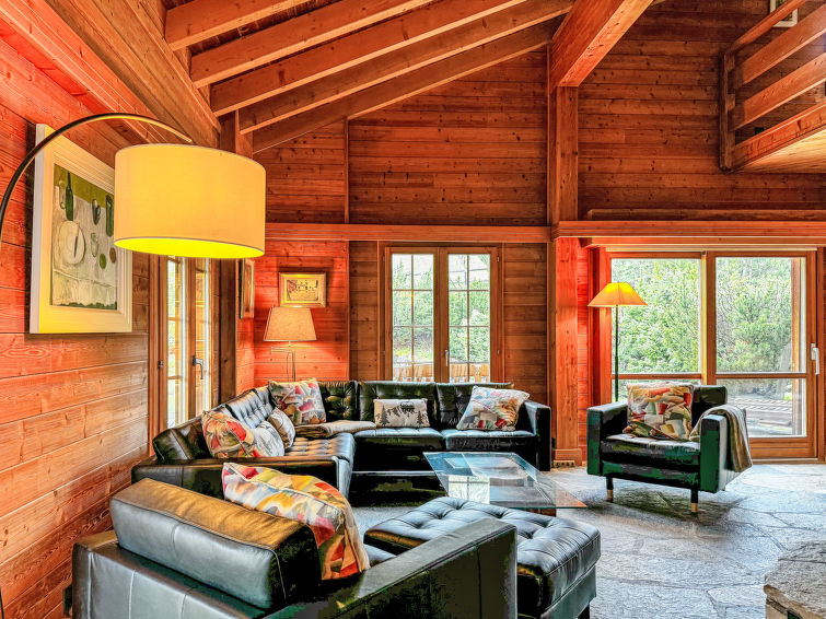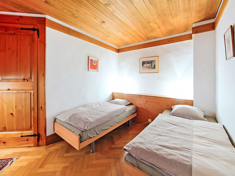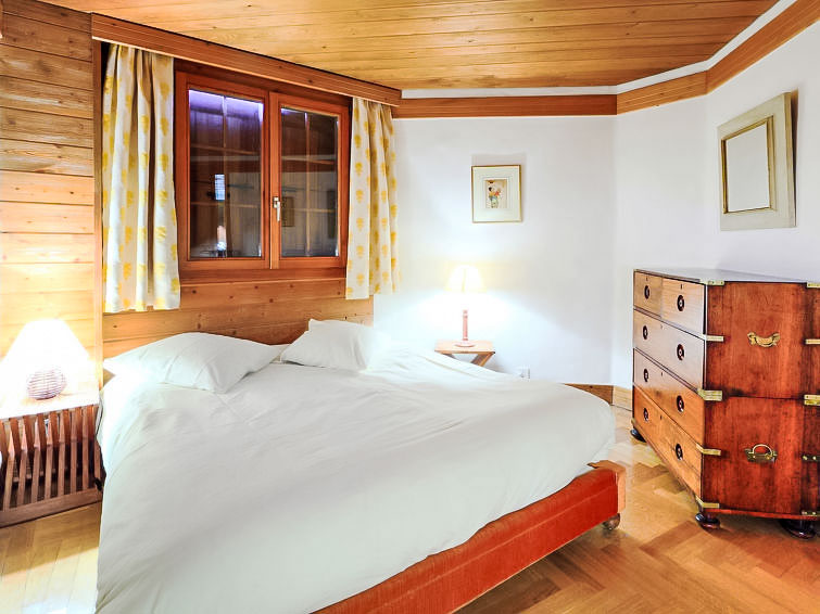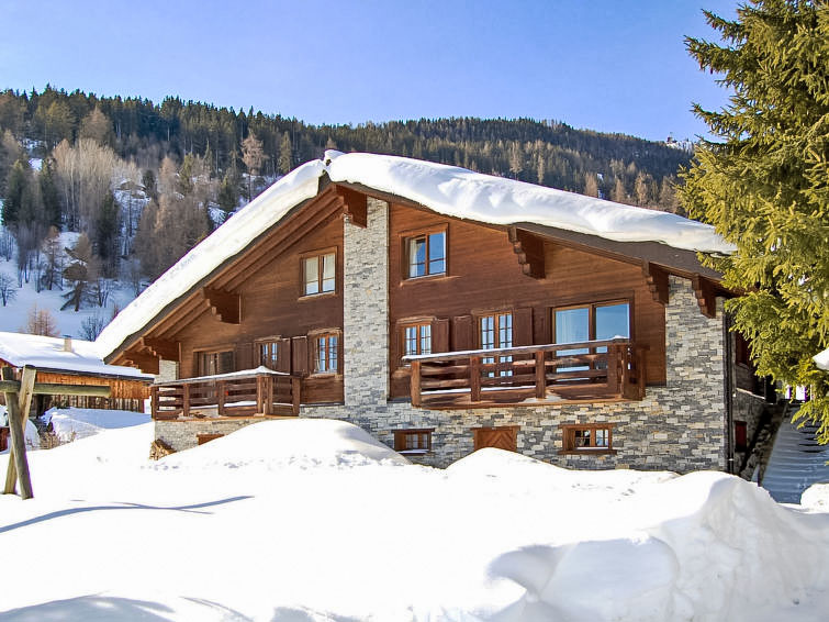 "Les Clèves", 5-Zimmer-Chalet 250 m2 auf 3 Stockwerken. Komfortabel und geschmackvoll eingerichtet: grosses Wohn-/Esszimmer 100 m2 mit offenem Kamin und Essecke. Ausgang zum Garten, zur Terrasse. 1 Zimmer mit 1 franz. Bett (160 cm, Länge 200 cm). Ausgang zum Balkon. 1 Zimmer mit 2 Betten (90 cm, Länge 200 cm). Salon mit Kabel-TV. Offene Küche (Backofen, Geschirrspüler, 4 Induktionskochplatten, Toaster, Wasserkocher, Tiefkühler, elektrische Kaffeemaschine, Kapseln für die Kaffeemaschine (nespresso) extra, Racletteofen, Fondue Set (Käse)). Bad/WC, sep. WC. Bodenheizung. Unteres Geschoss: Eingang. 1 Zimmer mit 1 franz. Bett (160 cm, Länge 190 cm). Bad/Dusche/WC. Obergeschoss: Salon mit Bibliothek. 1 grosses Zimmer mit 1 franz. Bett (200 cm, Länge 200 cm), Bidet, Bad/Dusche/WC und Kabel-TV. Balkon, 2 Terrassen, Garten. Terrassenmöbel, Gartengrill. Sehr schöne Sicht auf die Berge, das Tal und die Skipiste. Zur Verfügung: Waschmaschine, Wäschetrockner, Kinderhochstuhl, Babybett, Haartrockner. Internet (WLAN, gratis). Parkplatz (2 Autos) beim Haus. Bitte beachten: Nichtraucher-Unterkunft.