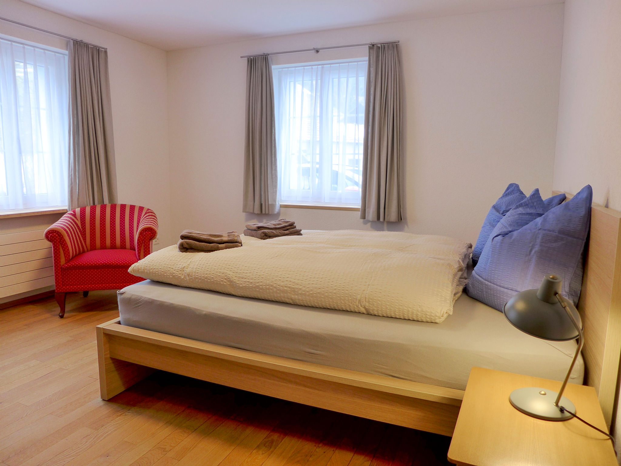 "Matte (Alte Post)", 3-Zimmer-Wohnung 118 m2, im Erdgeschoss. Geräumig und hell, renoviert im Jahre 2019, komfortabel und geschmackvoll eingerichtet: grosses Wohn-/Esszimmer mit Esstisch, Digital-TV, Flachbildschirm, Radio und Stereoanlage. 2 Doppelzimmer, jedes Zimmer mit 1 Doppelbett (160 cm, Länge 200 cm). Grosse, offene Küche (Backofen, Geschirrspüler, 4 Glaskeramikplatten, Toaster, Wasserkocher, Mikrowelle, Tiefkühler, elektrische Kaffeemaschine, Kapseln für die Kaffeemaschine (Nespresso) extra, Racletteofen, Fondue Set (Käse)) mit Esstisch. Ausgang zum Garten. Dusche/WC, sep. WC. Fussbodenheizung. Holzdielenboden. Grosse Terrasse, Südlage, Gartensitzplatz. Herrliche Sicht auf die Berge und die Landschaft. Zur Verfügung: Waschmaschine, Wäschetrockner, Bügeleisen, Kinderhochstuhl, Babybett bis 2 Jahre (extra), Haartrockner. Internet (Wireless LAN, gratis). Parkplatz (2 Autos). Bitte beachten: geeignet für Familien. Nichtraucher-Unterkunft. Rauchmelder, Feuerlöscher. Frühstückskorb mit lokalen Produkten kann zusätzlich gebucht werden.