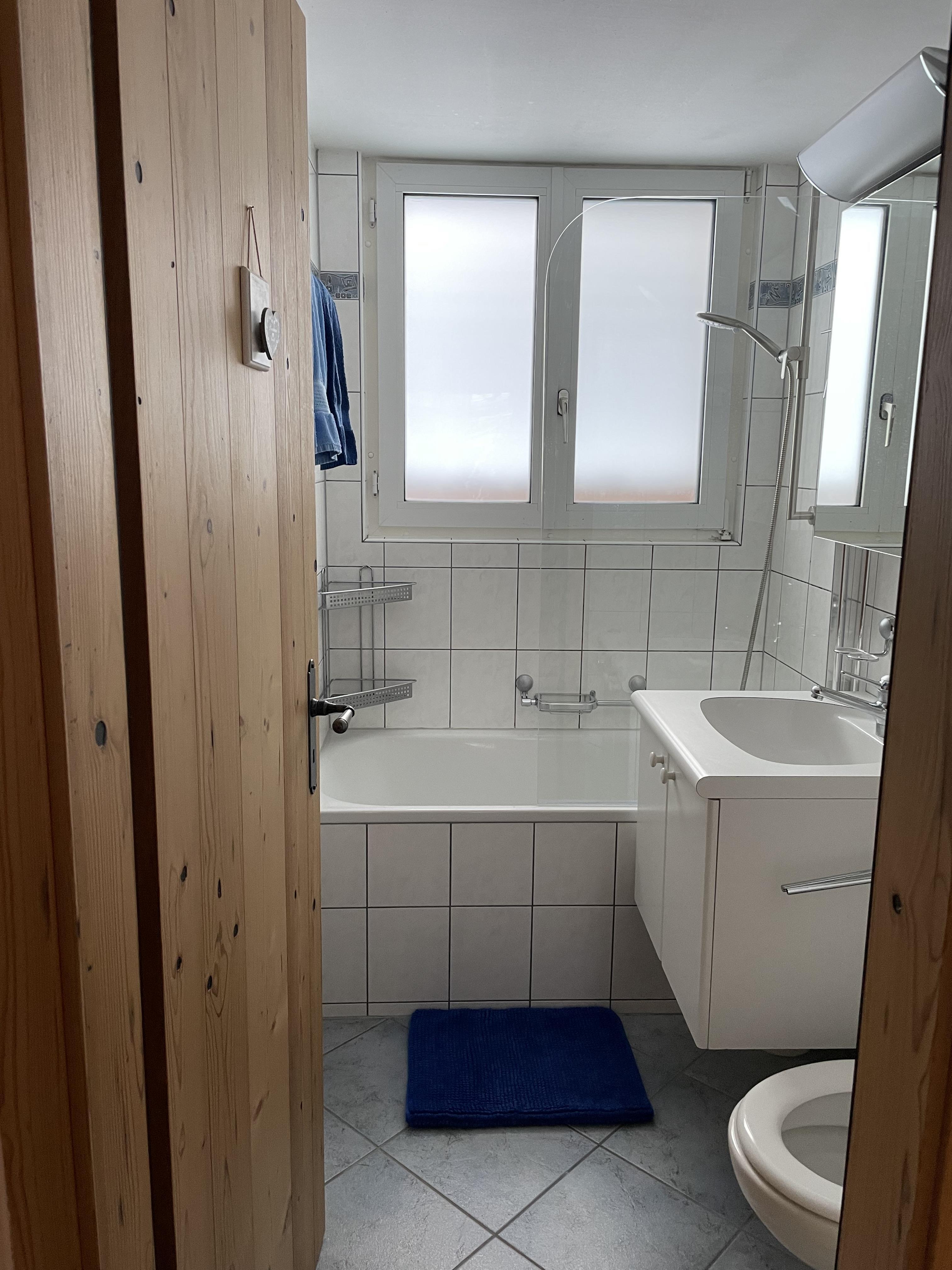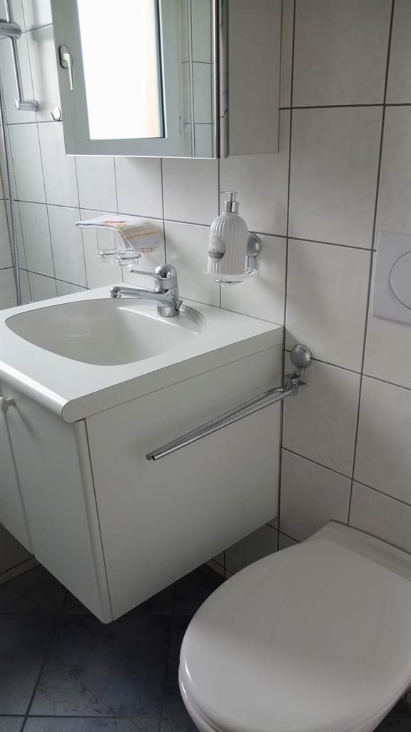 Bad:Bodenheizung Badewanne mit Dusche , WC. Haartrockner.